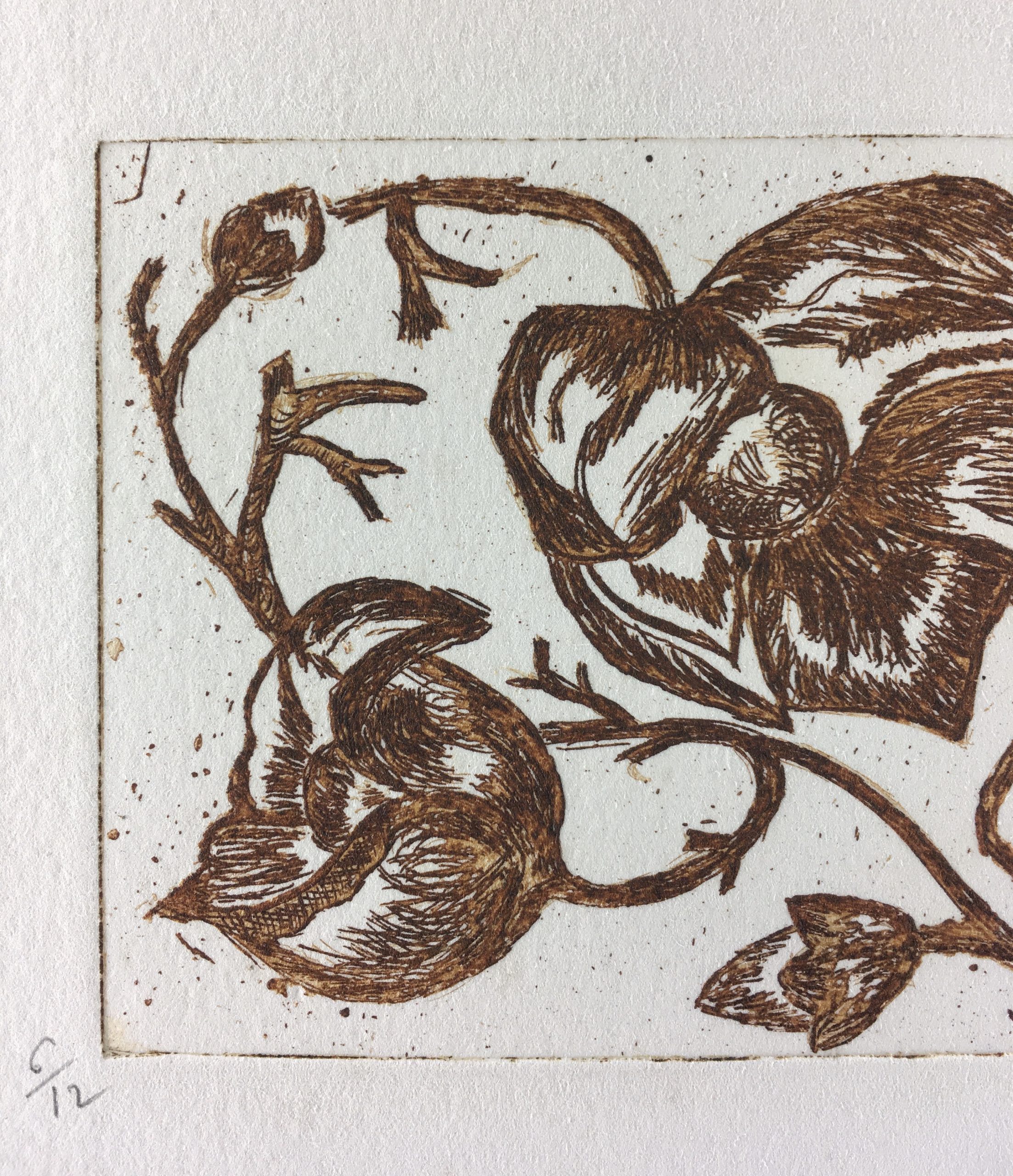 Original Art on paper displayed on a white mat with a gold border. Mat fits a standard-size frame. Archival plastic sleeve and Certificate of Authenticity included. Original Art, 5″W x 4.25″H; mat, 16″W x 20″H.