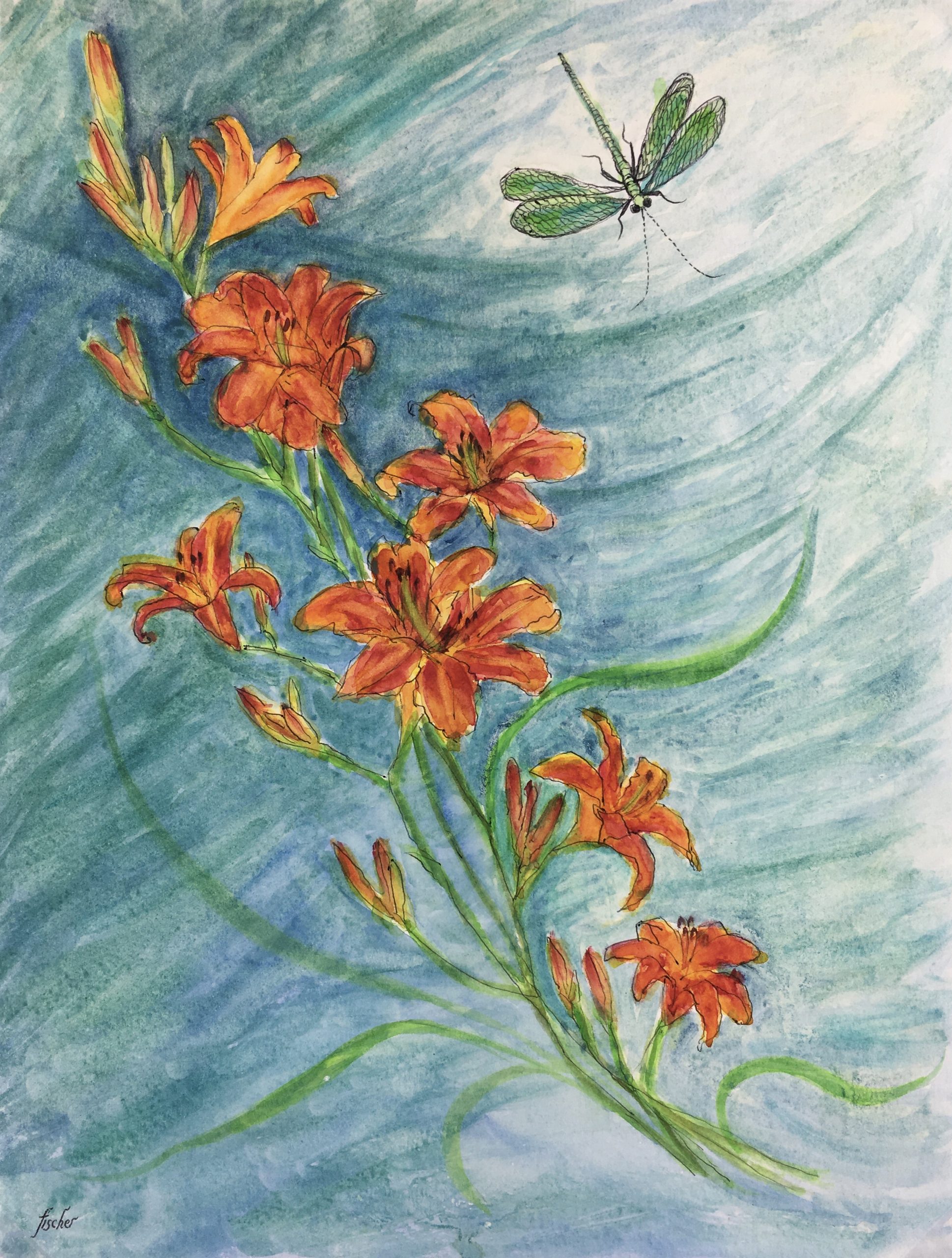 Original Art on paper displayed on a white mat with a gold border. Mat fits a standard-size frame. Archival plastic sleeve and Certificate of Authenticity included. Original Art, 9.25″W x 12″H; mat, 16″W x 20″H.