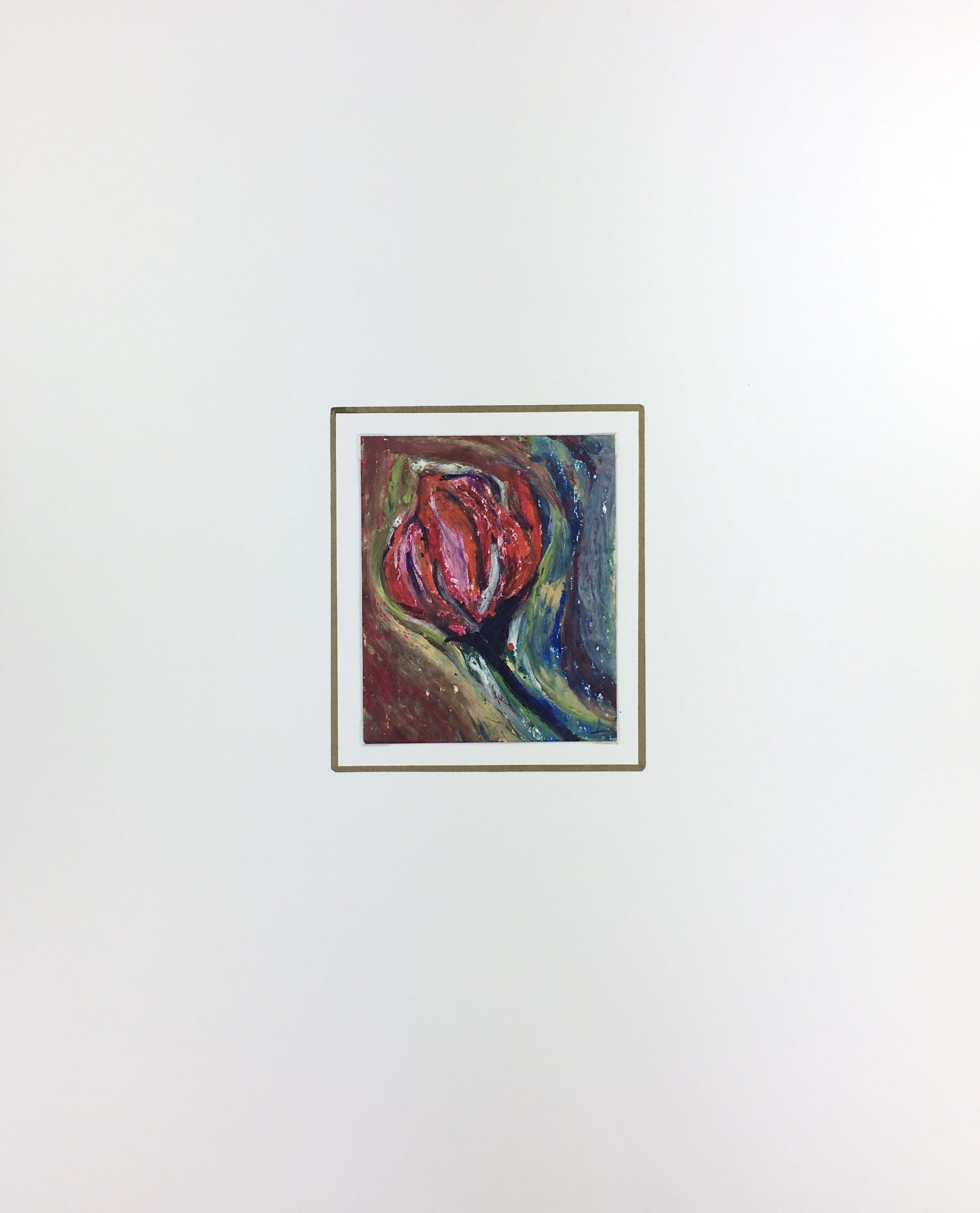 Original Art on paper displayed on a white mat with a gold border. Mat fits a standard-size frame. Archival plastic sleeve and Certificate of Authenticity included. Original Art, 4.25″W x 5″H; mat, 16″W x 20″H.