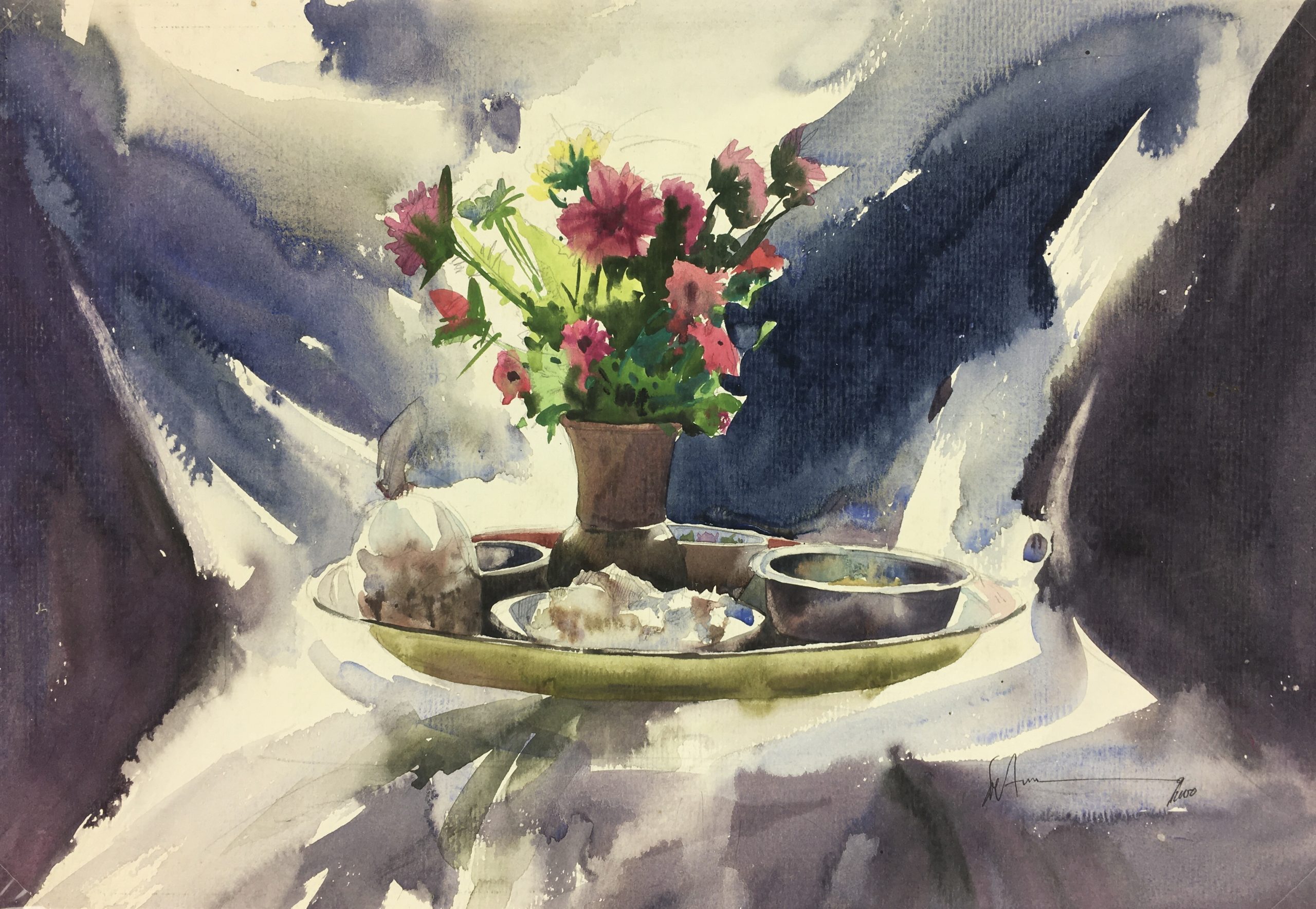 Original Art on paper displayed on a white mat with a gold border. Mat fits a standard-size frame. Archival plastic sleeve and Certificate of Authenticity included. Original Art, 15″W x 10.25″H; mat, 20″W x 16″H.