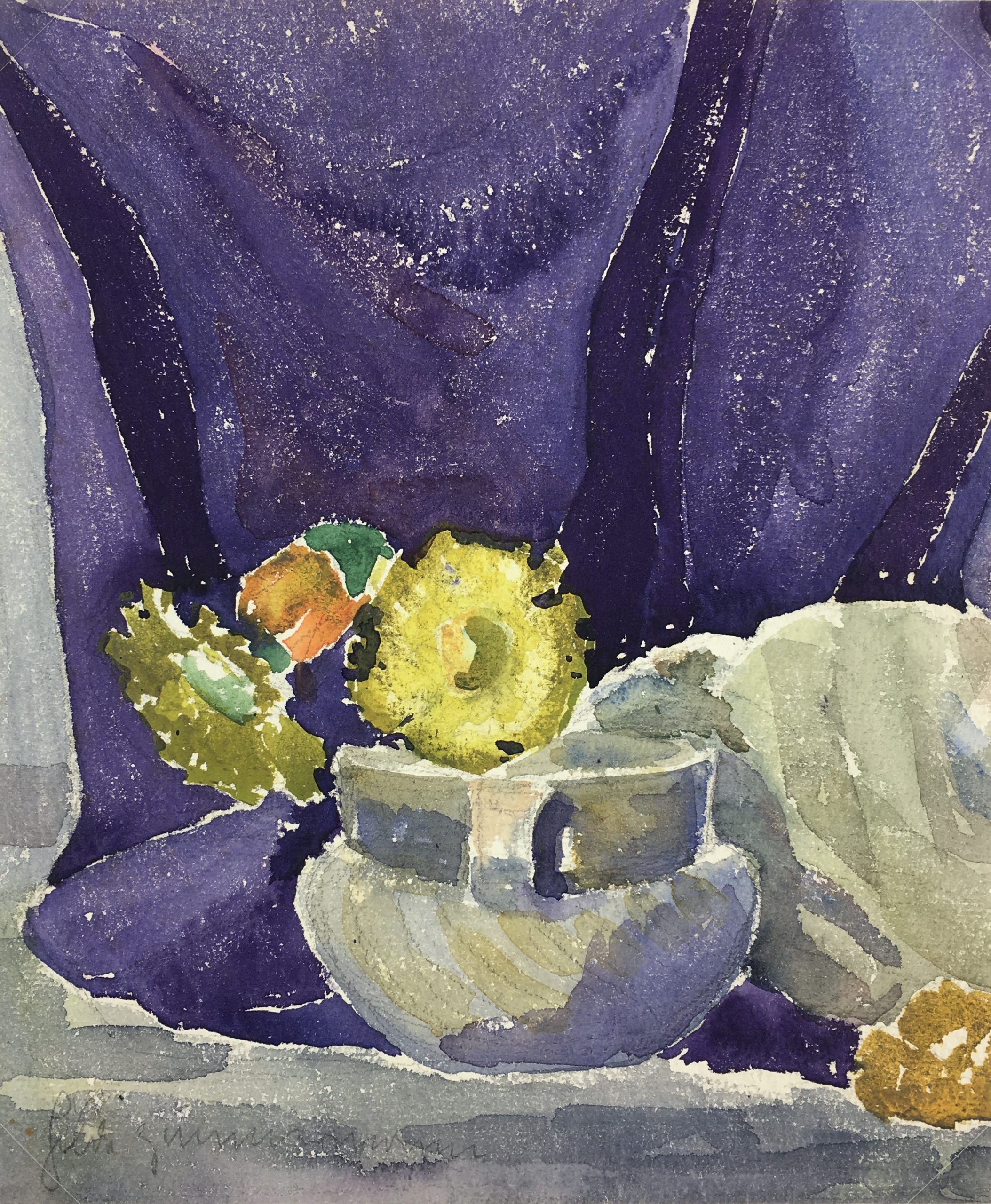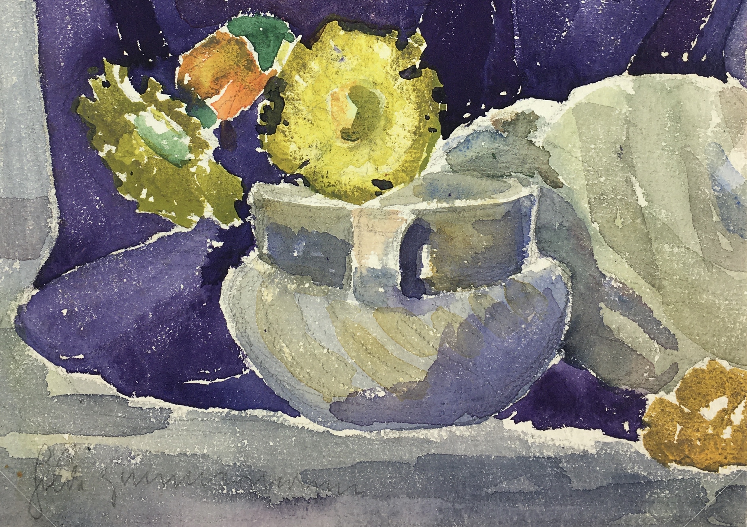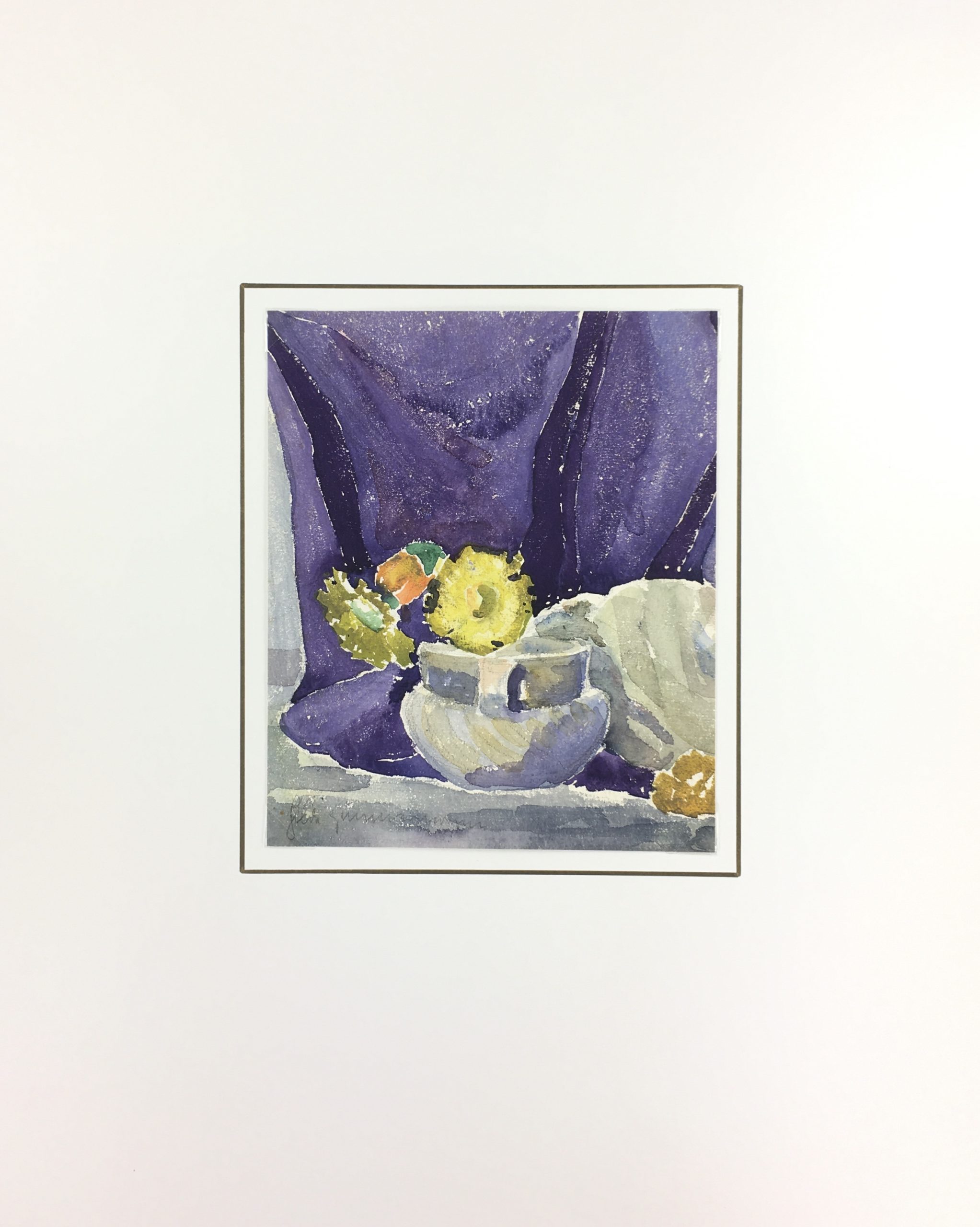 Original Art on paper displayed on a white mat with a gold border. Mat fits a standard-size frame. Archival plastic sleeve and Certificate of Authenticity included. Original Art, 7.25″W x 8.75″H; mat, 16″W x 20″H.