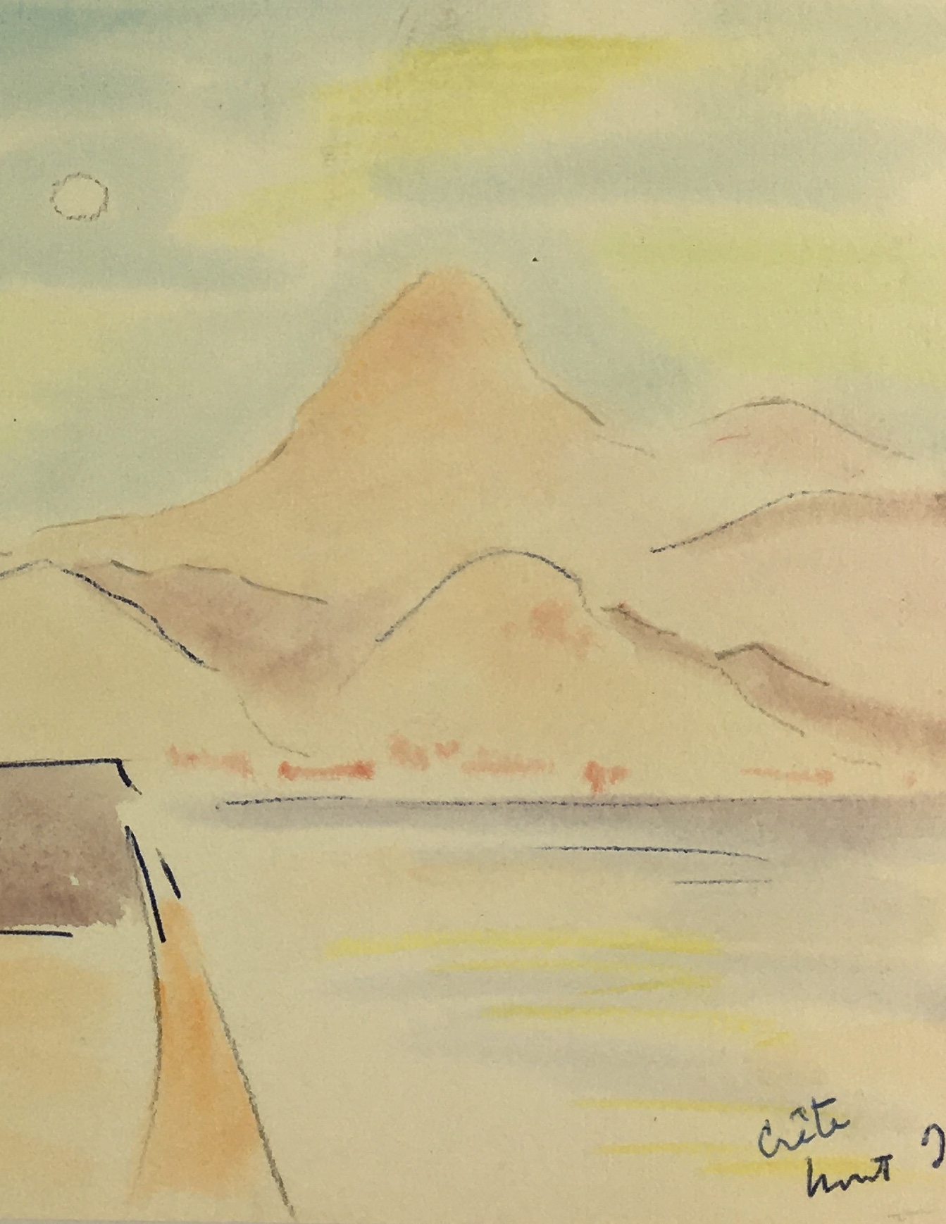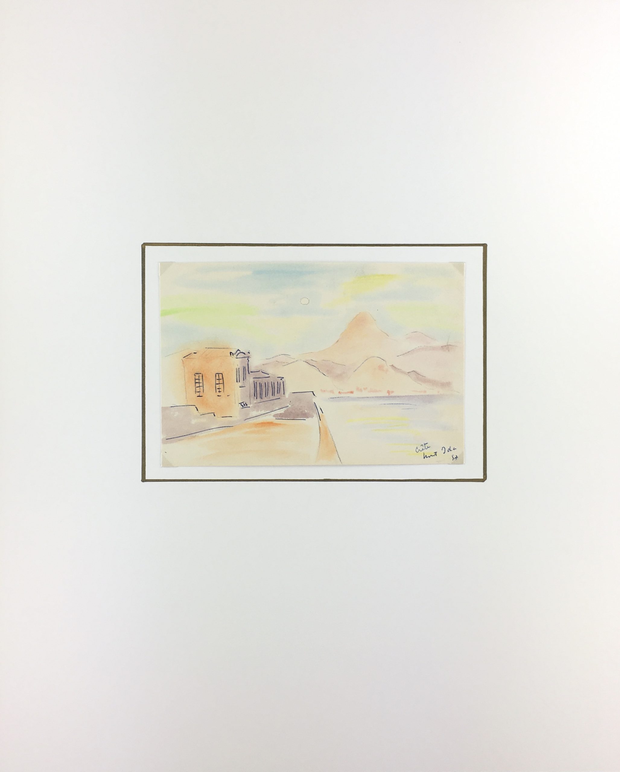 Original Art on paper displayed on a white mat with a gold border. Mat fits a standard-size frame. Archival plastic sleeve and Certificate of Authenticity included. Original Art, 7.75″W x 5.25″H; mat, 16″W x 20″H.