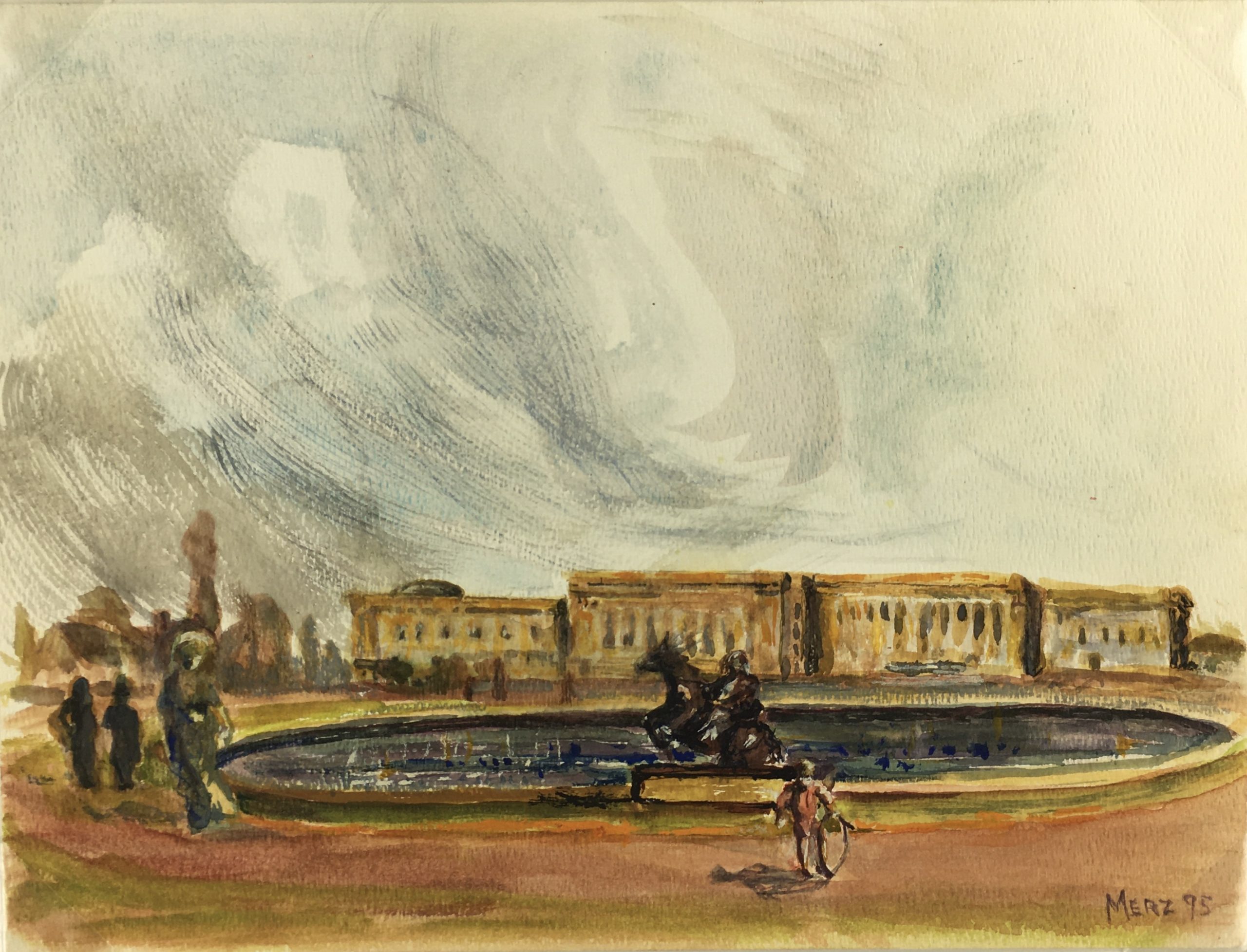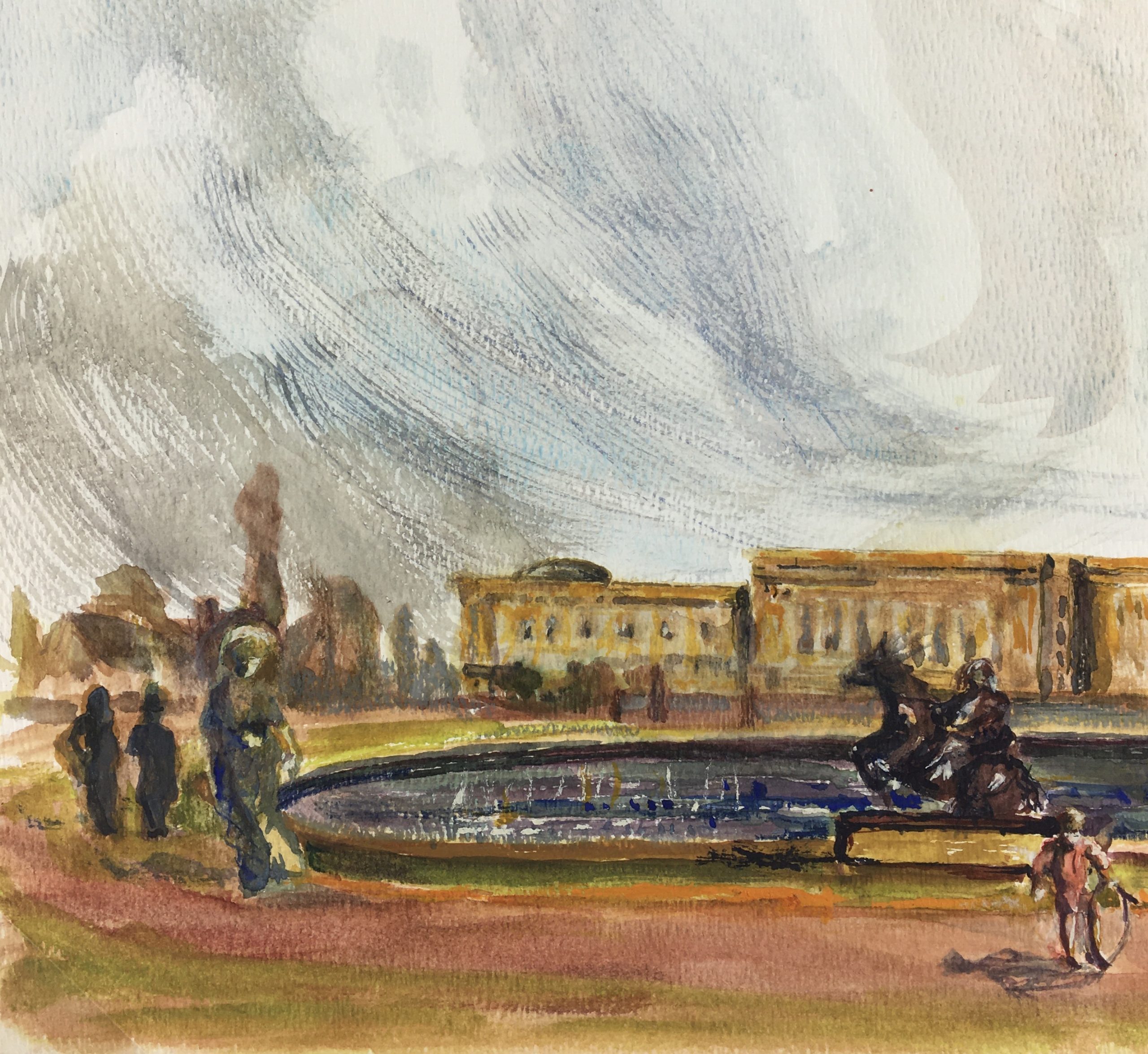 Original Art on paper displayed on a white mat with a gold border. Mat fits a standard-size frame. Archival plastic sleeve and Certificate of Authenticity included. Original Art, 12″W x 9″H; mat, 16″W x 20″H.