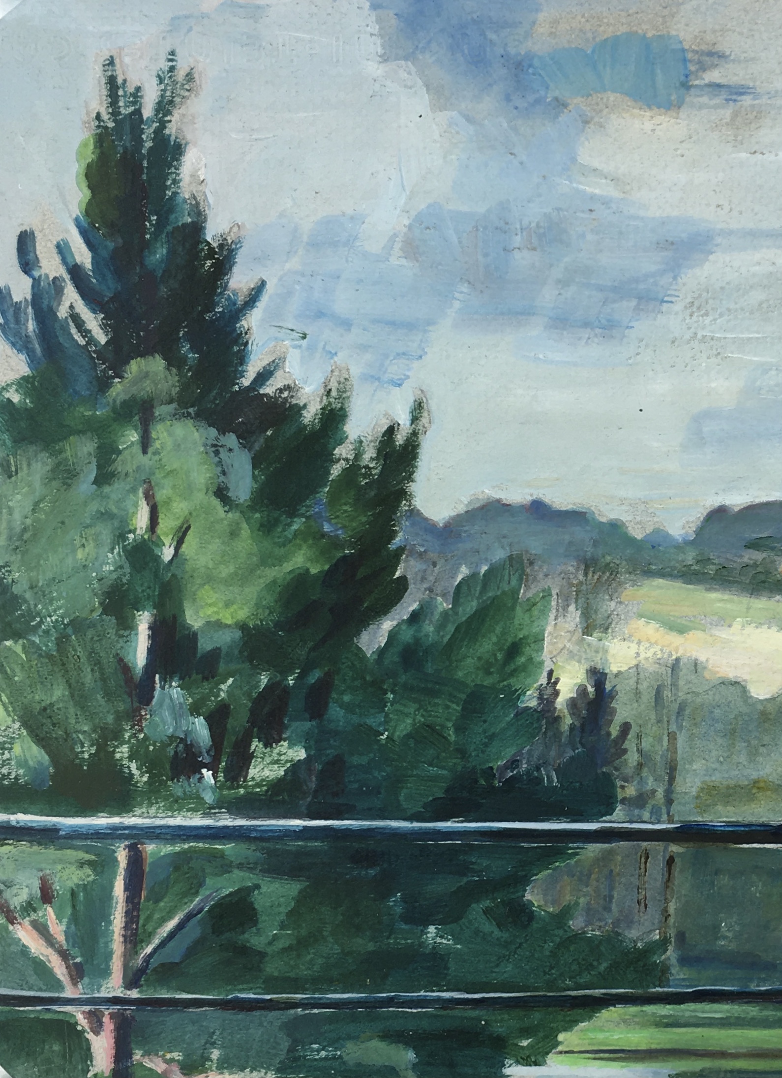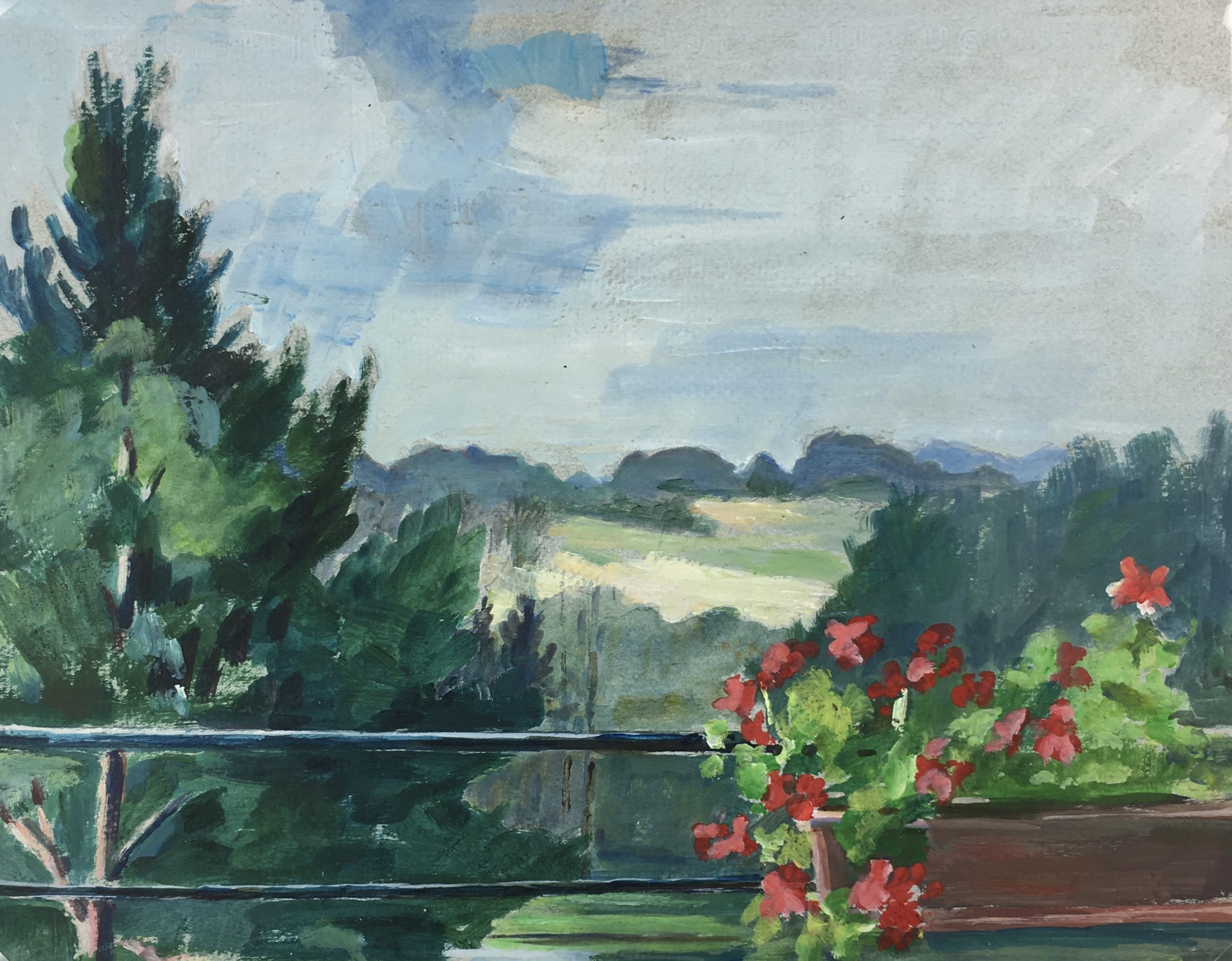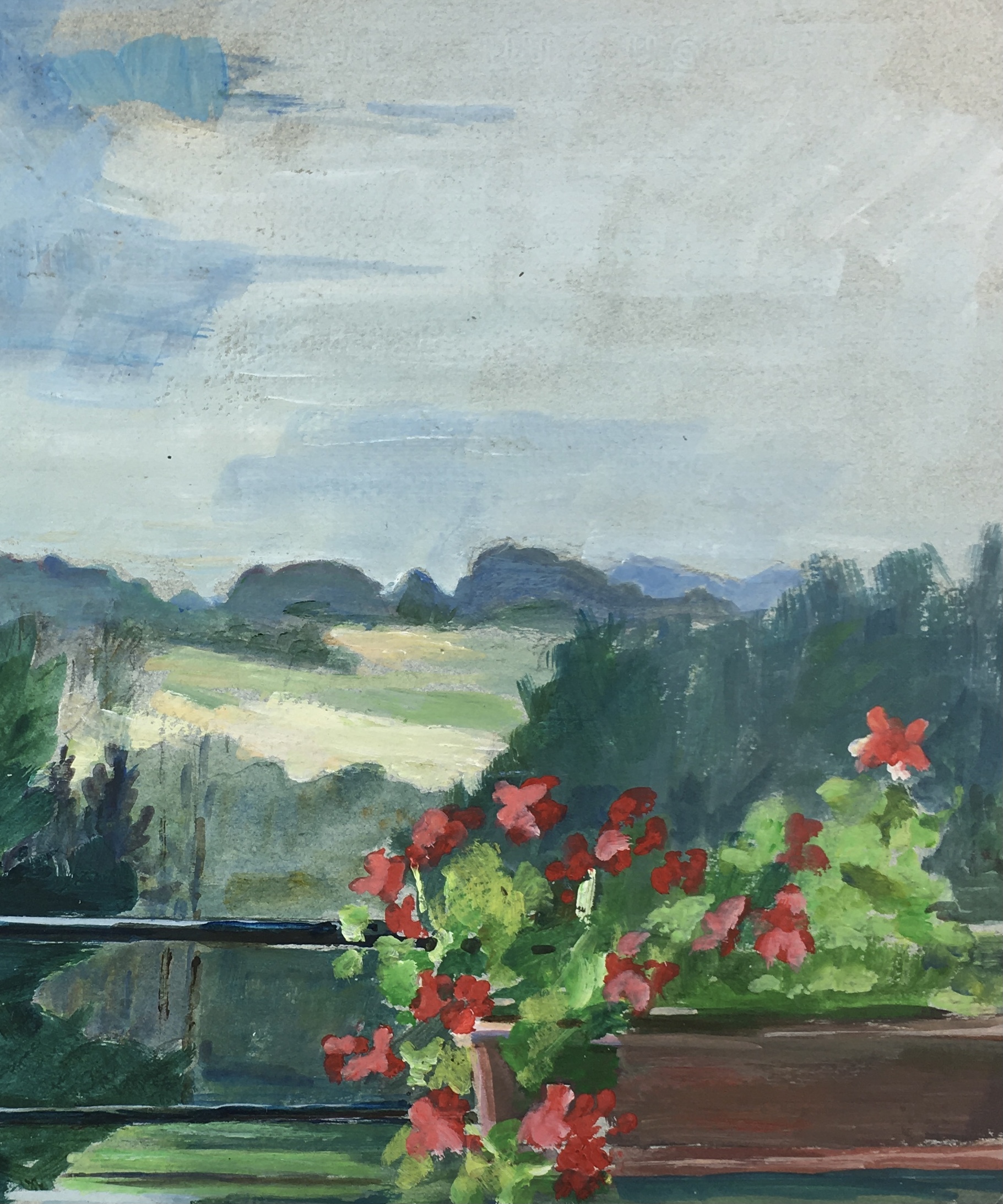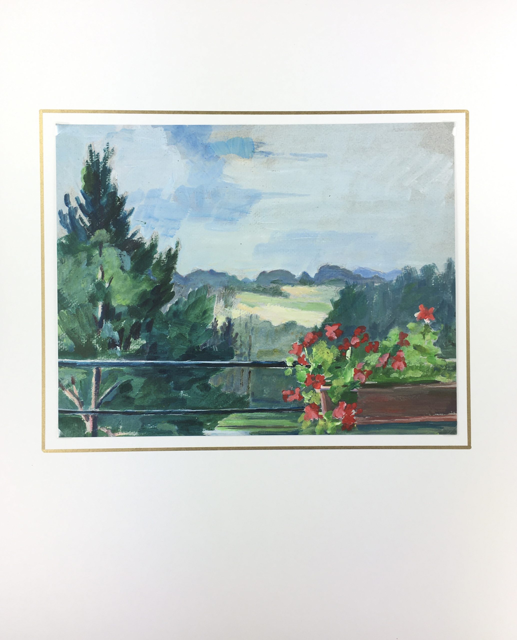 Original Art on paper displayed on a white mat with a gold border. Mat fits a standard-size frame. Archival plastic sleeve and Certificate of Authenticity included. Original Art, 12″W x 9.5″H; mat, 16″W x 20″H.