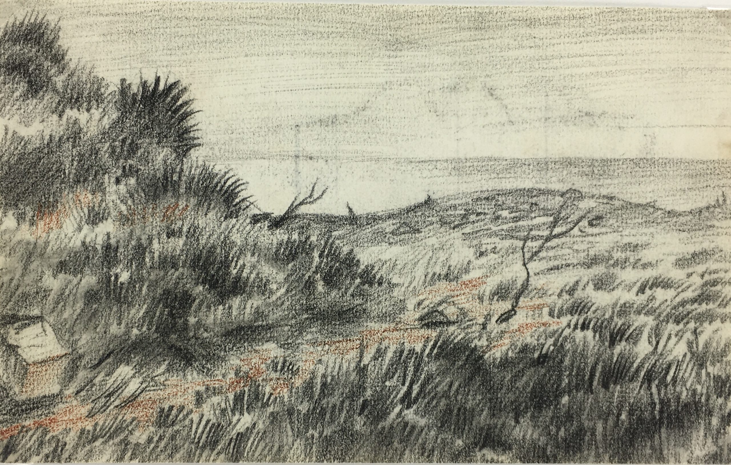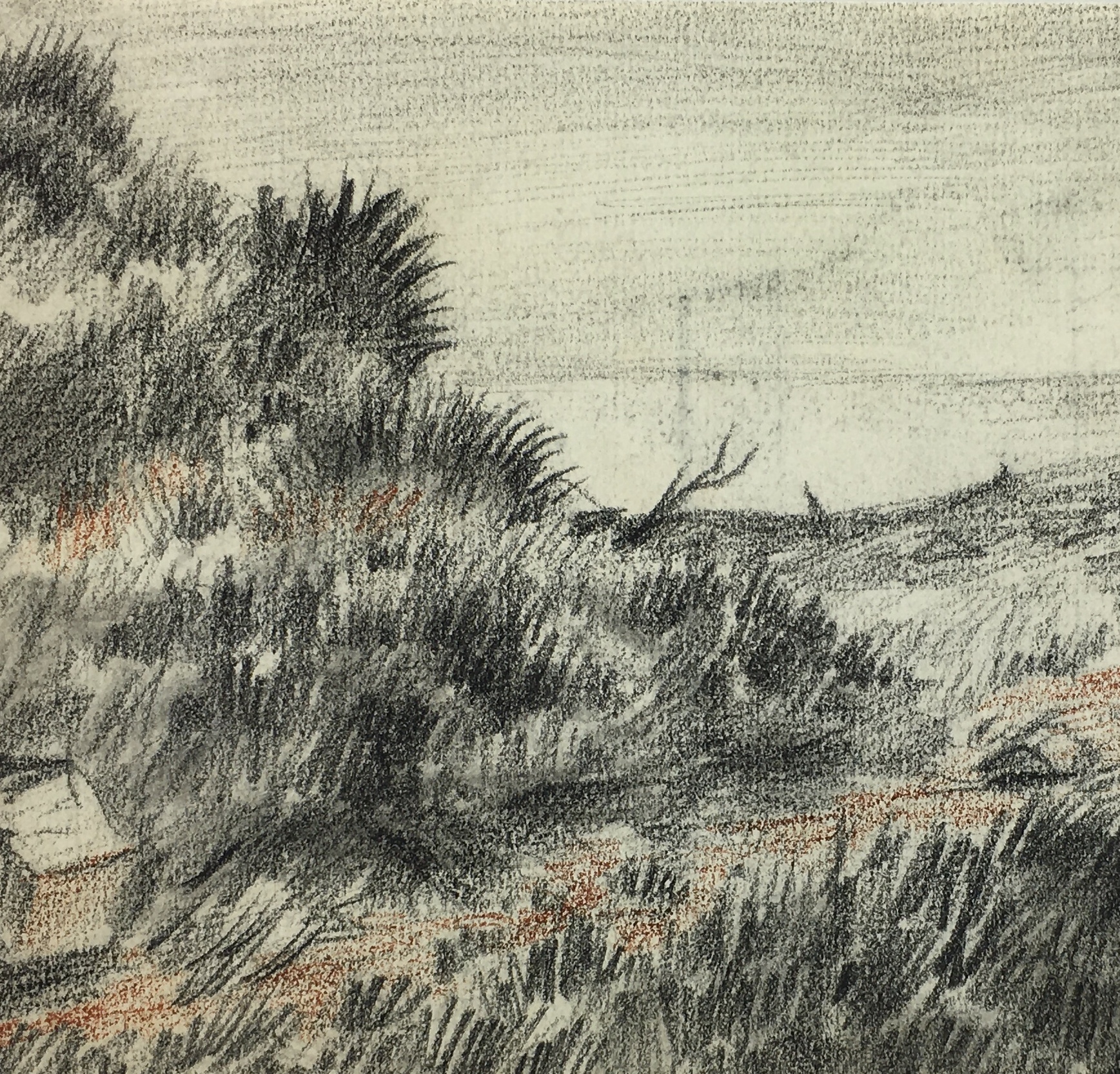 Original Art on paper displayed on a white mat with a gold border. Mat fits a standard-size frame. Archival plastic sleeve and Certificate of Authenticity included. Original Art, 8″W x 5″H; mat, 20″W x 16″H.