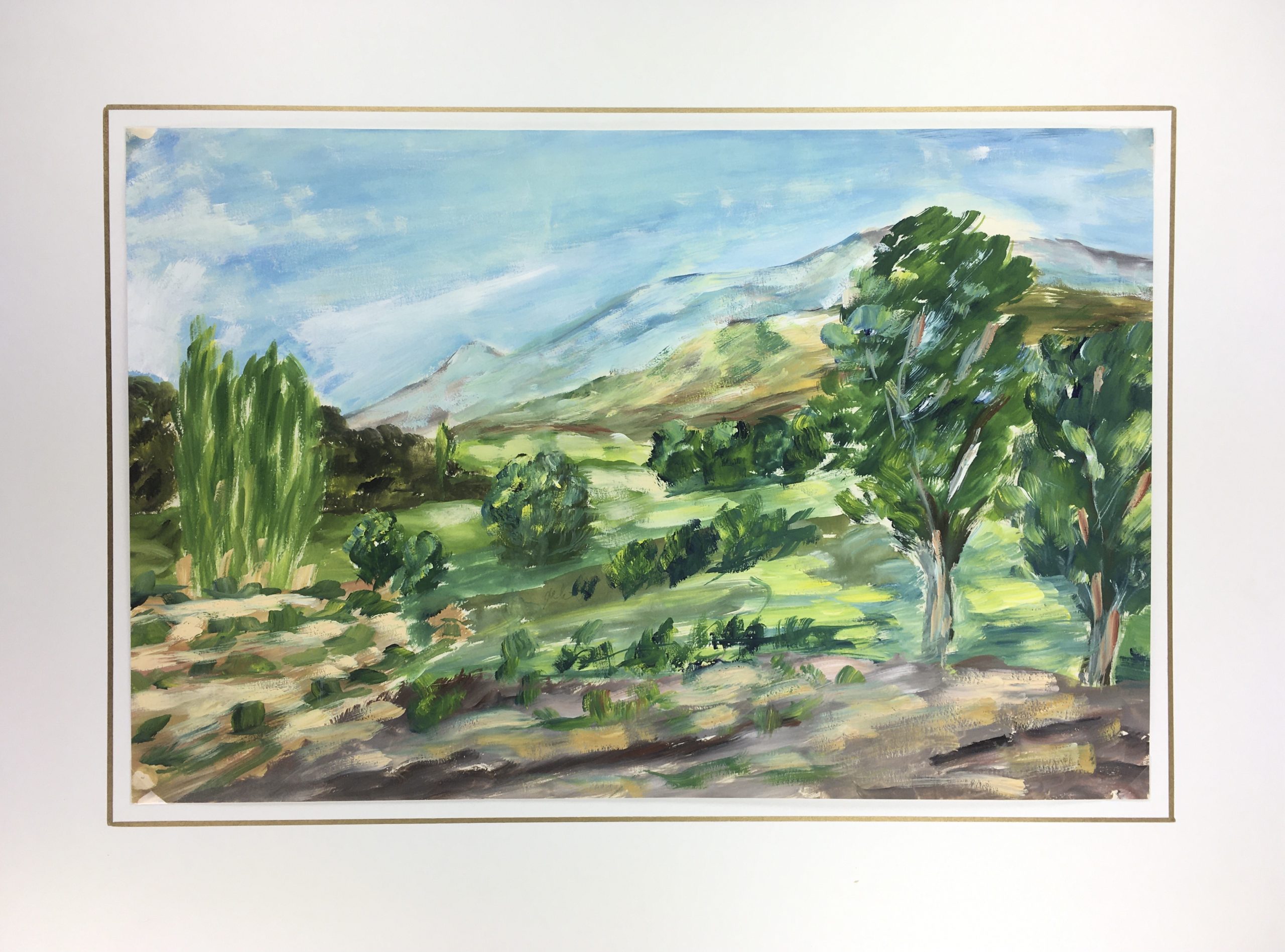 Original Art on paper displayed on a white mat with a gold border. Mat fits a standard-size frame. Archival plastic sleeve and Certificate of Authenticity included. Original Art, 18.5″W x 12.5″H; mat, 24″W x 18″H.