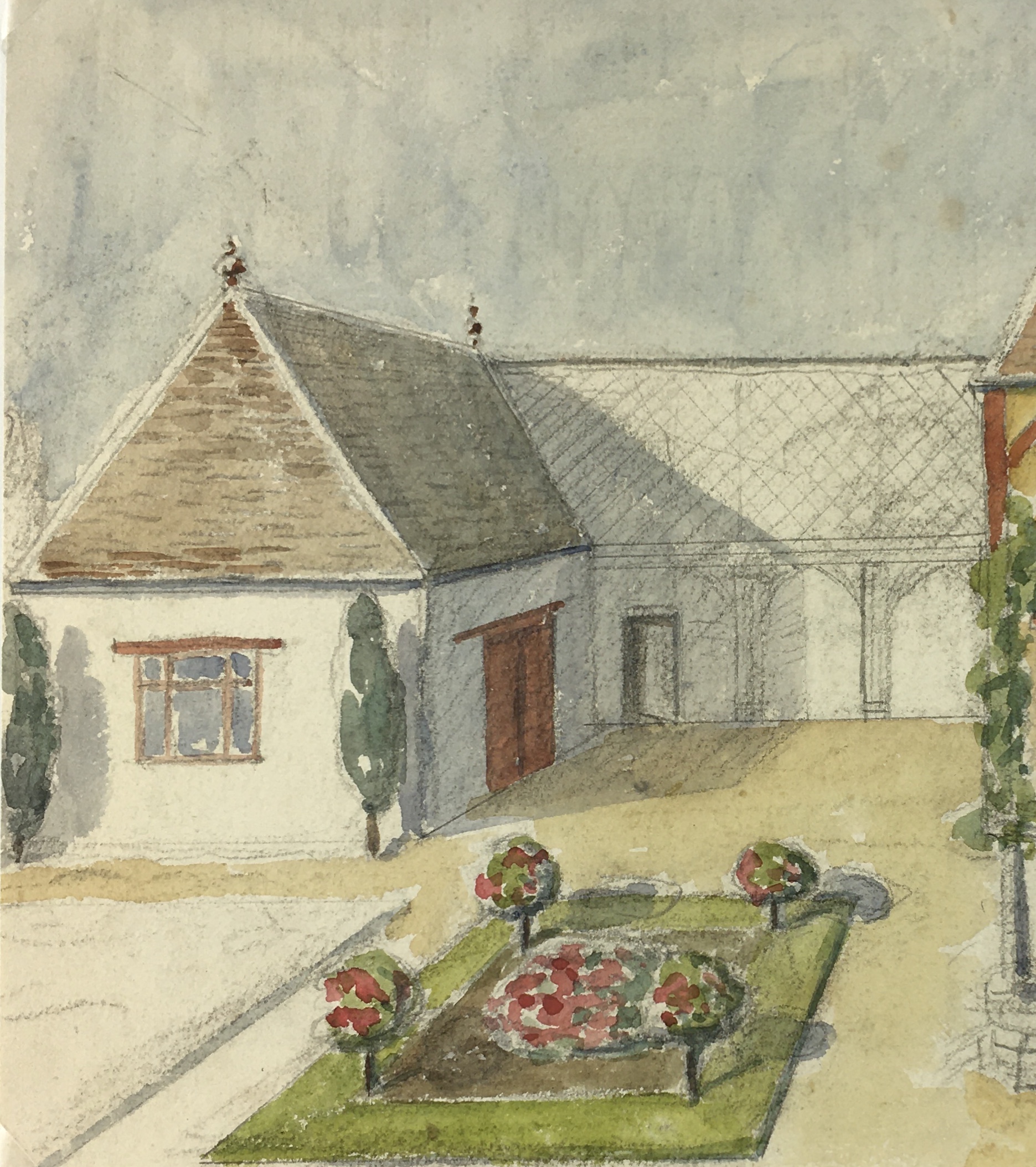 Original Art on paper displayed on a white mat with a gold border. Mat fits a standard-size frame. Archival plastic sleeve and Certificate of Authenticity included. Original Art, 9.25″W x 7″H; mat, 16″W x 20″H.