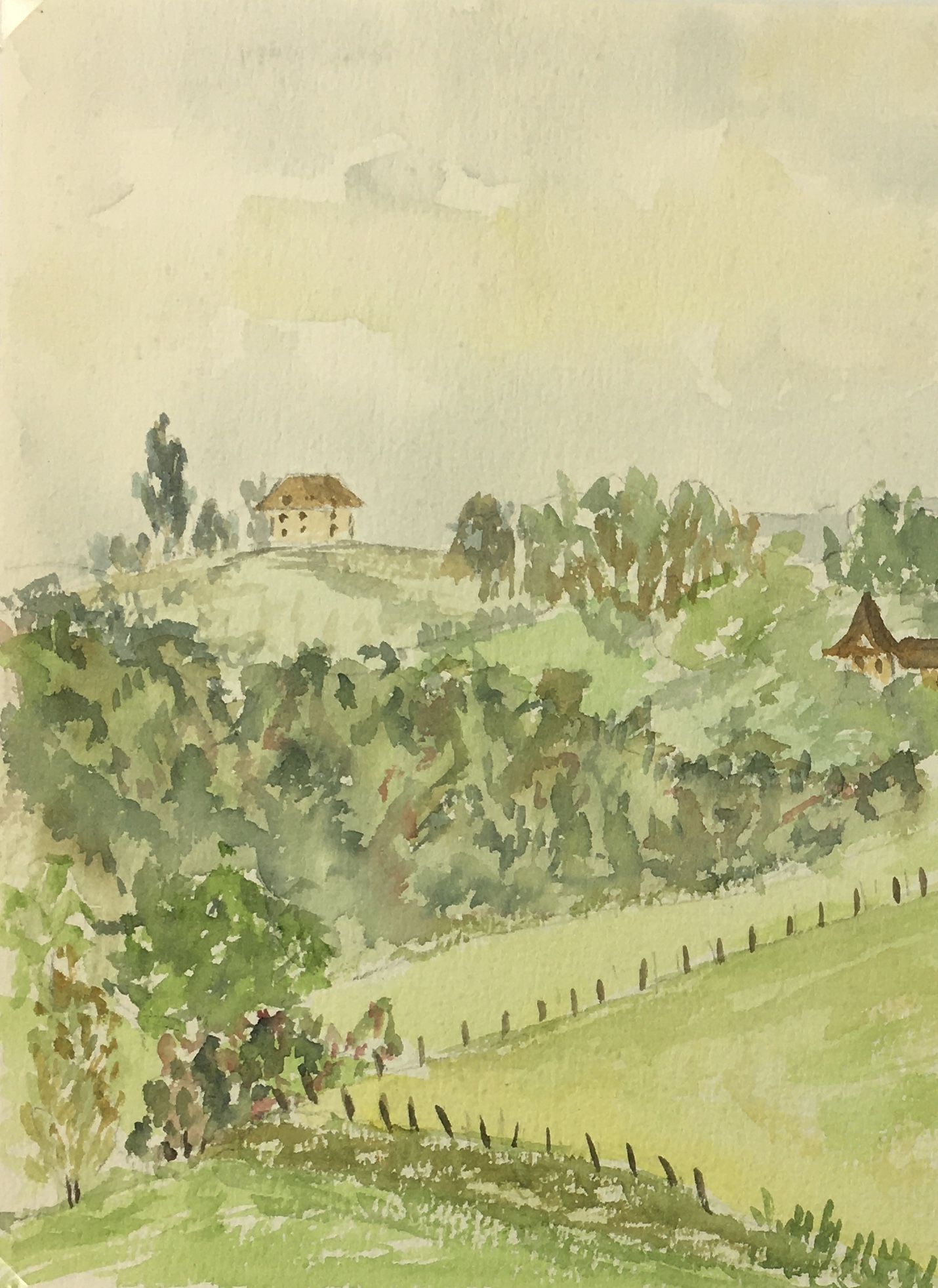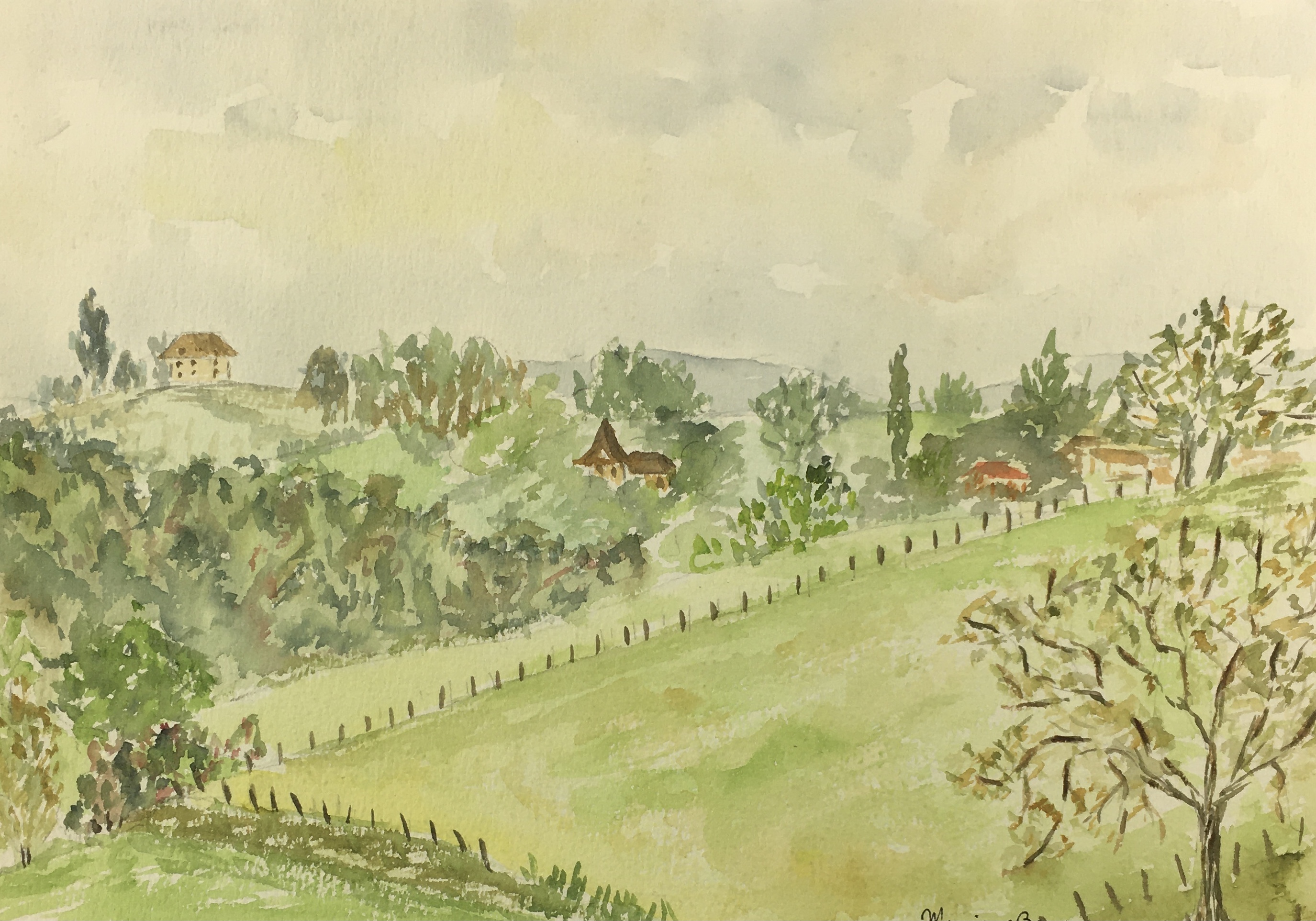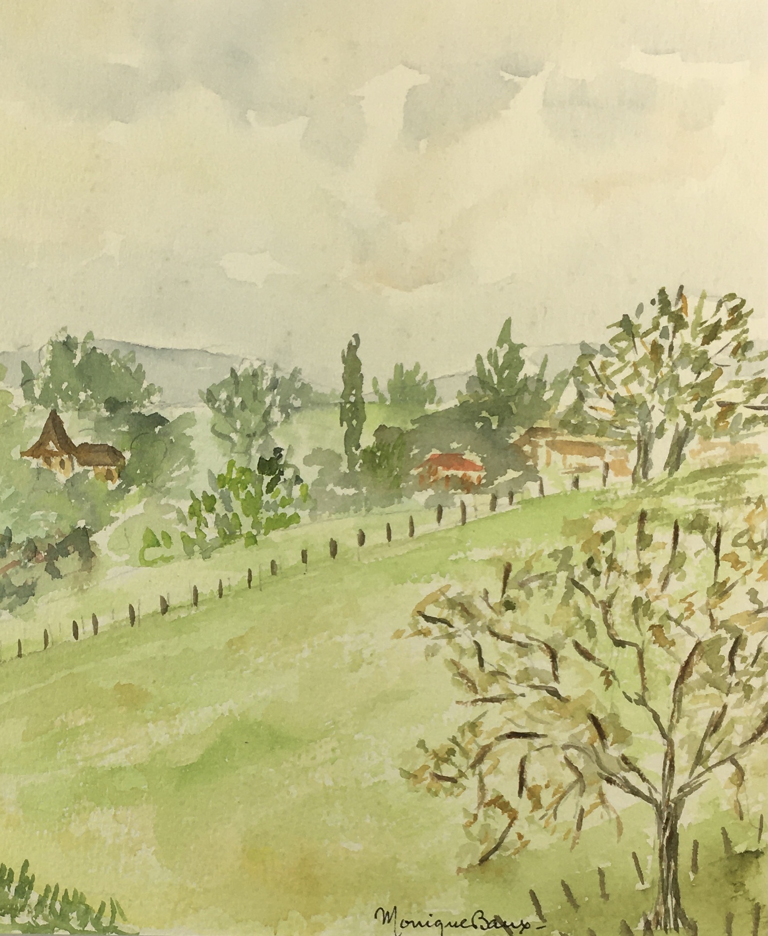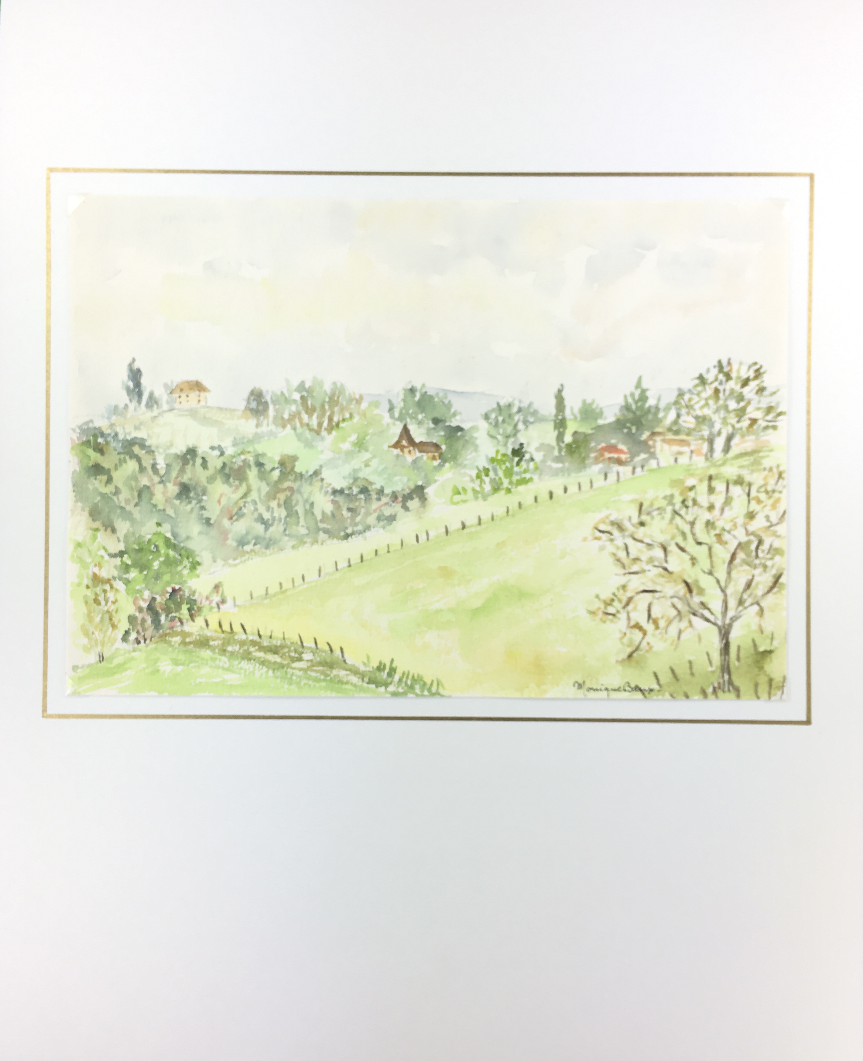 Original Art on paper displayed on a white mat with a gold border. Mat fits a standard-size frame. Archival plastic sleeve and Certificate of Authenticity included. Original Art, 13.5″W x 9″H; mat, 16″W x 20″H.