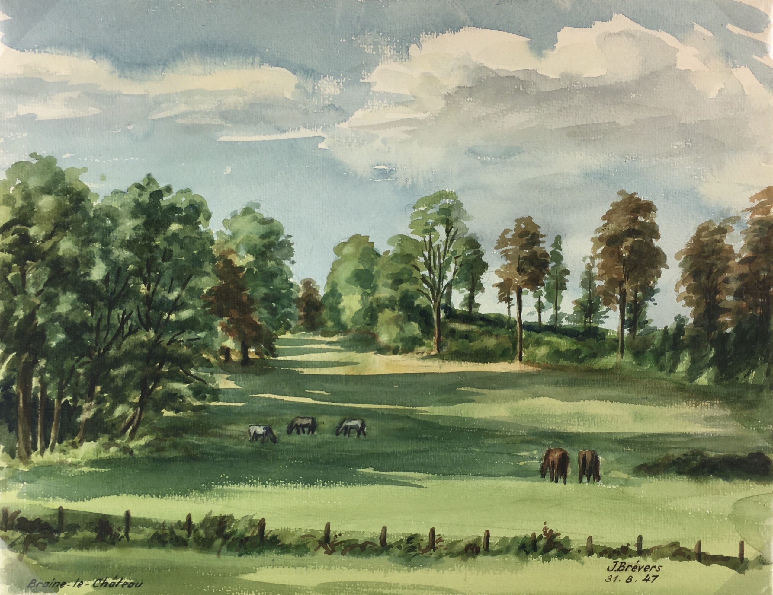Farm Landscapes Original Art – Braine-le-Chateau, J. Brevers, 1947