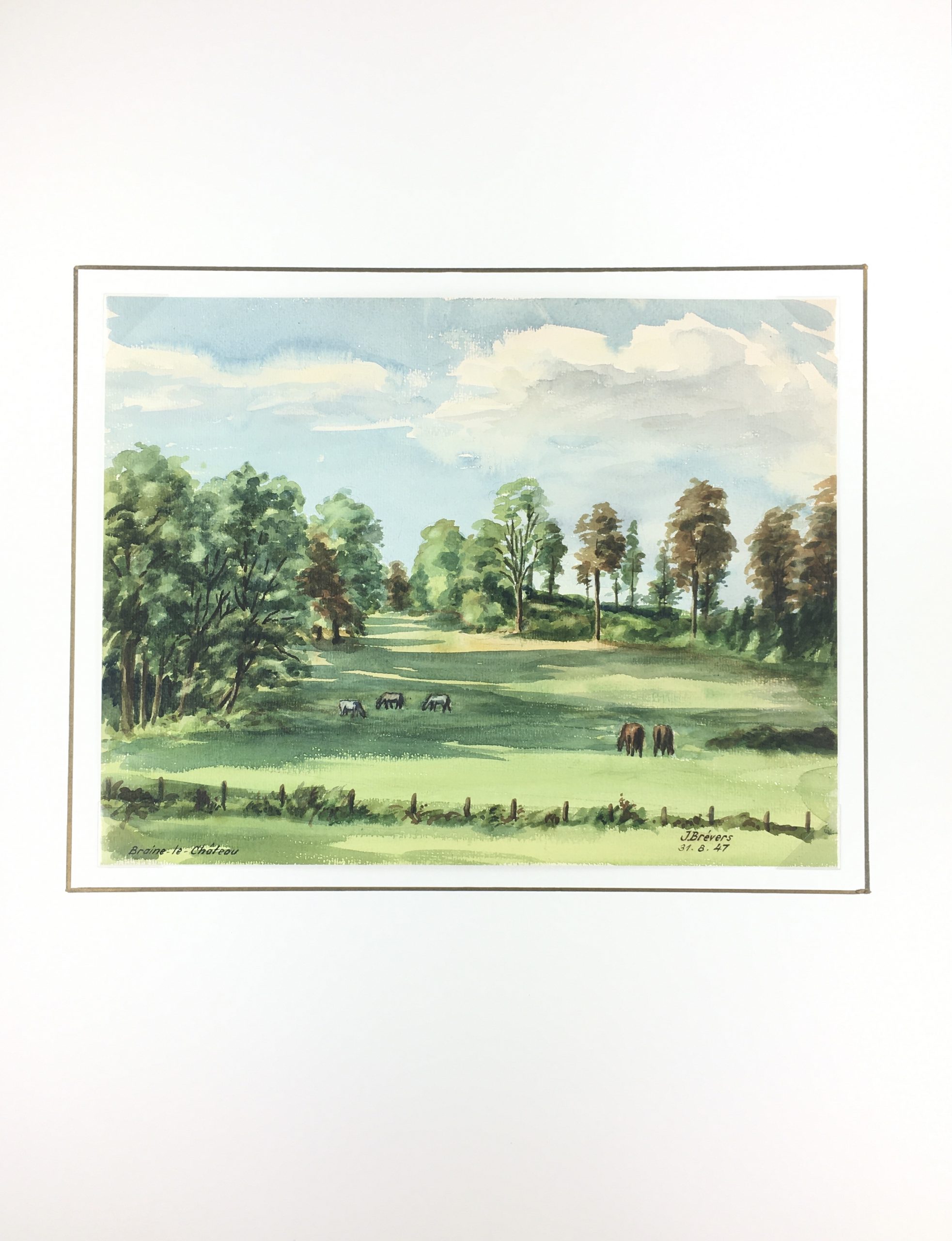 Original Art on paper displayed on a white mat with a gold border. Mat fits a standard-size frame. Archival plastic sleeve and Certificate of Authenticity included. Original Art, 13.75″W x 10.5″H; mat, 18″W x 24″H.