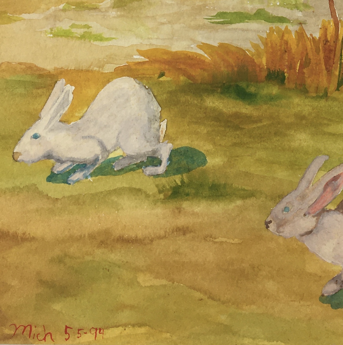 Original Art on paper displayed on a white mat with a gold border. Mat fits a standard-size frame. Archival plastic sleeve and Certificate of Authenticity included. Original Art, 11.25″W x 18″H; mat, 18″W x 24″H.
