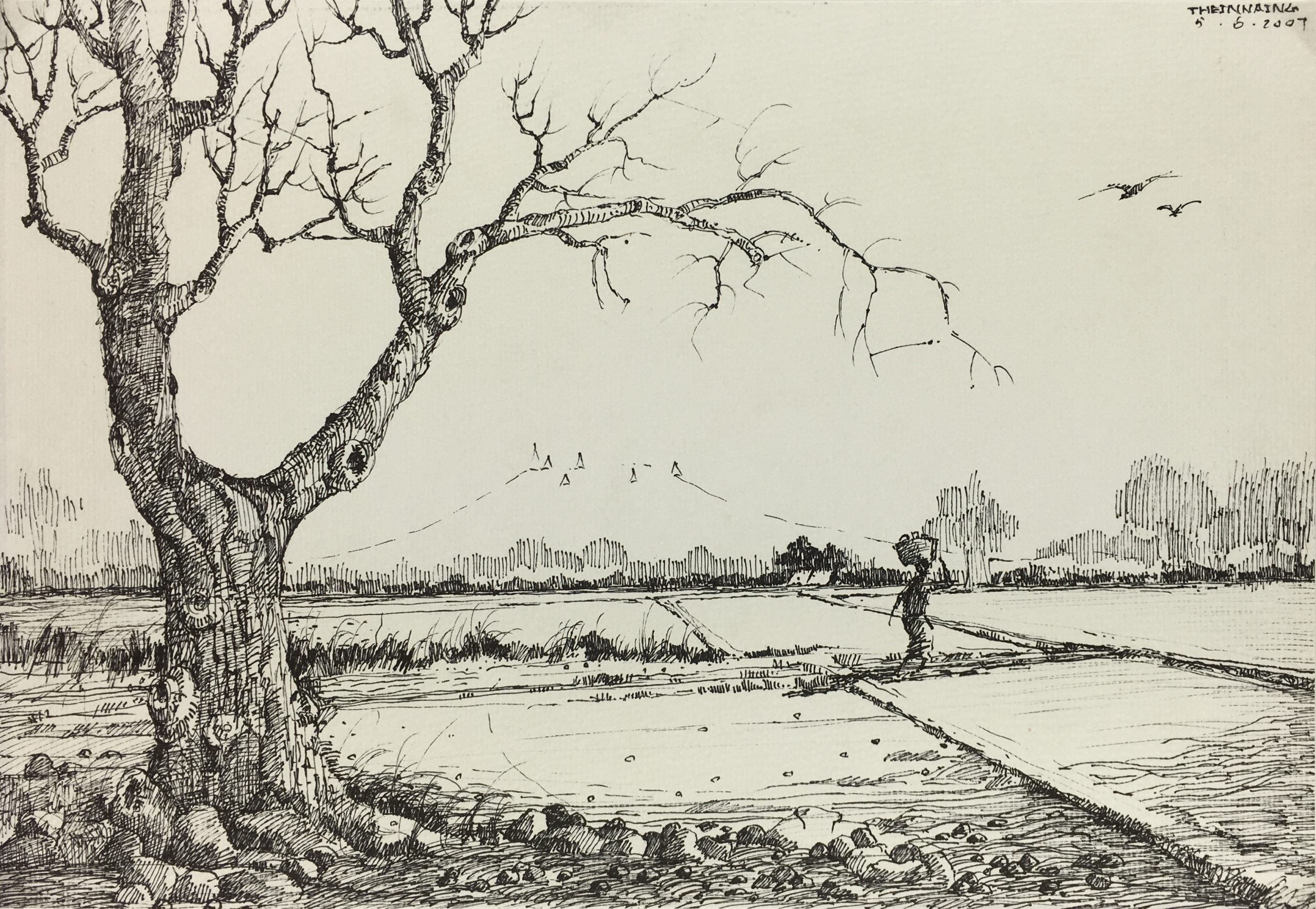 Original Art on paper displayed on a white mat with a gold border. Mat fits a standard-size frame. Archival plastic sleeve and Certificate of Authenticity included. Original Art, 14.75″W x 10.25″H; mat, 20″W x 16″H.