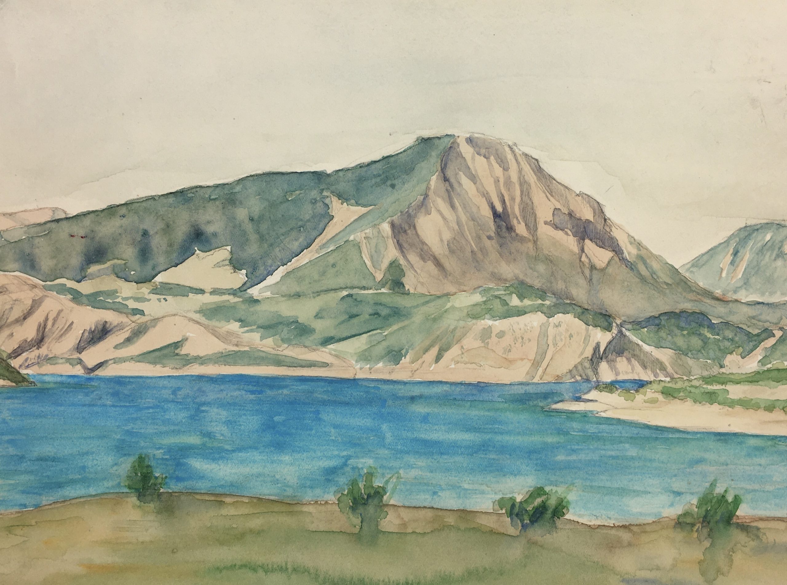 Original Art on paper displayed on a white mat with a gold border. Mat fits a standard-size frame. Archival plastic sleeve and Certificate of Authenticity included. Original Art, 10.5″W x 8″H; mat, 20″W x 16″H.