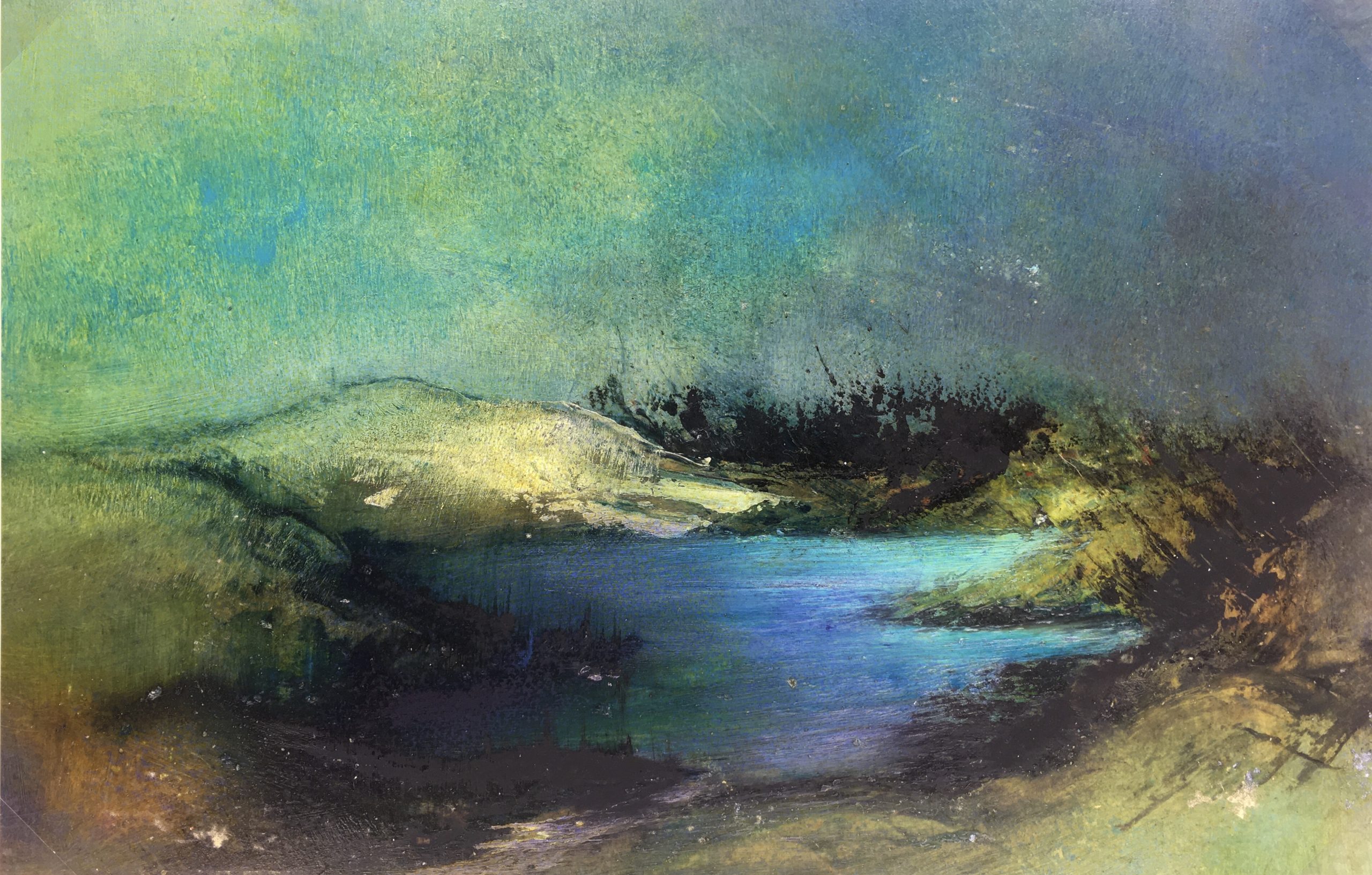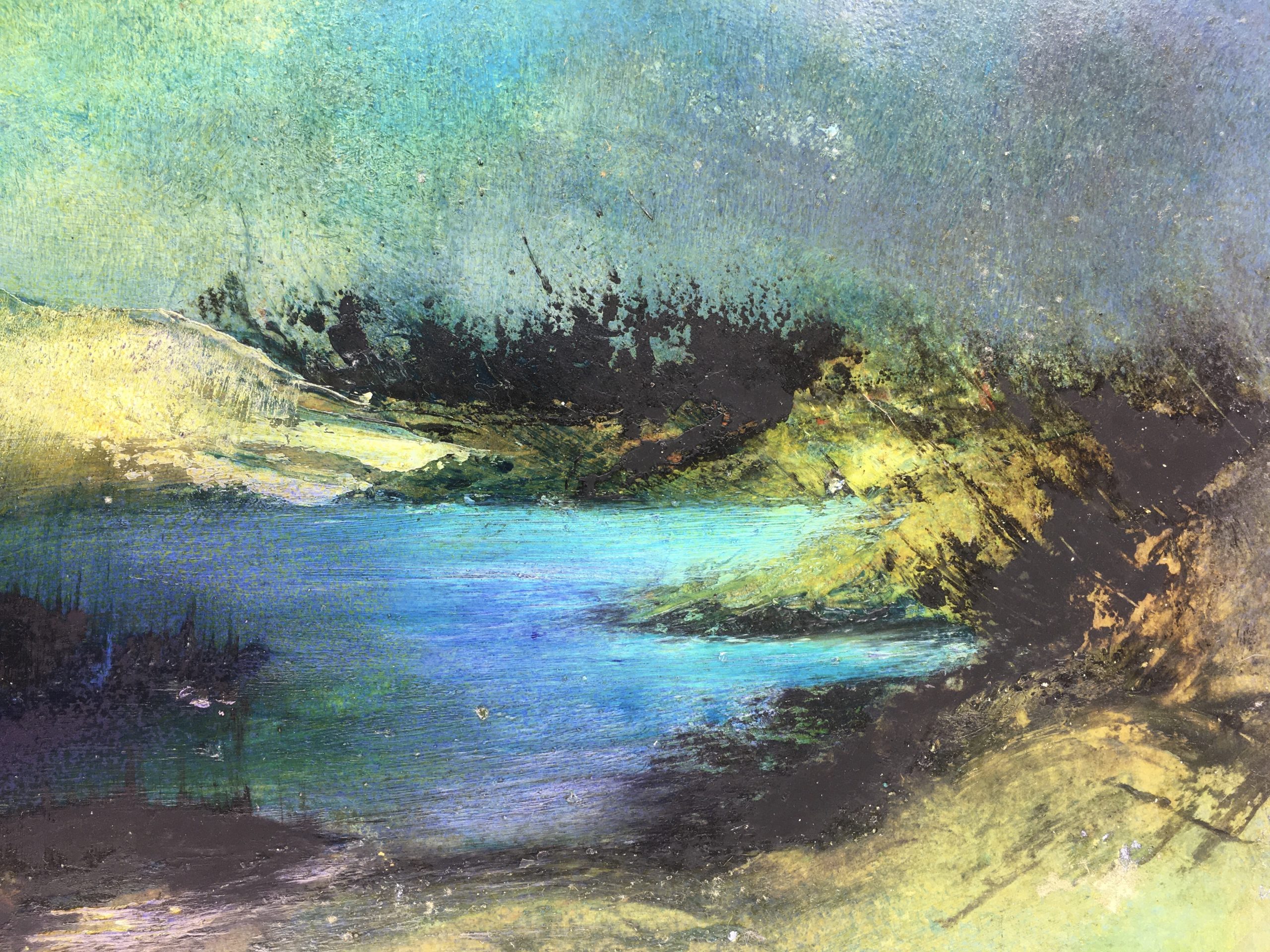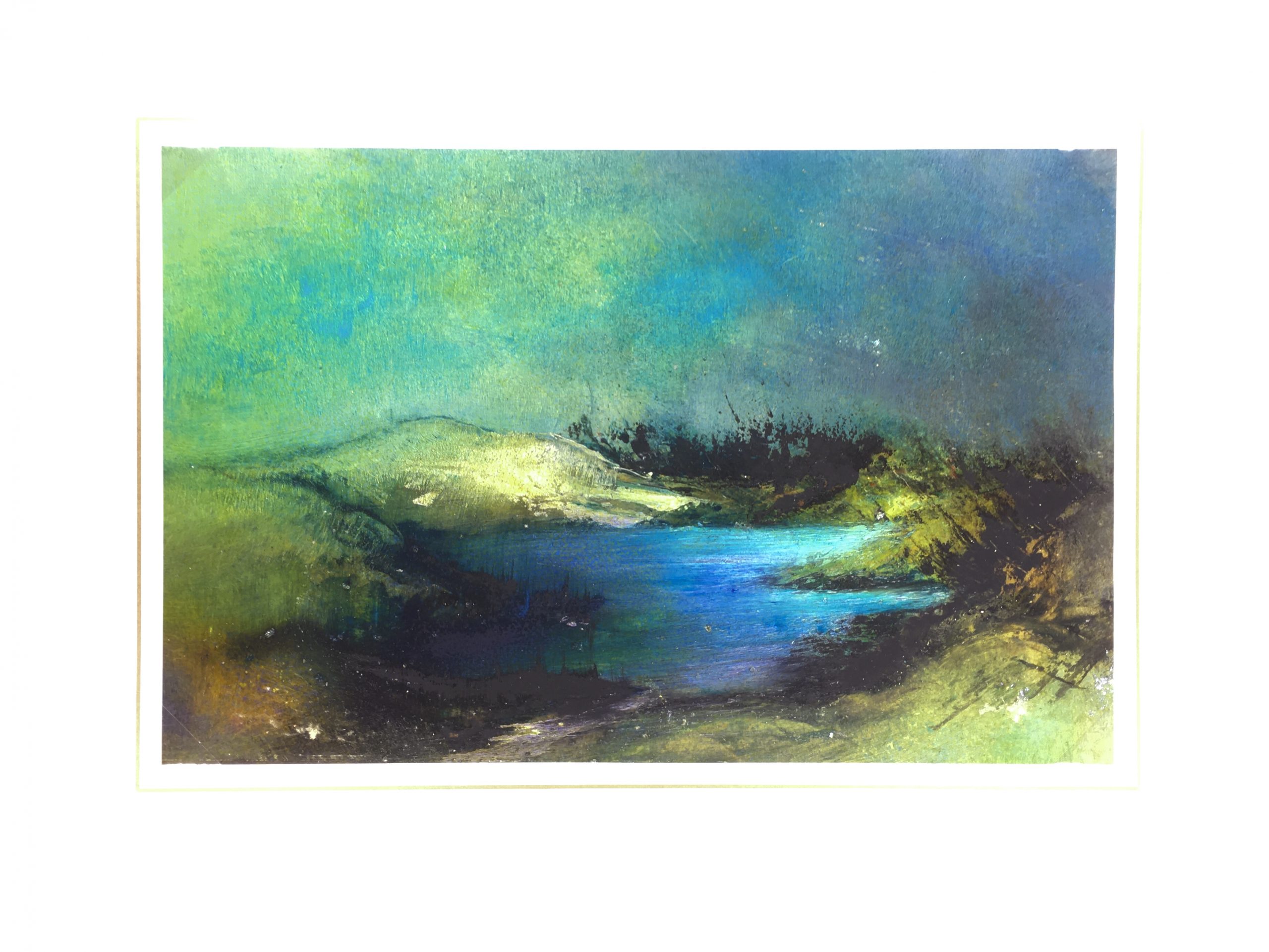 Original Art on paper displayed on a white mat with a gold border. Mat fits a standard-size frame. Archival plastic sleeve and Certificate of Authenticity included. Original Art, 17.25″W x 11.25″H; mat, 24″W x 18″H.