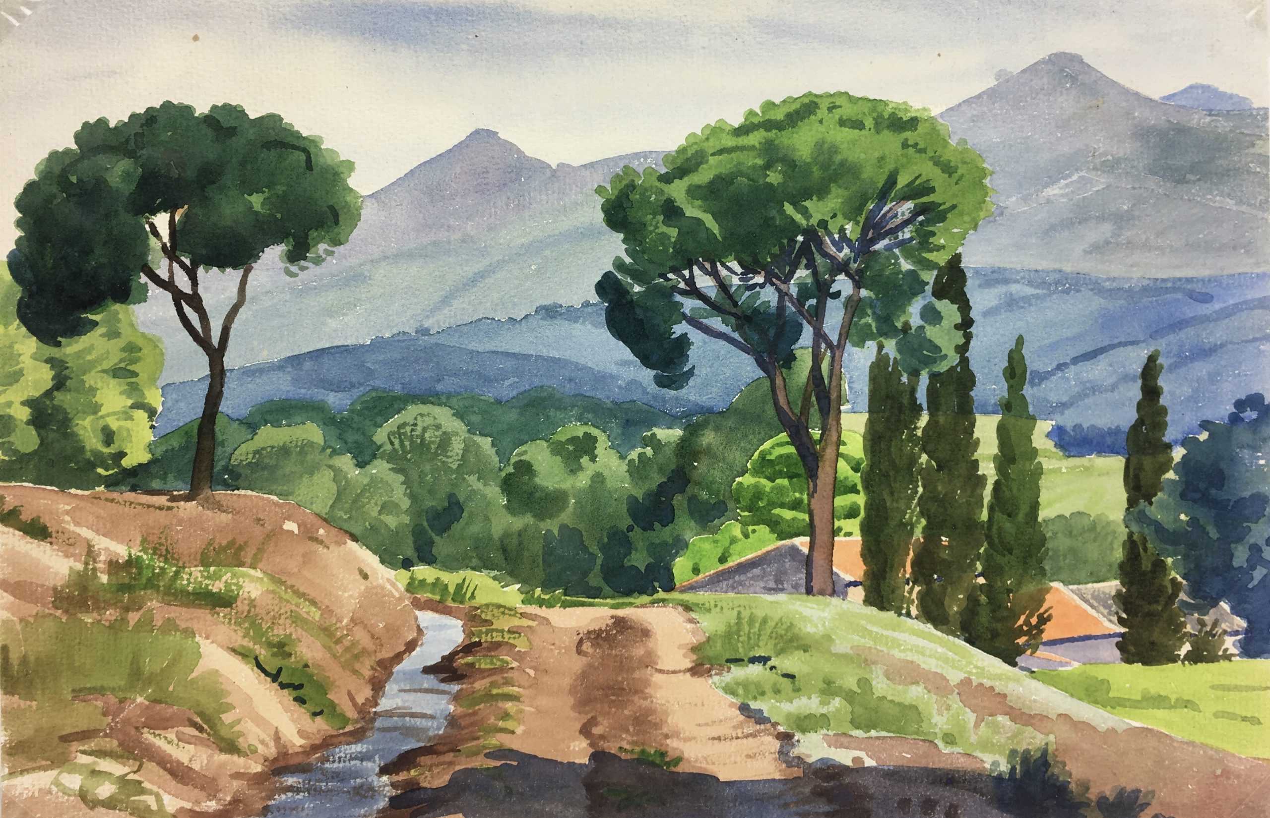 Original Art on paper displayed on a white mat with a gold border. Mat fits a standard-size frame. Archival plastic sleeve and Certificate of Authenticity included. Original Art, 15.75″W x 10.25″H; mat, 20″W x 16″H.