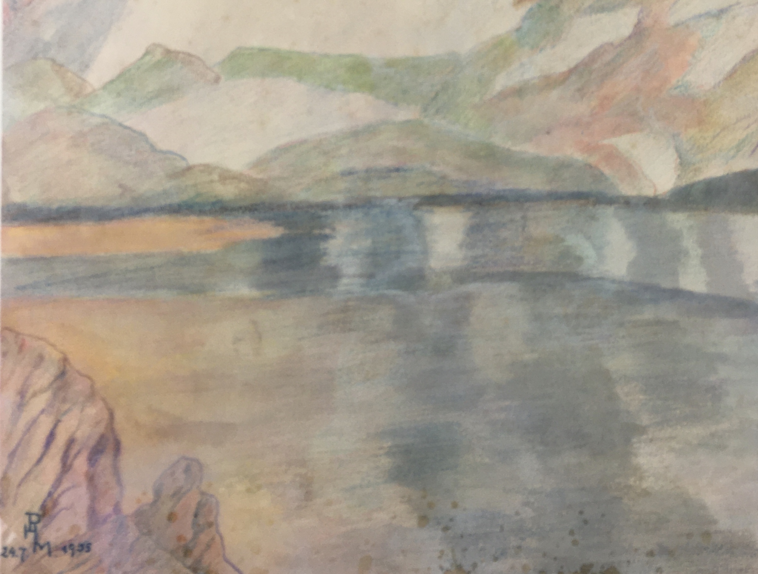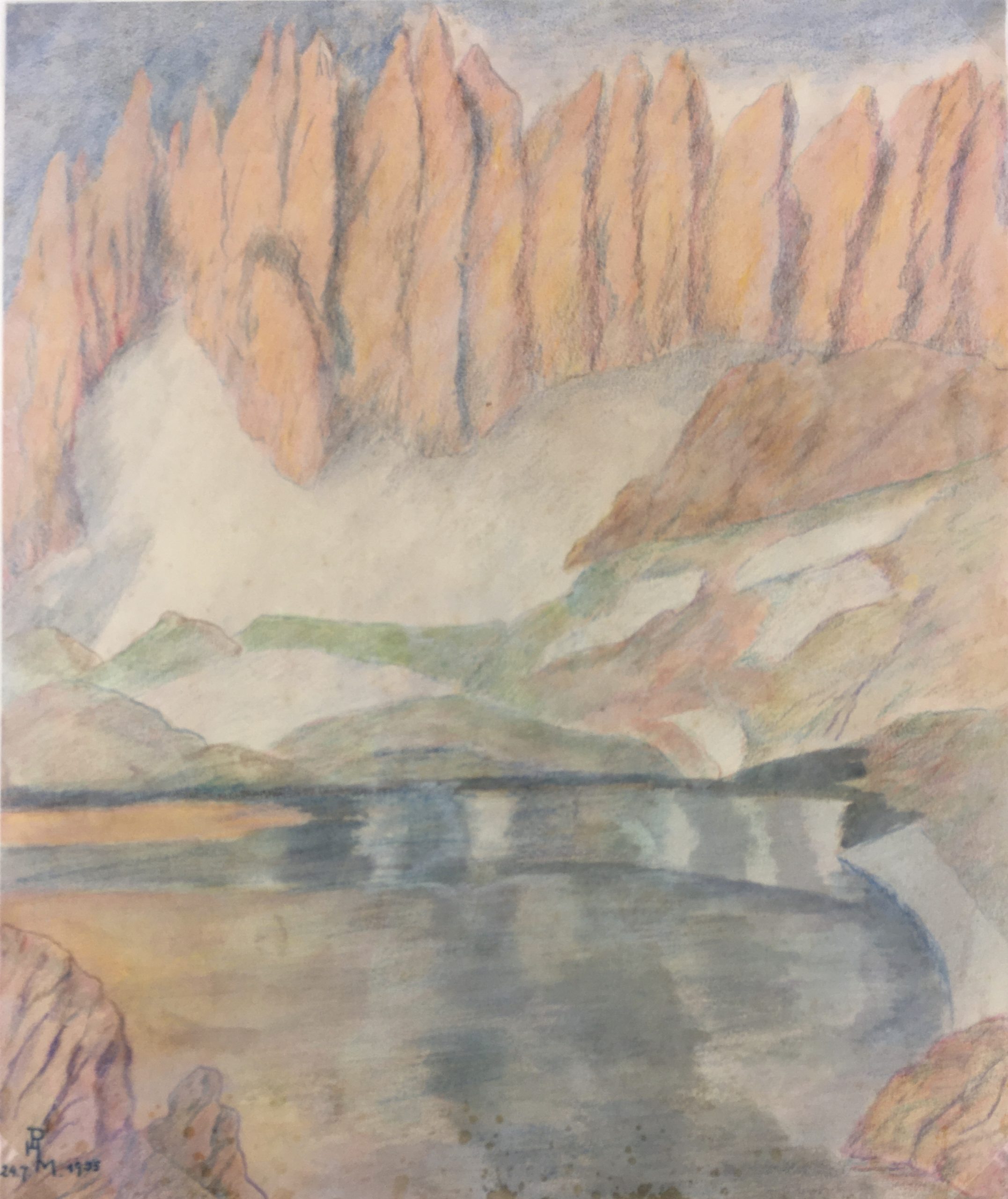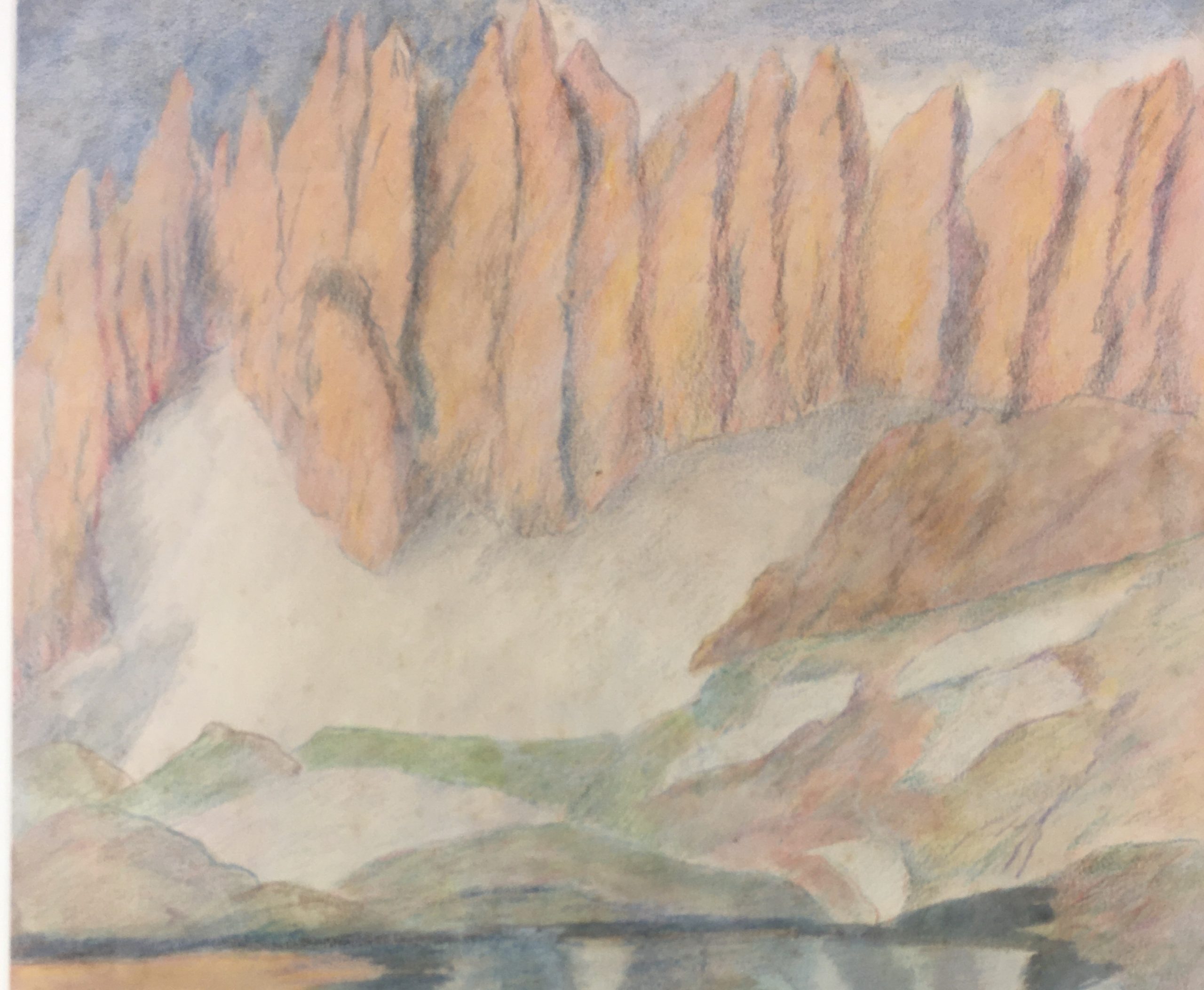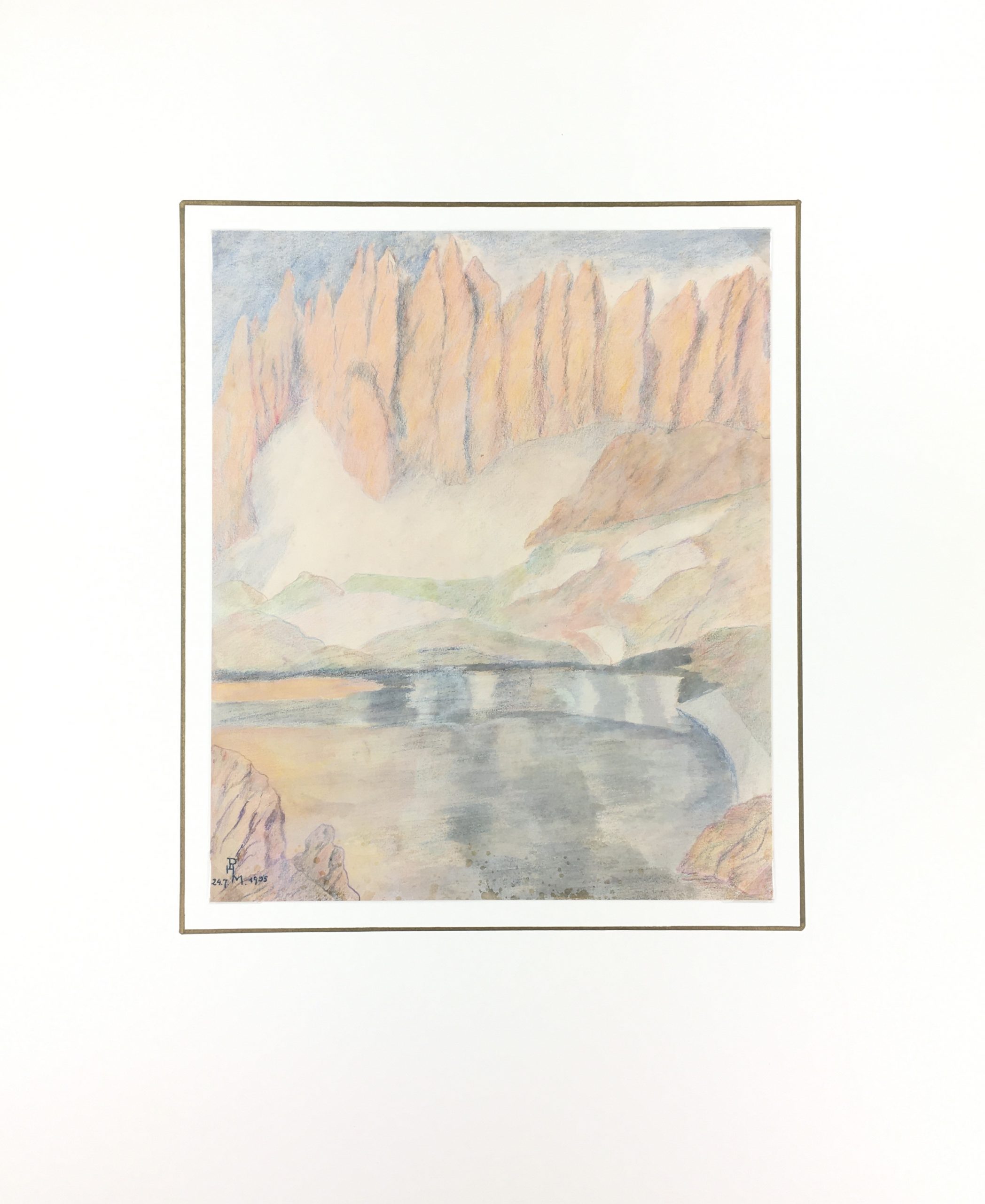Original Art on paper displayed on a white mat with a gold border. Mat fits a standard-size frame. Archival plastic sleeve and Certificate of Authenticity included. Original Art, 9″W x 10.75″H; mat, 16″W x 20″H.