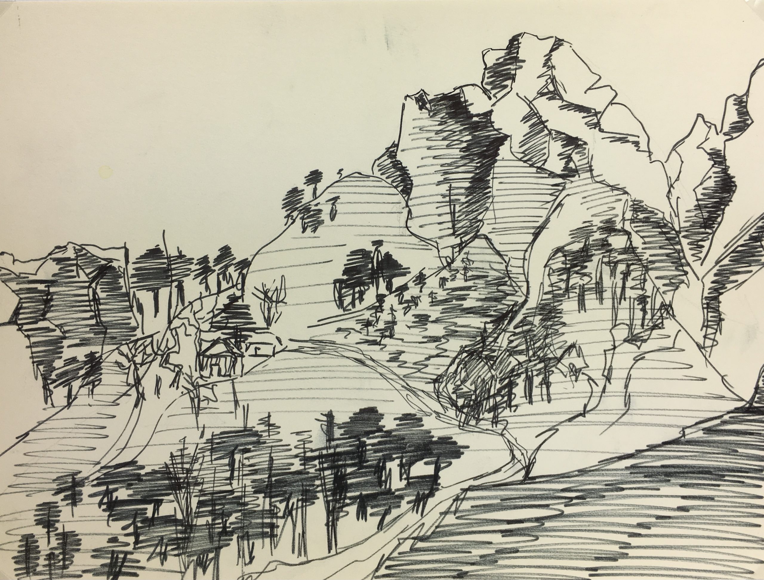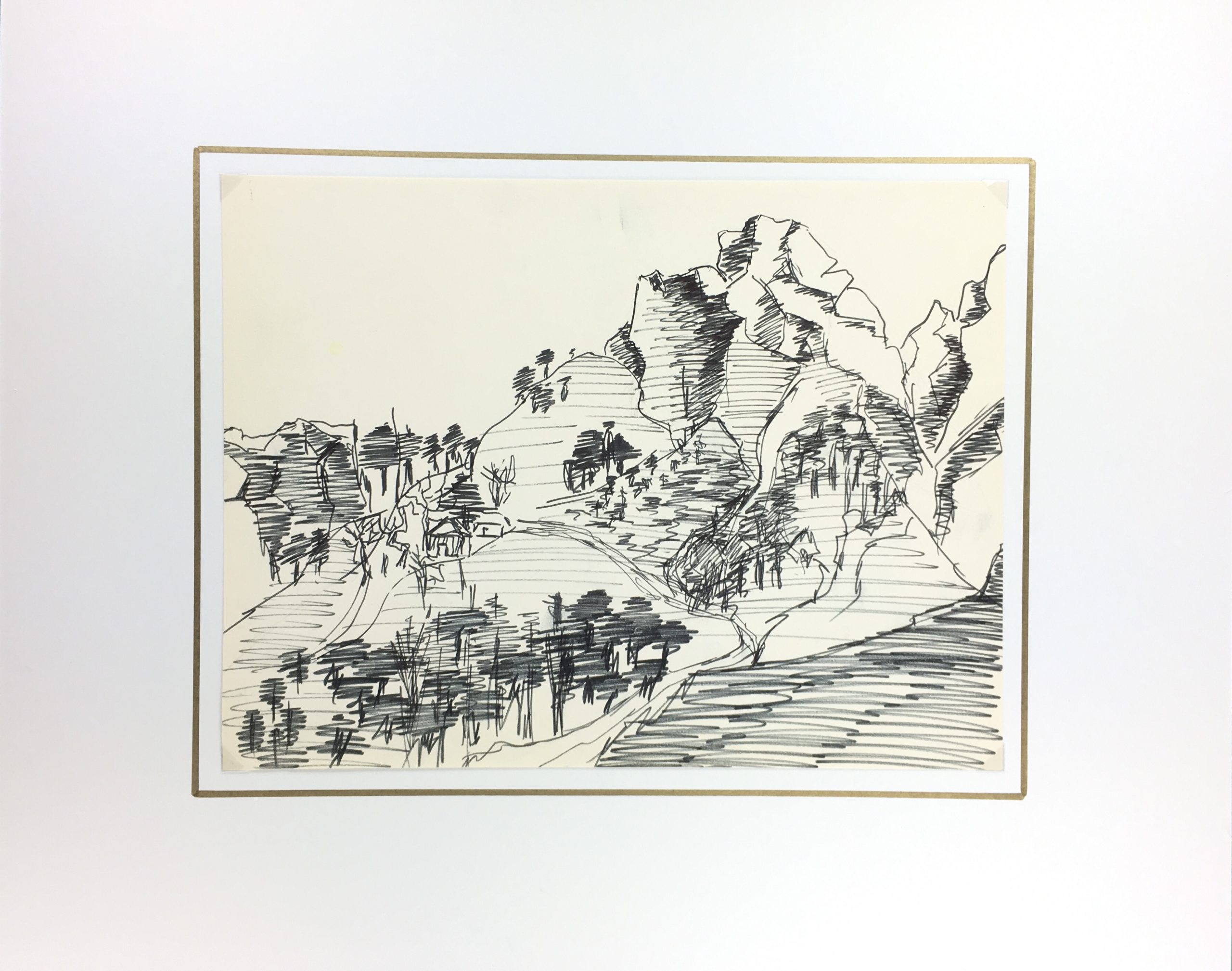 Original Art on paper displayed on a white mat with a gold border. Mat fits a standard-size frame. Archival plastic sleeve and Certificate of Authenticity included. Original Art, 12.5″W x 9.5″H; mat, 16″W x 20″H.