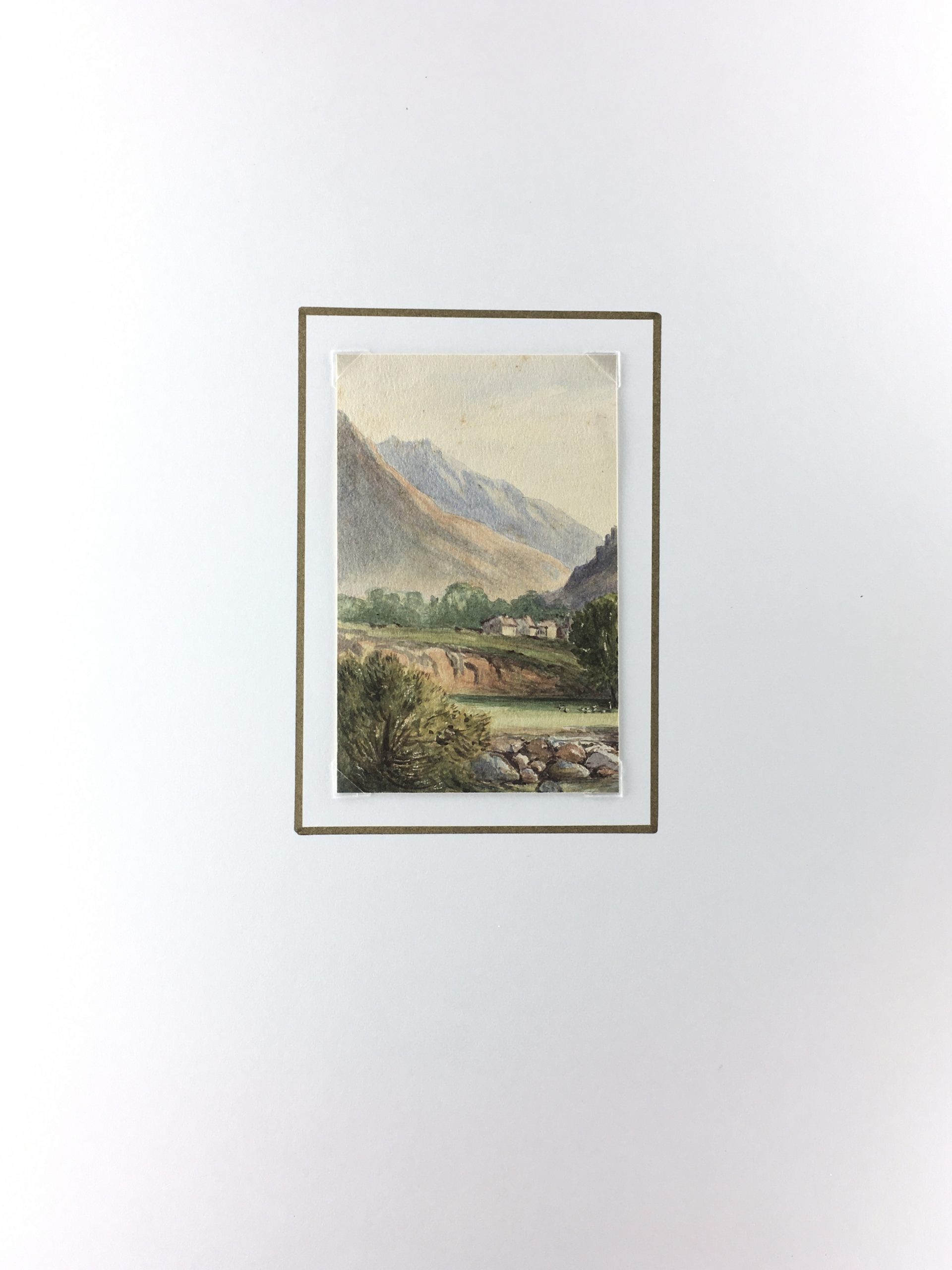 Original Art on paper displayed on a white mat with a gold border. Mat fits a standard-size frame. Archival plastic sleeve and Certificate of Authenticity included. Original Art, 3.5″W x 5.25″H; mat, 12″W x 16″H.