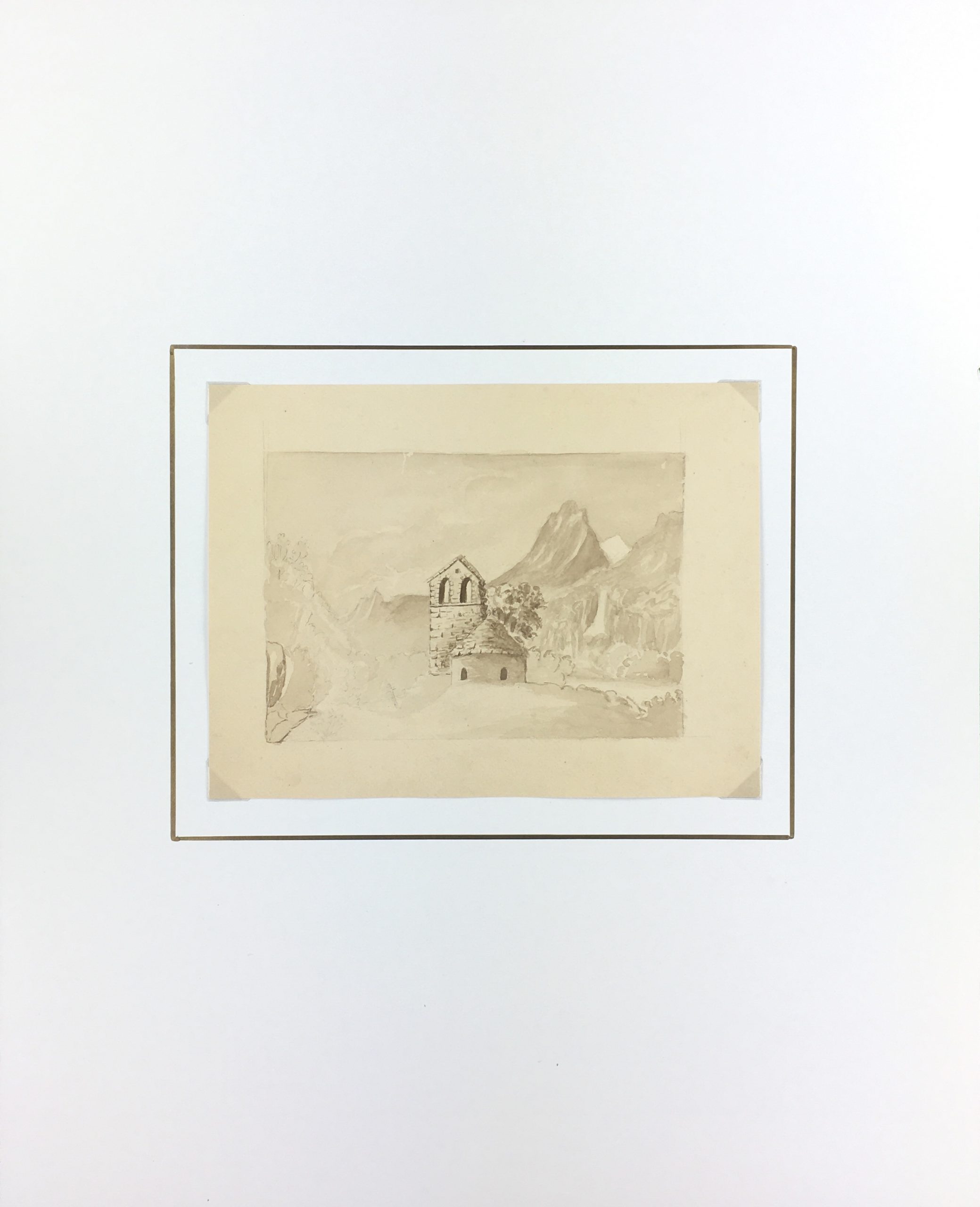 Original Art on paper displayed on a white mat with a gold border. Mat fits a standard-size frame. Archival plastic sleeve and Certificate of Authenticity included. Original Art, 9″W x 6.75″H; mat, 16″W x 20″H.