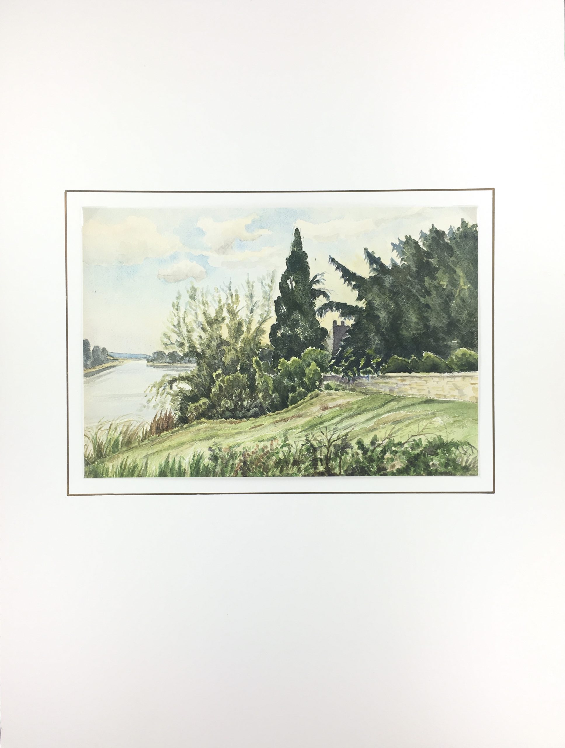 Original Art on paper displayed on a white mat with a gold border. Mat fits a standard-size frame. Archival plastic sleeve and Certificate of Authenticity included. Original Art, 12.5″W x 8.5″H; mat, 18″W x 24″H.