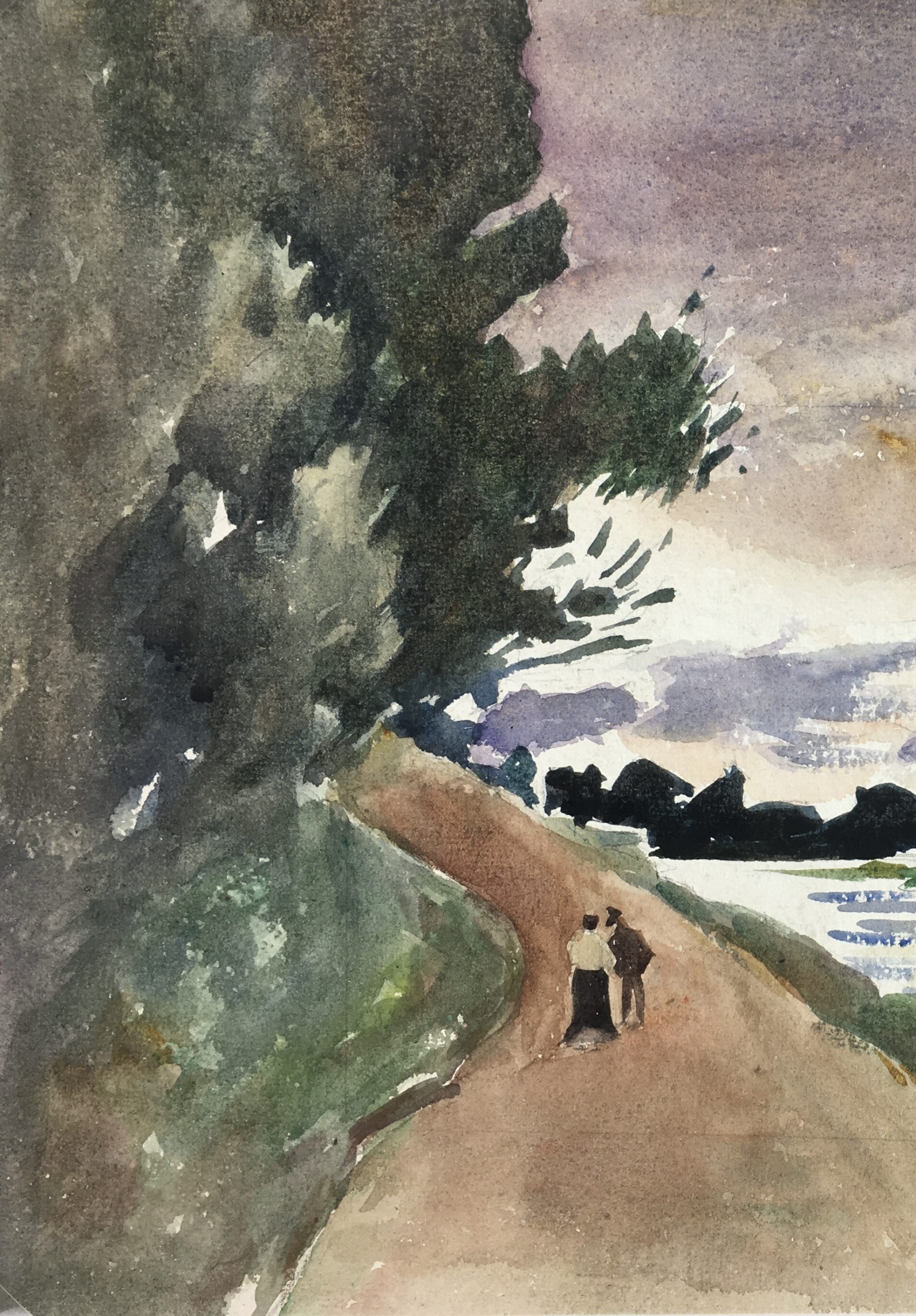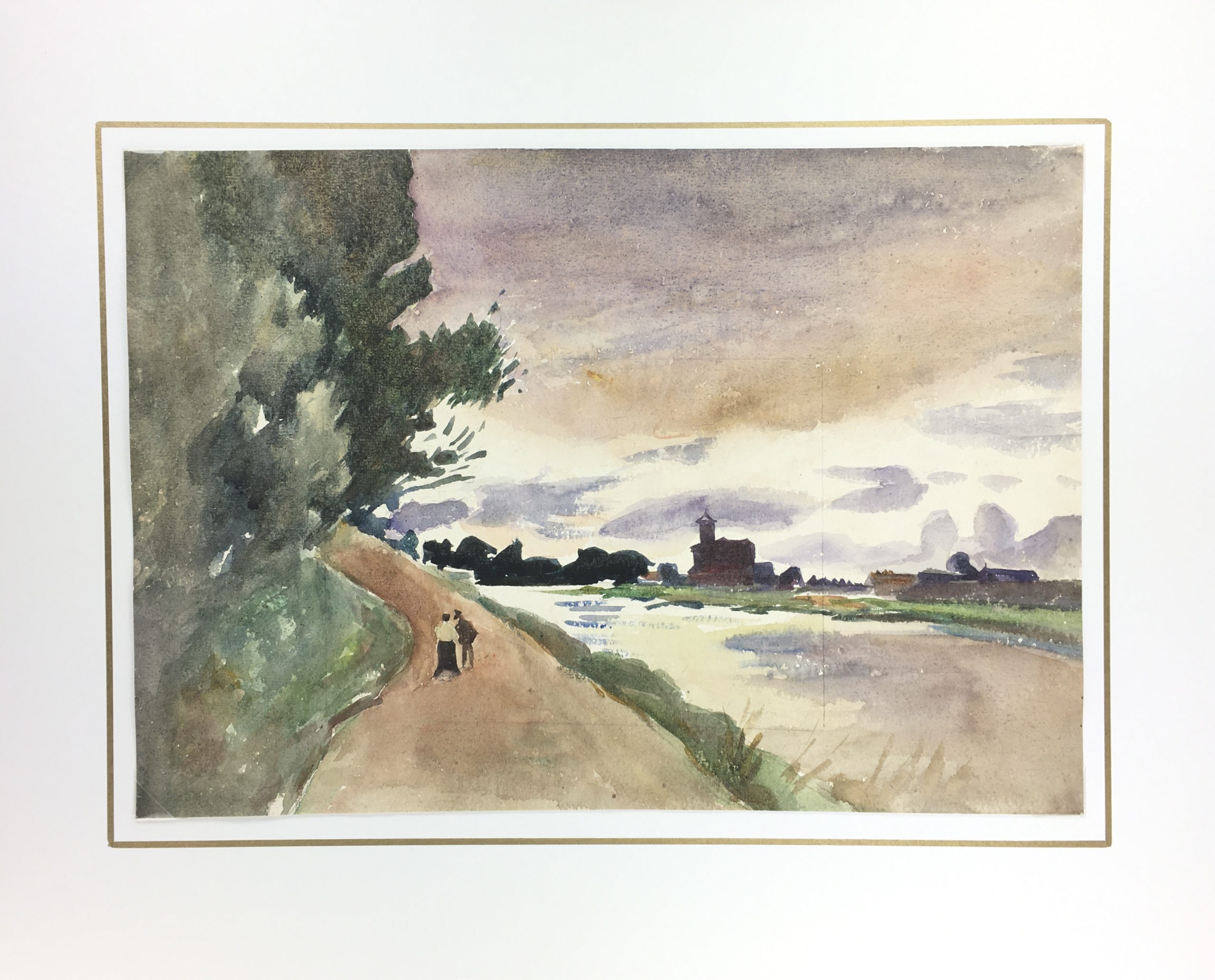 Original Art on paper displayed on a white mat with a gold border. Mat fits a standard-size frame. Archival plastic sleeve and Certificate of Authenticity included. Original Art, 15″W x 10.5″H; mat, 16″W x 20″H.