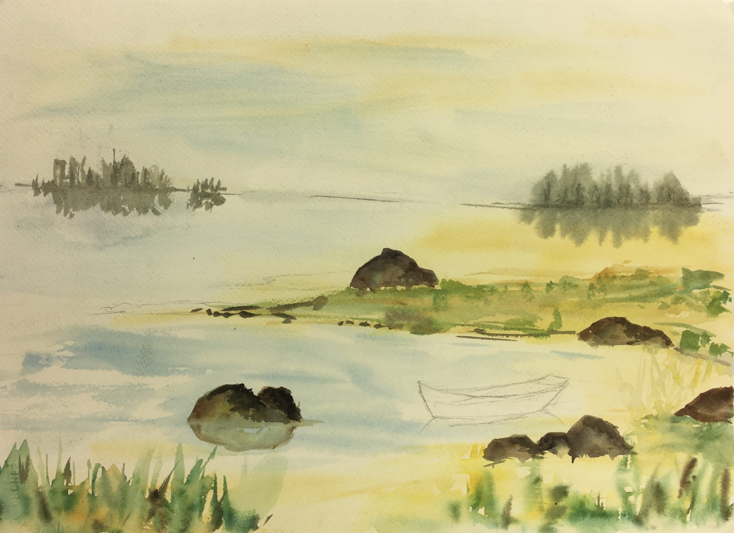 Original Art on paper displayed on a white mat with a gold border. Mat fits a standard-size frame. Archival plastic sleeve and Certificate of Authenticity included. Original Art, 14.5″W x 10.25″H; mat, 16″W x 20″H.