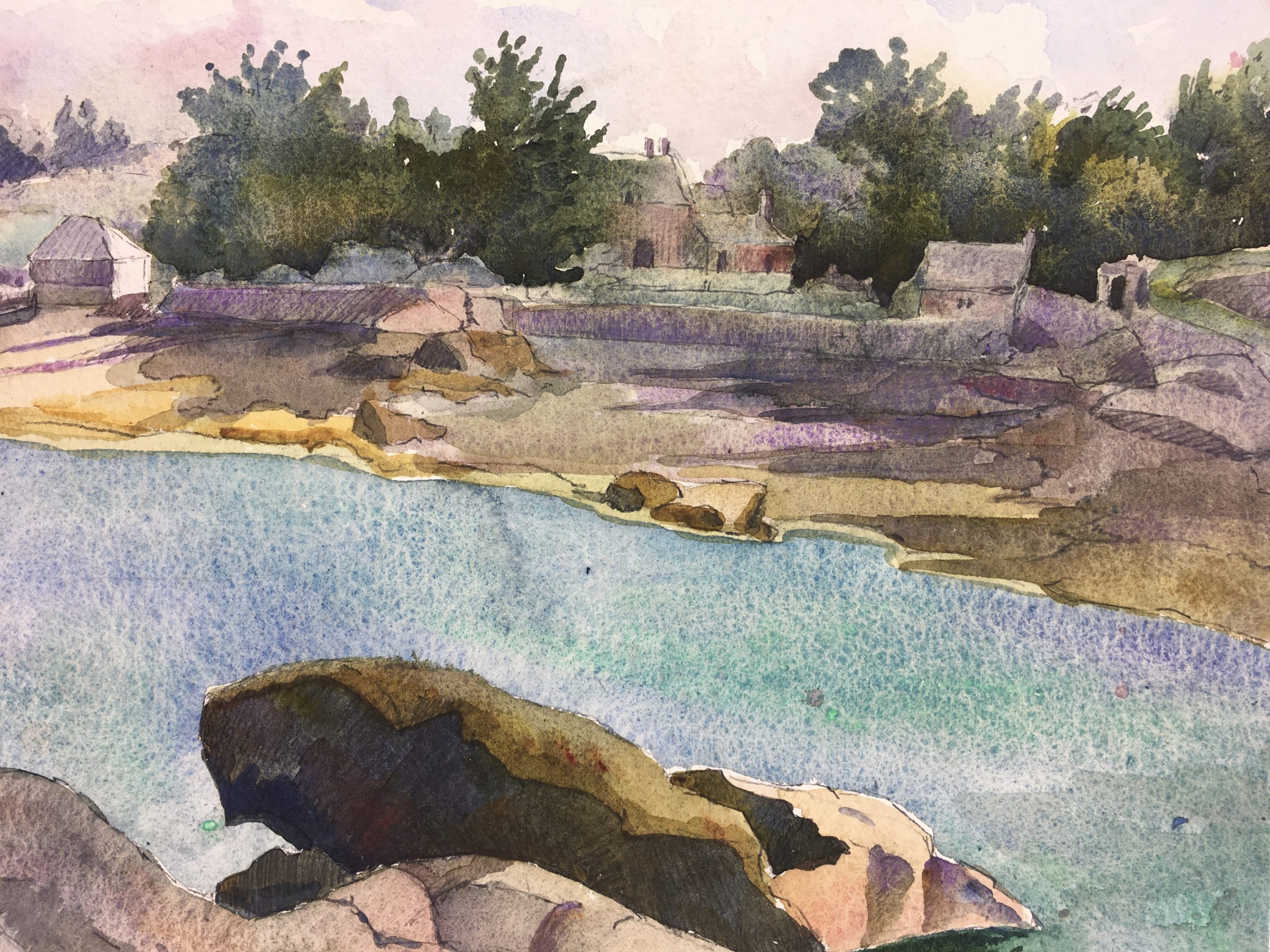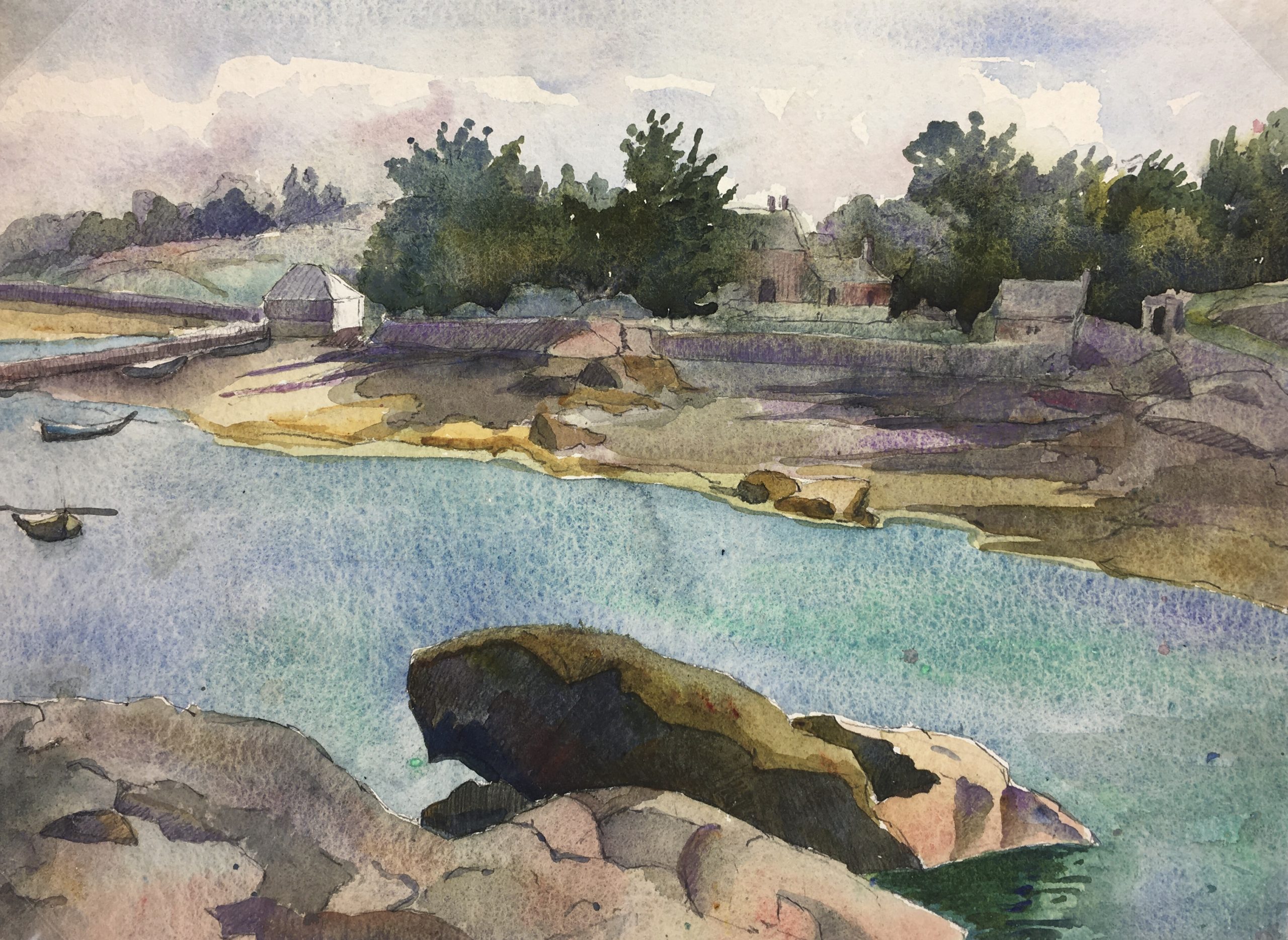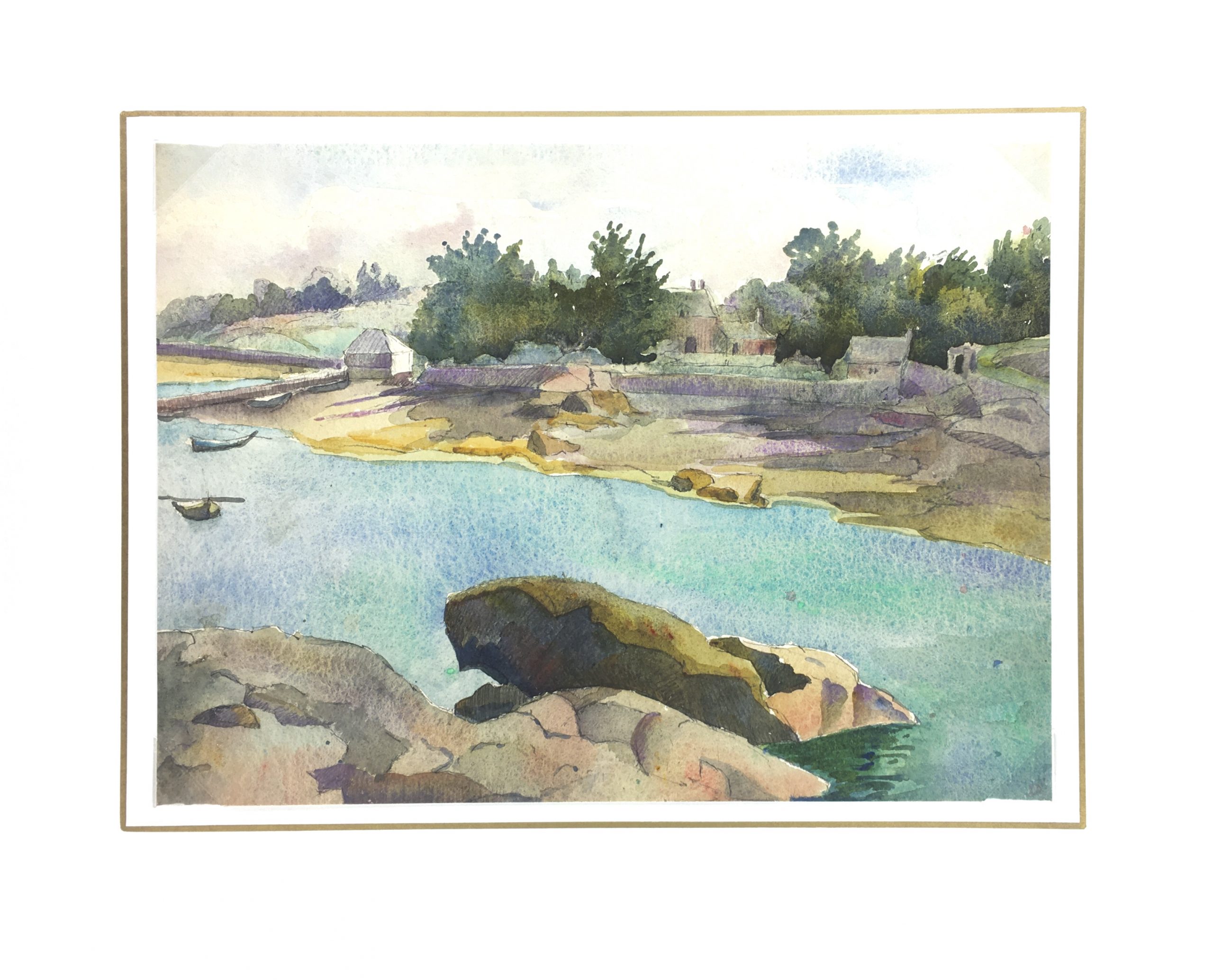 Rivers Original Art – Turquoise Riverside, French, C.1950