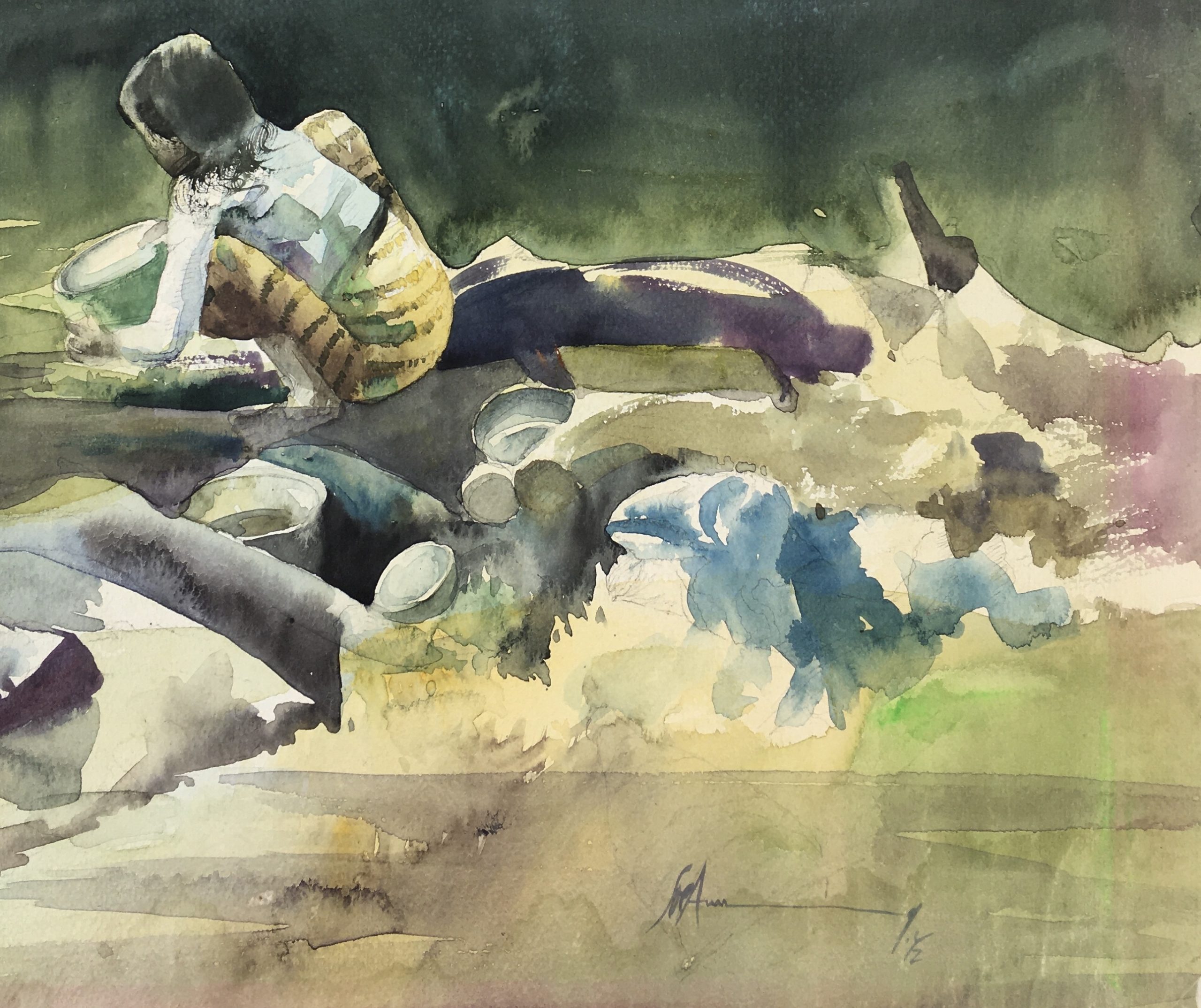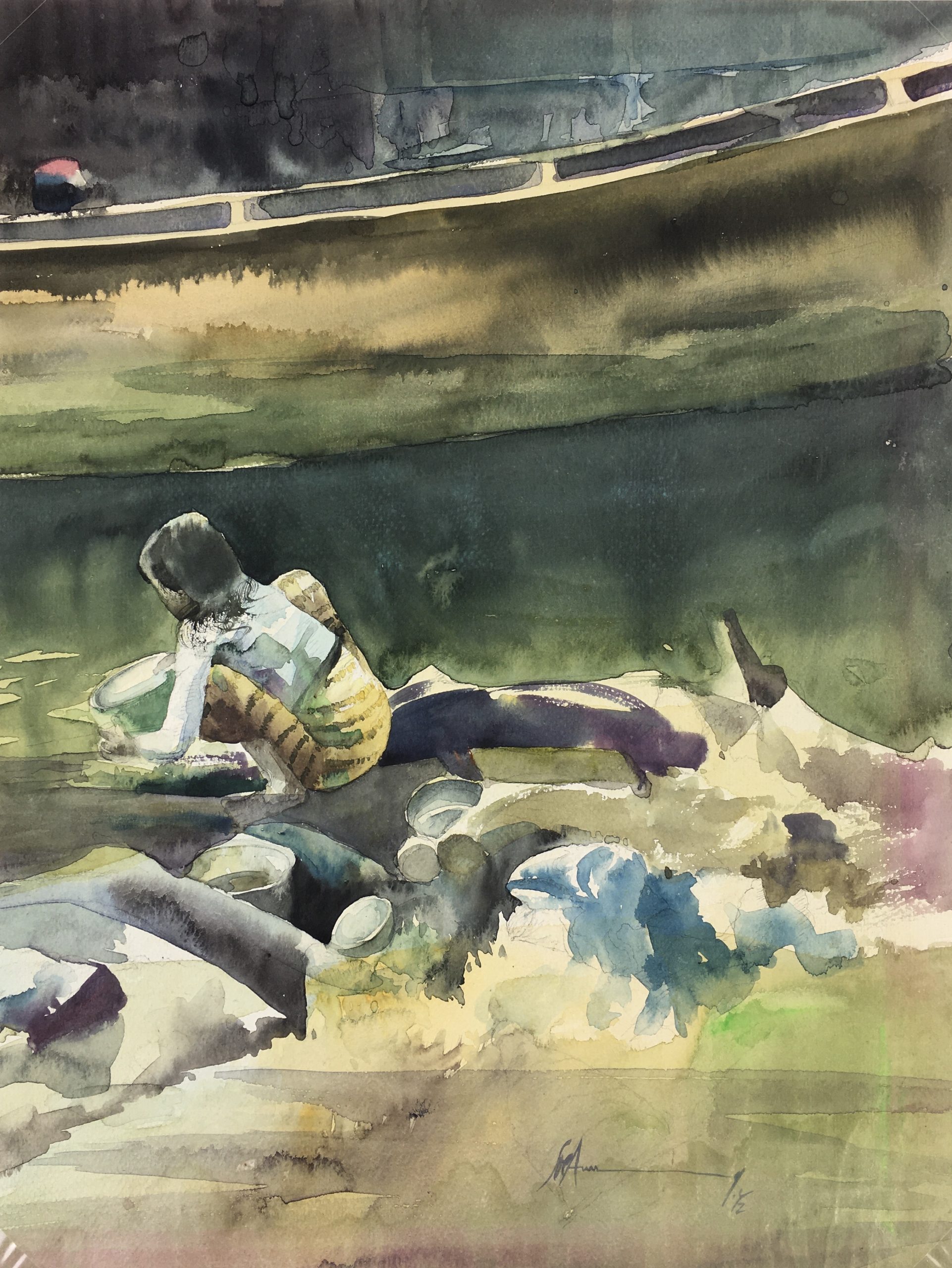 Original Art on paper displayed on a white mat with a gold border. Mat fits a standard-size frame. Archival plastic sleeve and Certificate of Authenticity included. Original Art, 10.75″W x 14.25″H; mat, 16″W x 20″H.