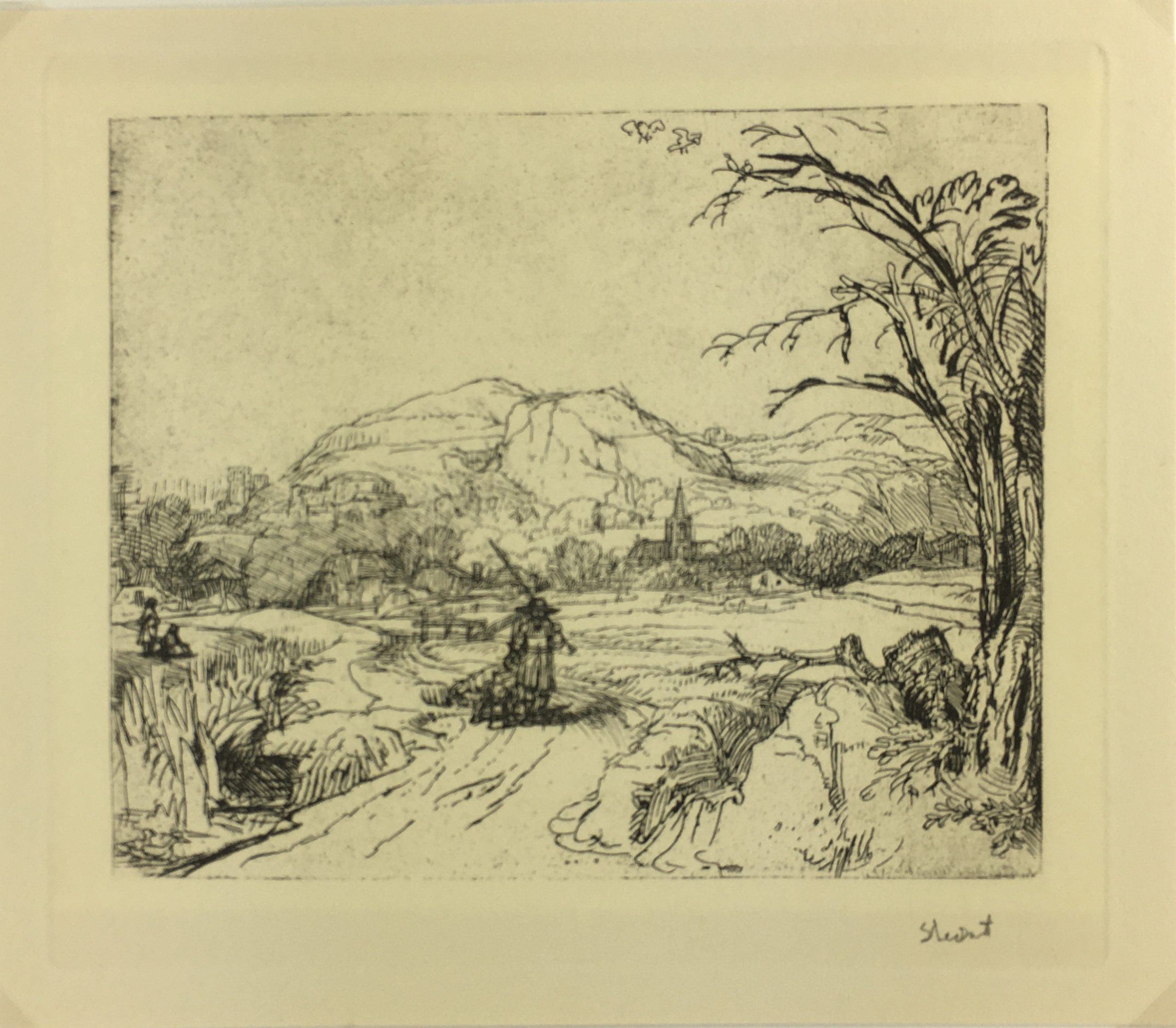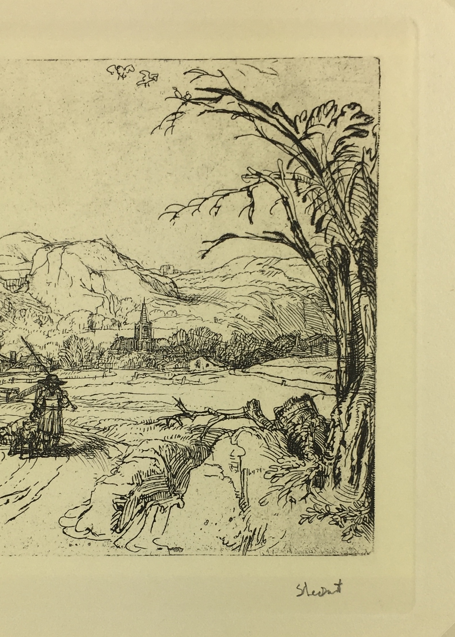 Original Art on paper displayed on a white mat with a gold border. Mat fits a standard-size frame. Archival plastic sleeve and Certificate of Authenticity included. Original Art, 7.75″W x 6.75″H; mat, 16″W x 20″H.
