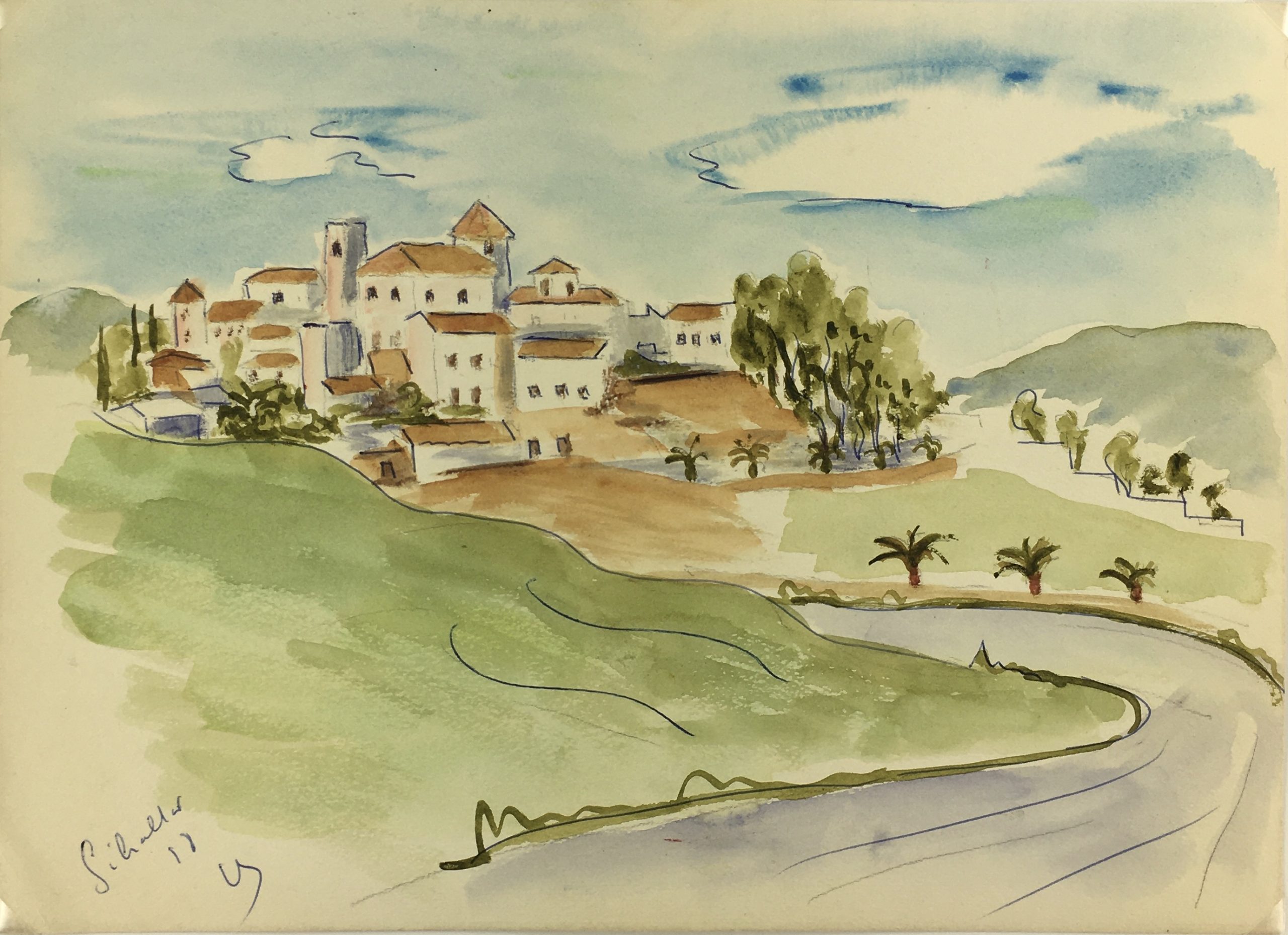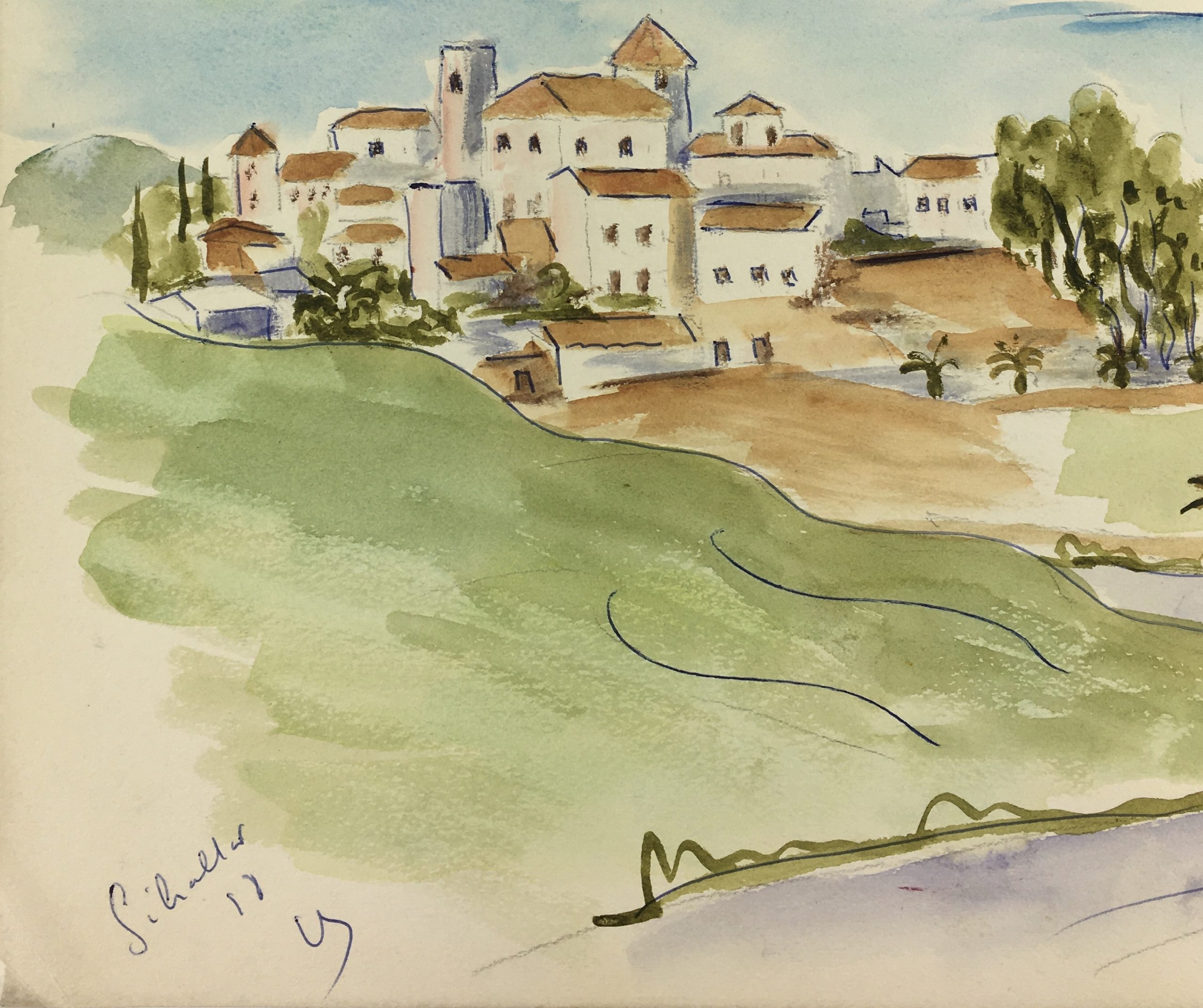 Europe Original Art – watercolor & ink – Greek Village, 1988