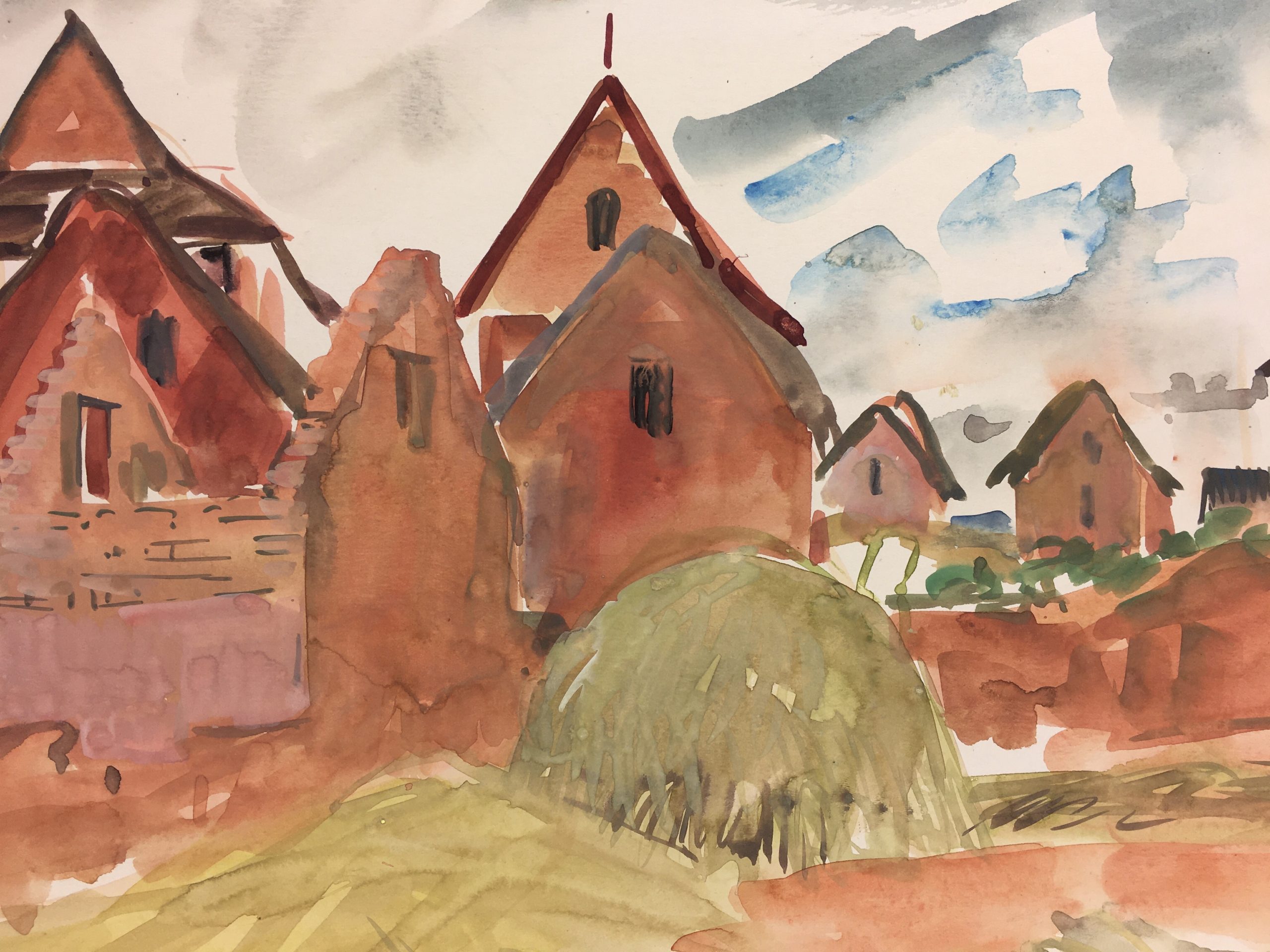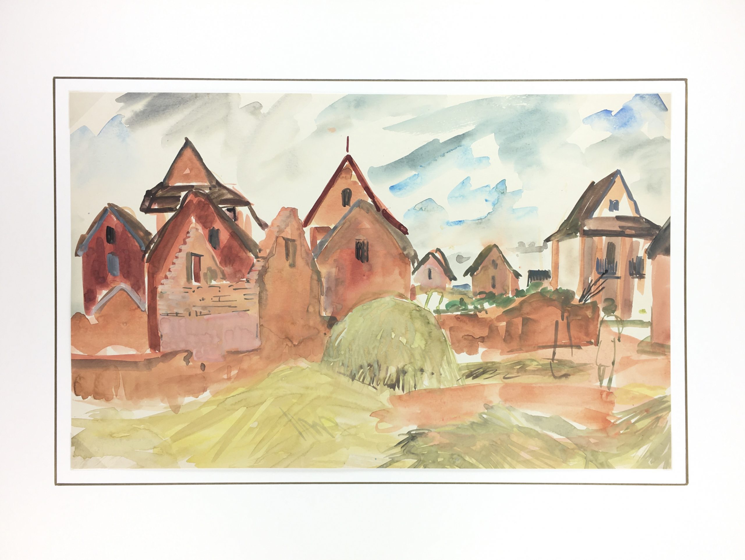 Original Art on paper displayed on a white mat with a gold border. Mat fits a standard-size frame. Archival plastic sleeve and Certificate of Authenticity included. Original Art, 19″W x 12″H; mat, 24″W x 18″H.