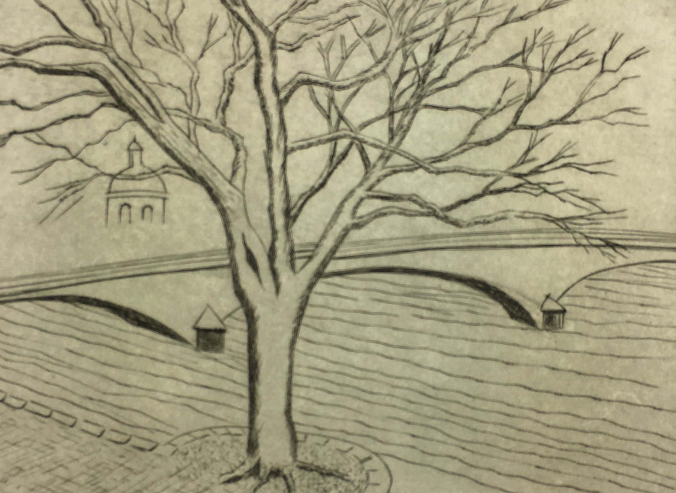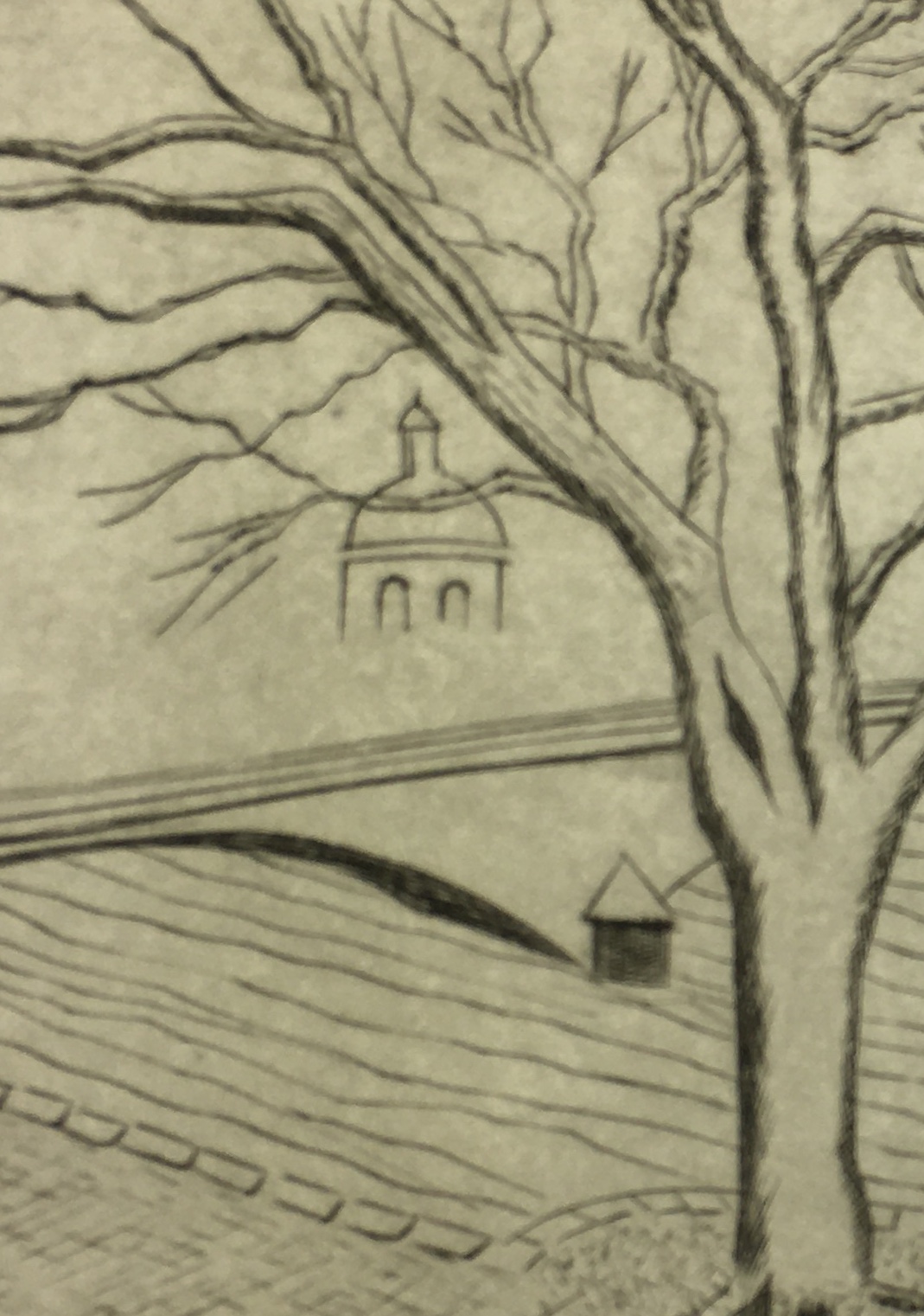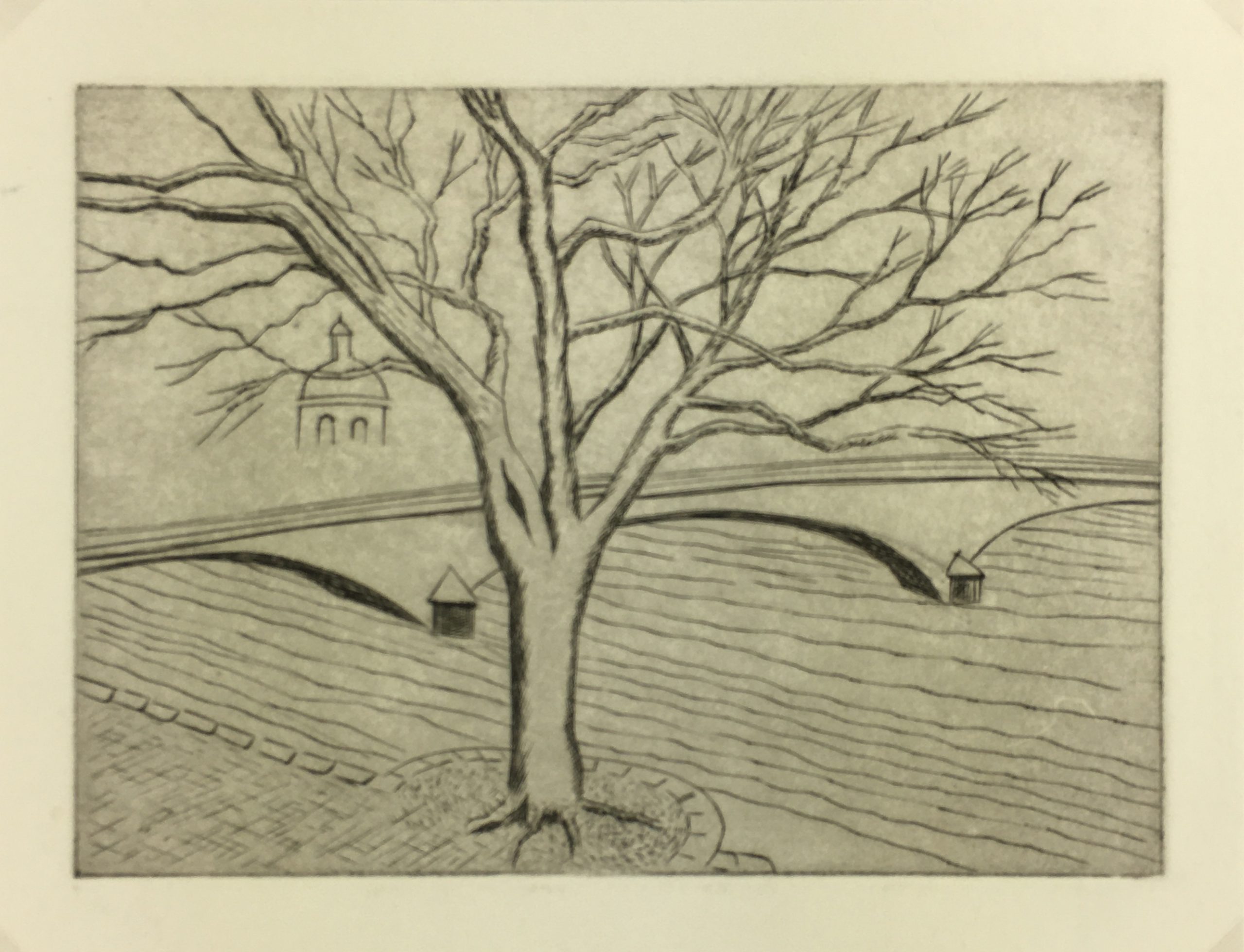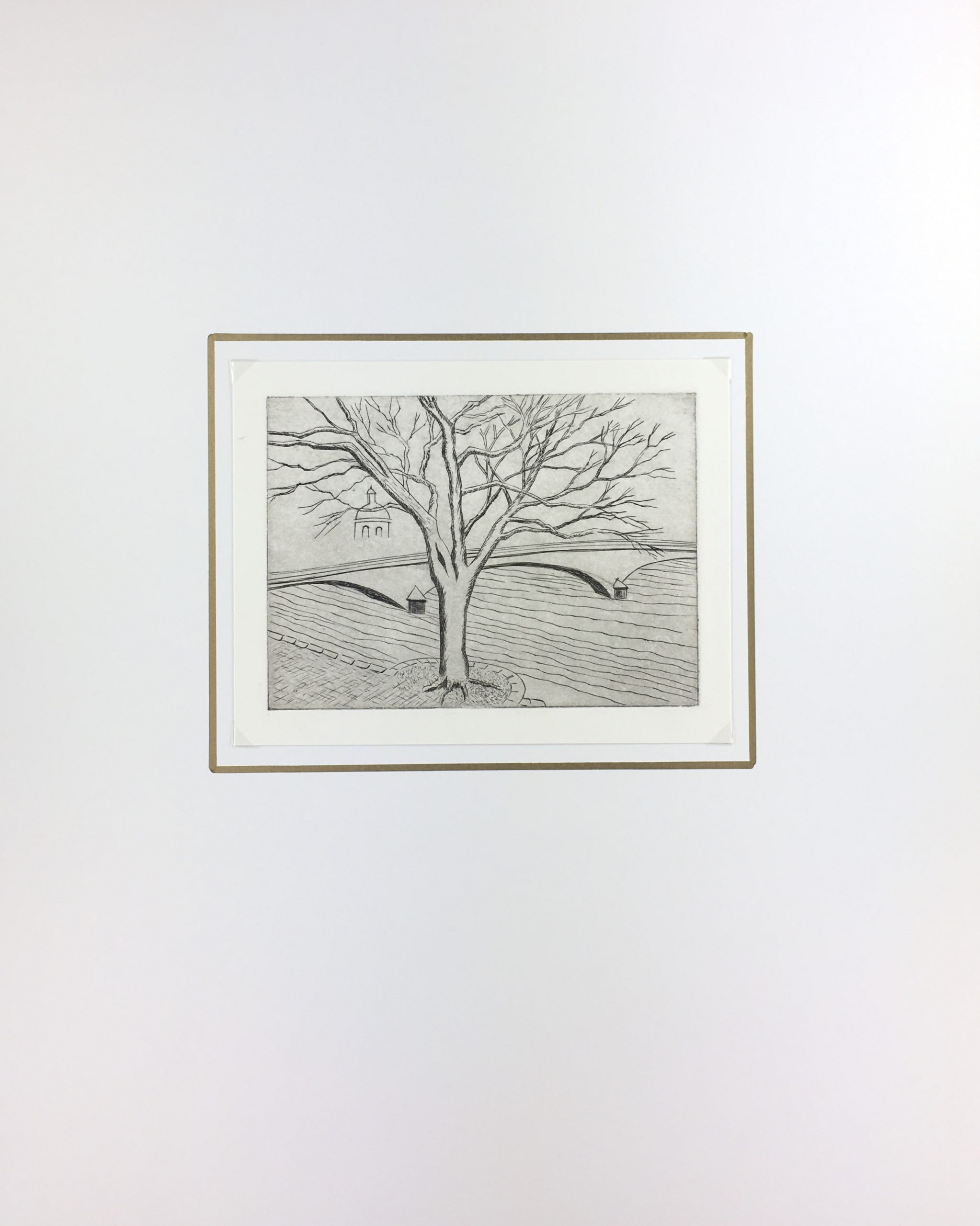Original Art on paper displayed on a white mat with a gold border. Mat fits a standard-size frame. Archival plastic sleeve and Certificate of Authenticity included. Original Art, 8″W x 6.25″H; mat, 16″W x 20″H.