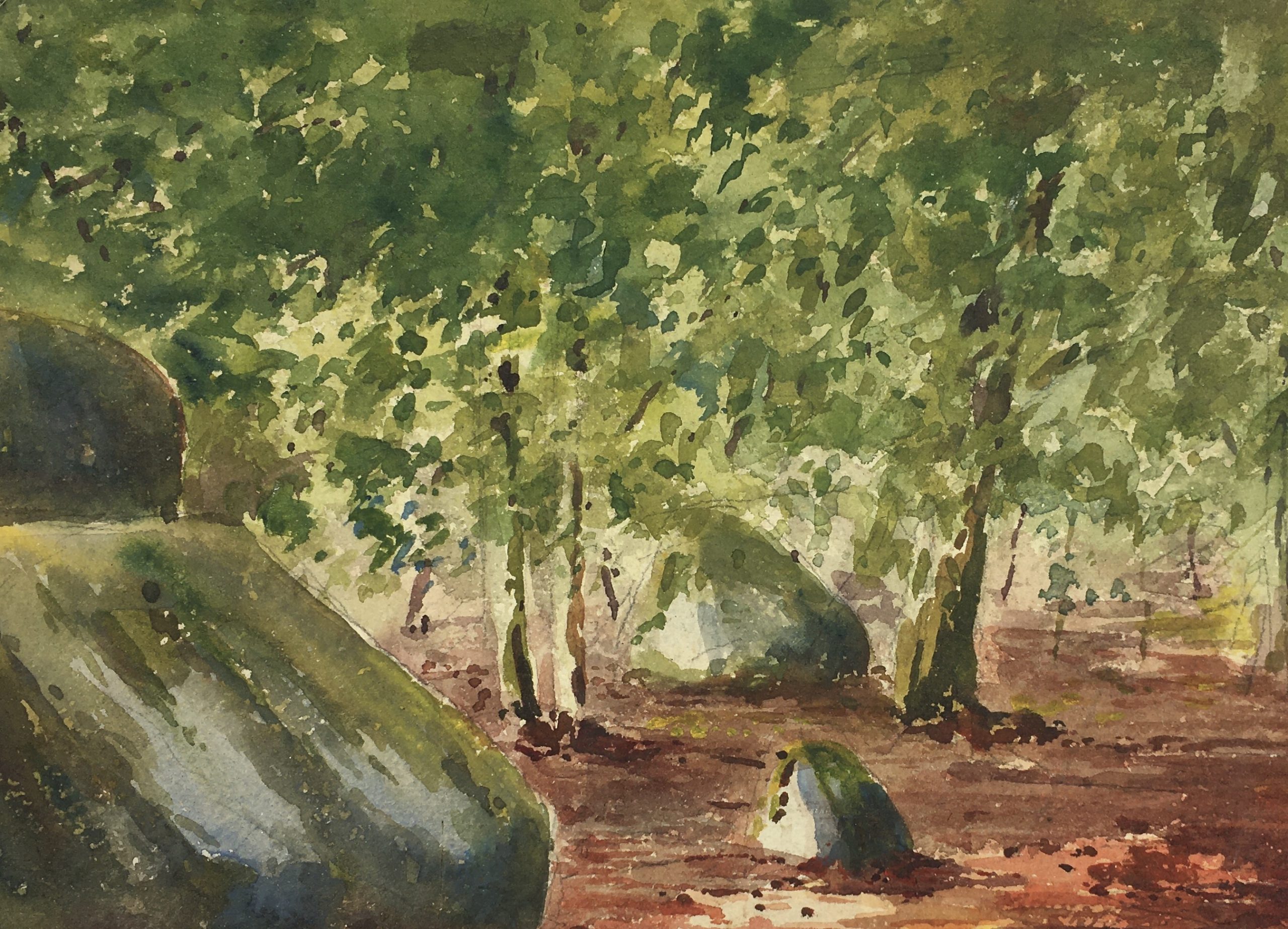Original Art on paper displayed on a white mat with a gold border. Mat fits a standard-size frame. Archival plastic sleeve and Certificate of Authenticity included. Original Art, 9.5″W x 7″H; mat, 20″W x 16″H.
