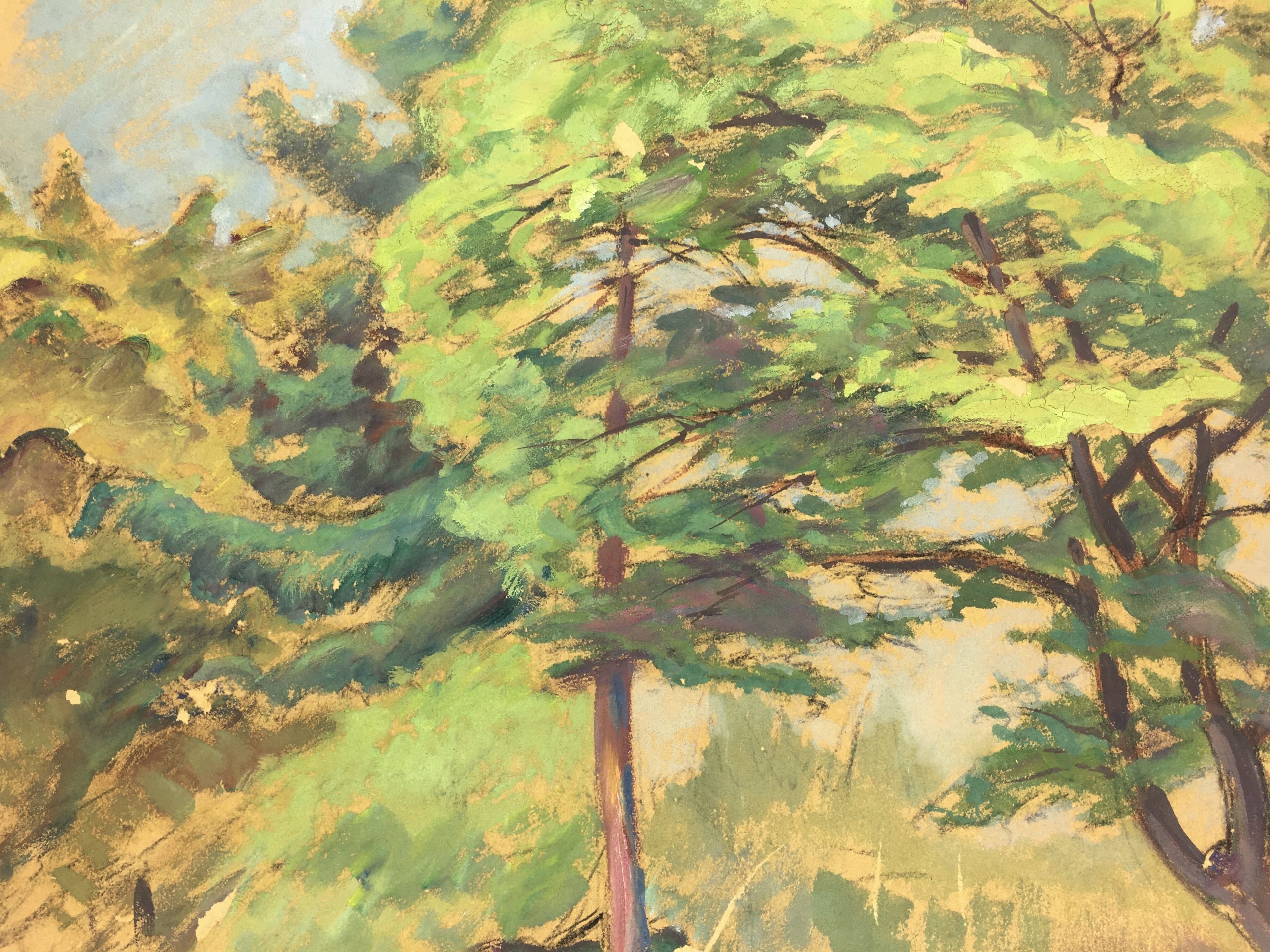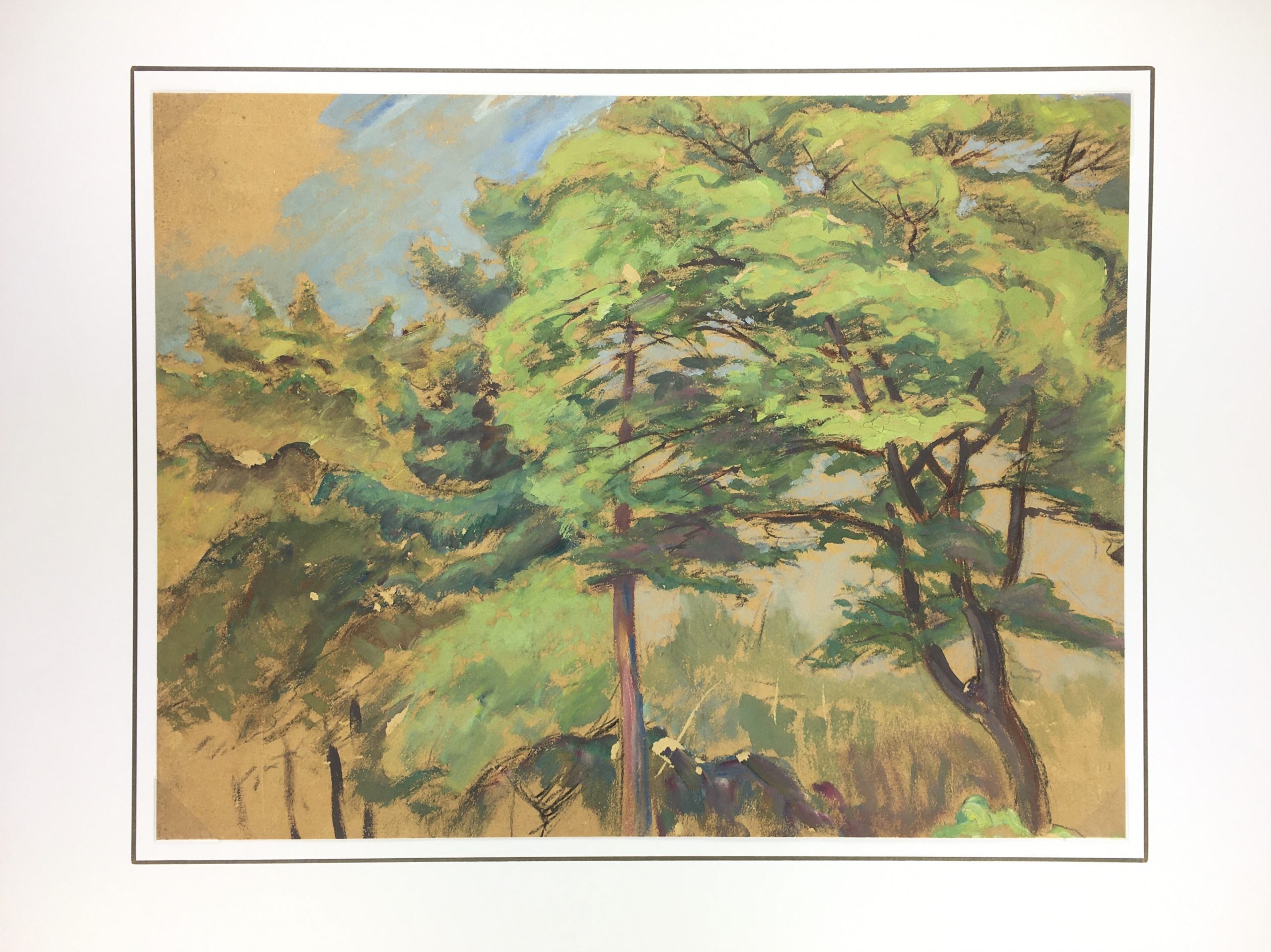 Original Art on paper displayed on a white mat with a gold border. Mat fits a standard-size frame. Archival plastic sleeve and Certificate of Authenticity included. Original Art, 18″W x 13.75″H; mat, 24″W x 18″H.