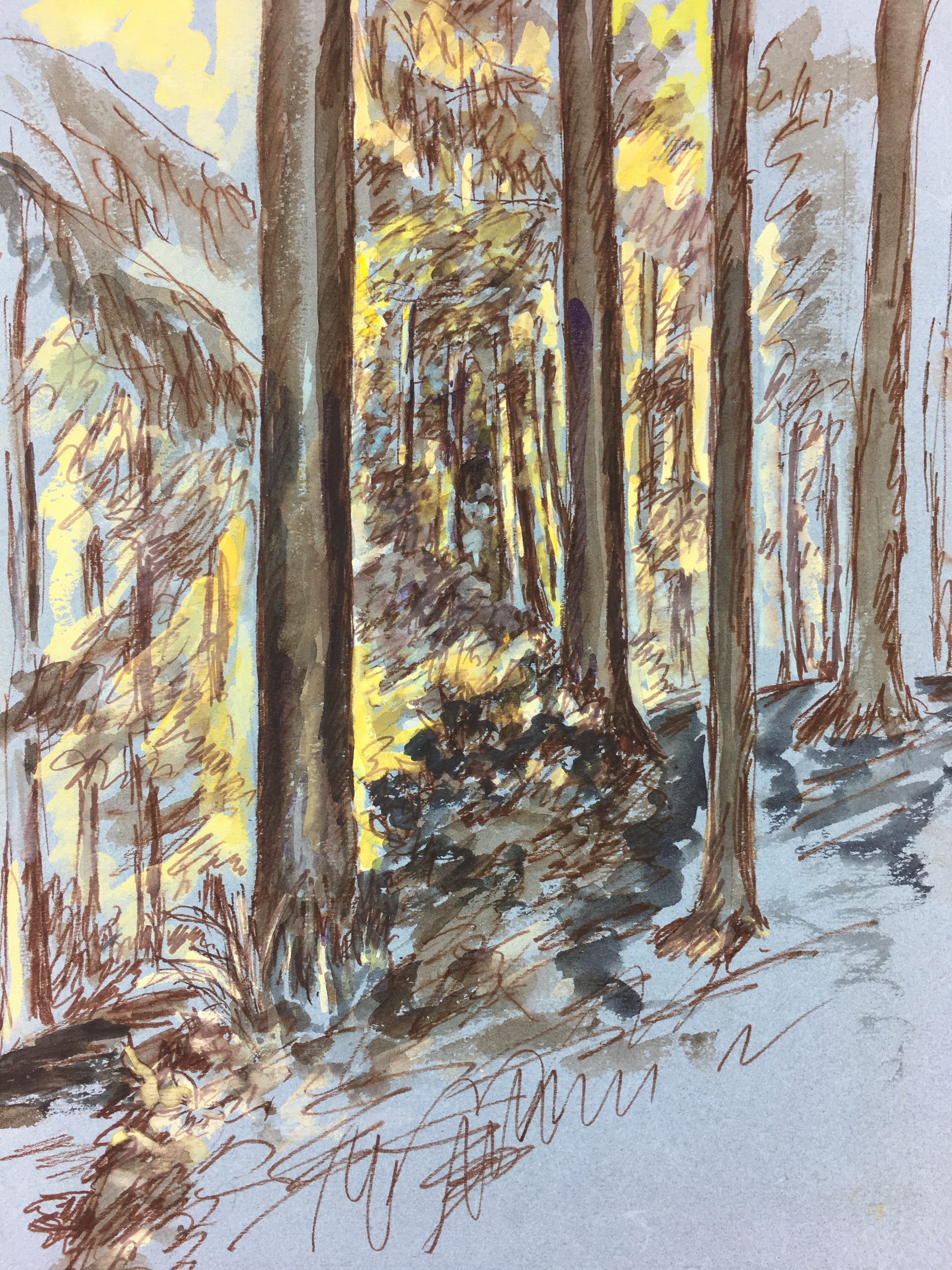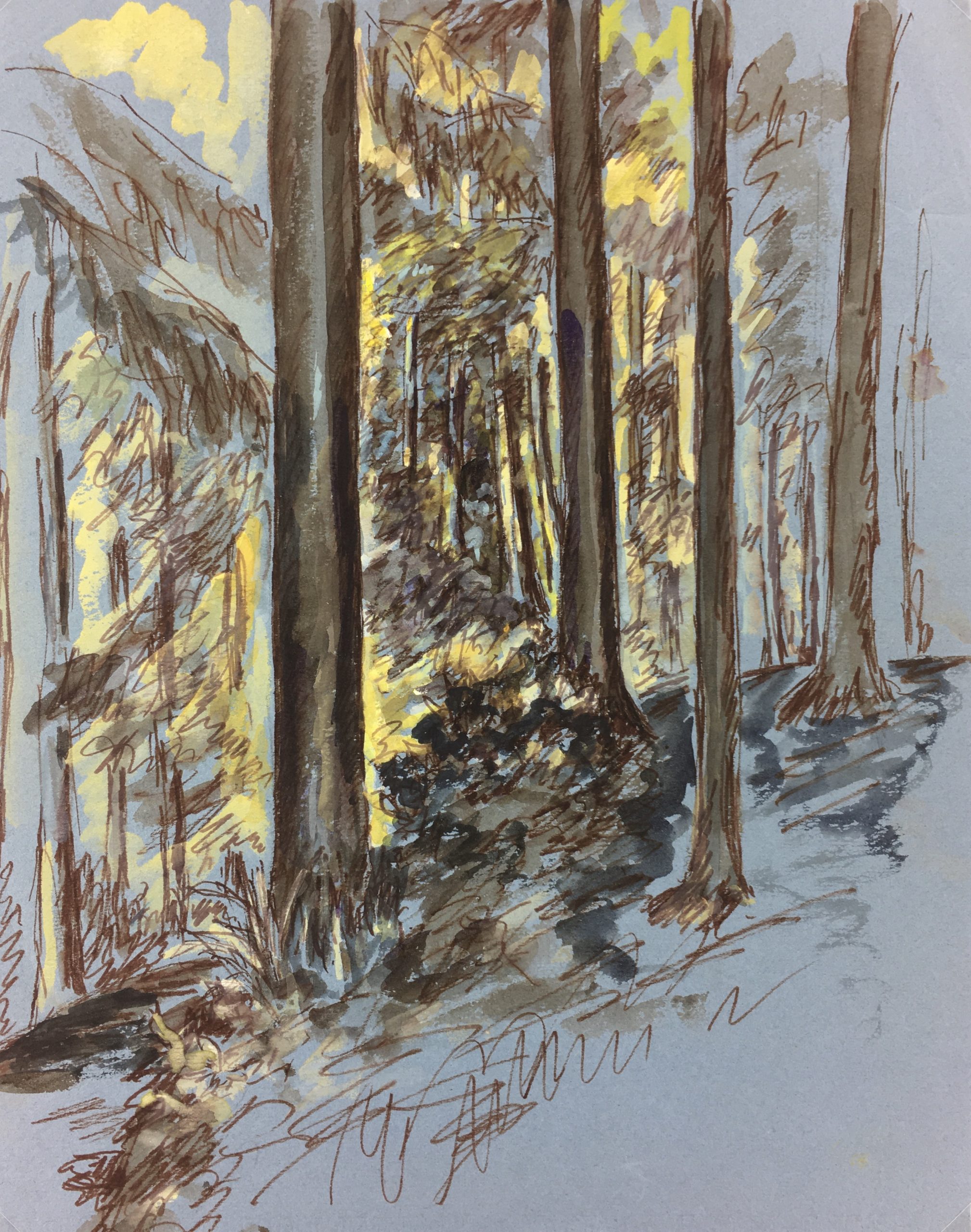 Original Art on paper displayed on a white mat with a gold border. Mat fits a standard-size frame. Archival plastic sleeve and Certificate of Authenticity included. Original Art, 9.75″W x 12.25″H; mat, 16″W x 20″H.