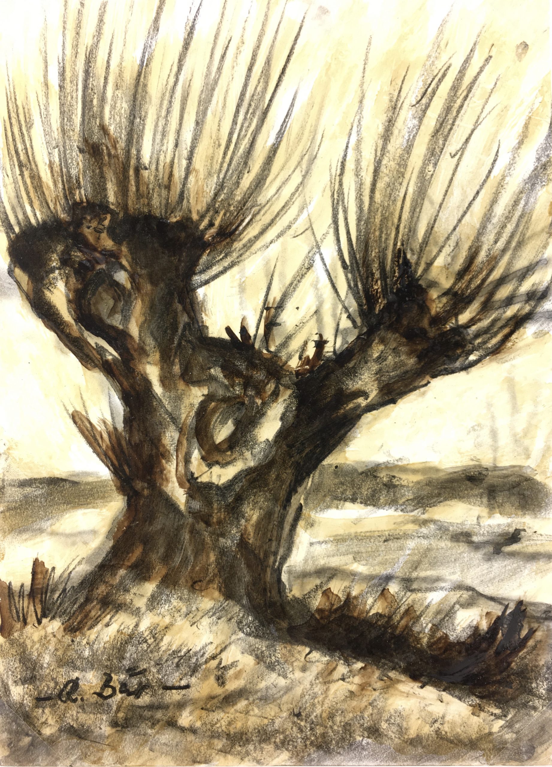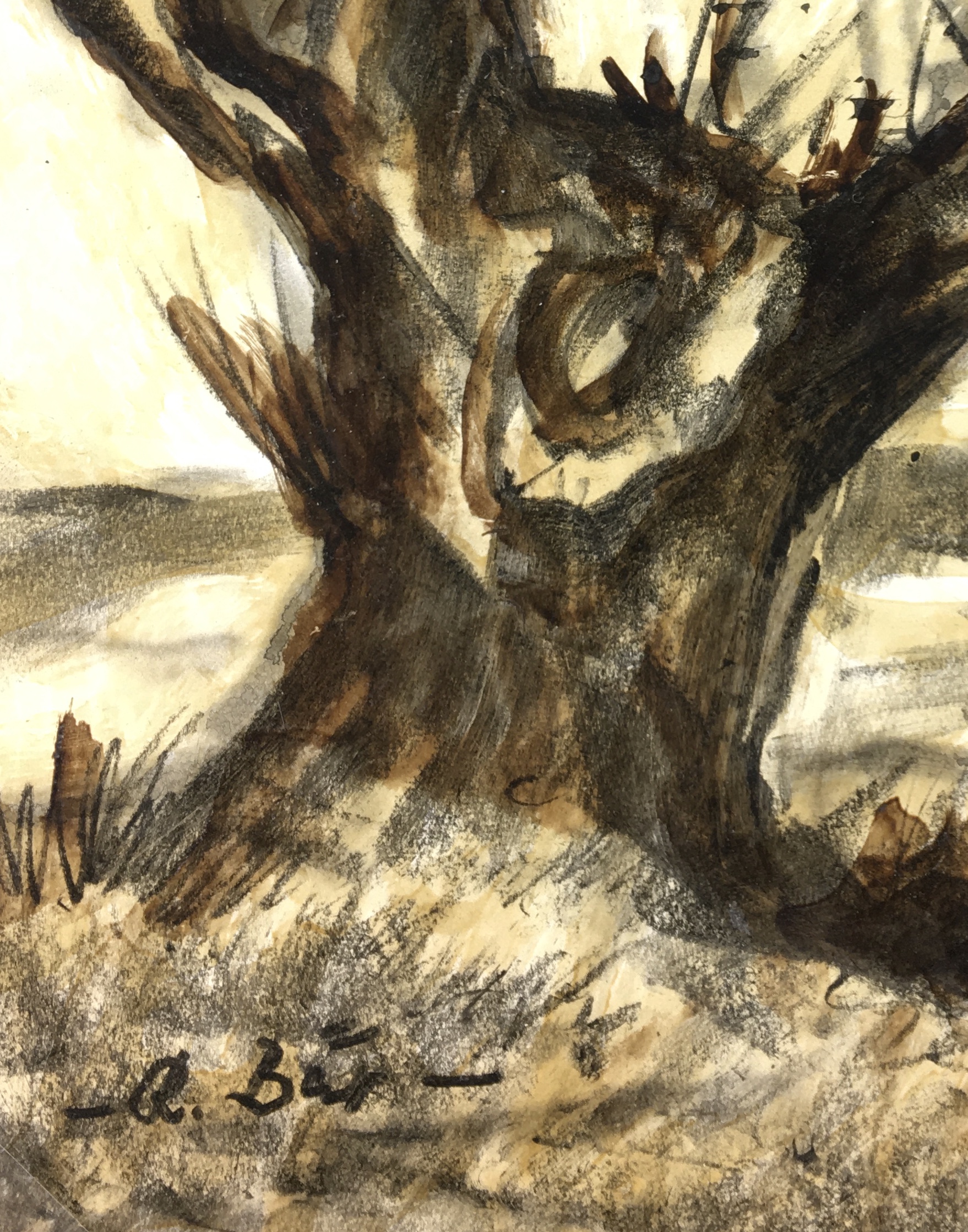 Original Art on paper displayed on a white mat with a gold border. Mat fits a standard-size frame. Archival plastic sleeve and Certificate of Authenticity included. Original Art, 8.25″W x 11.25″H; mat, 16″W x 20″H.
