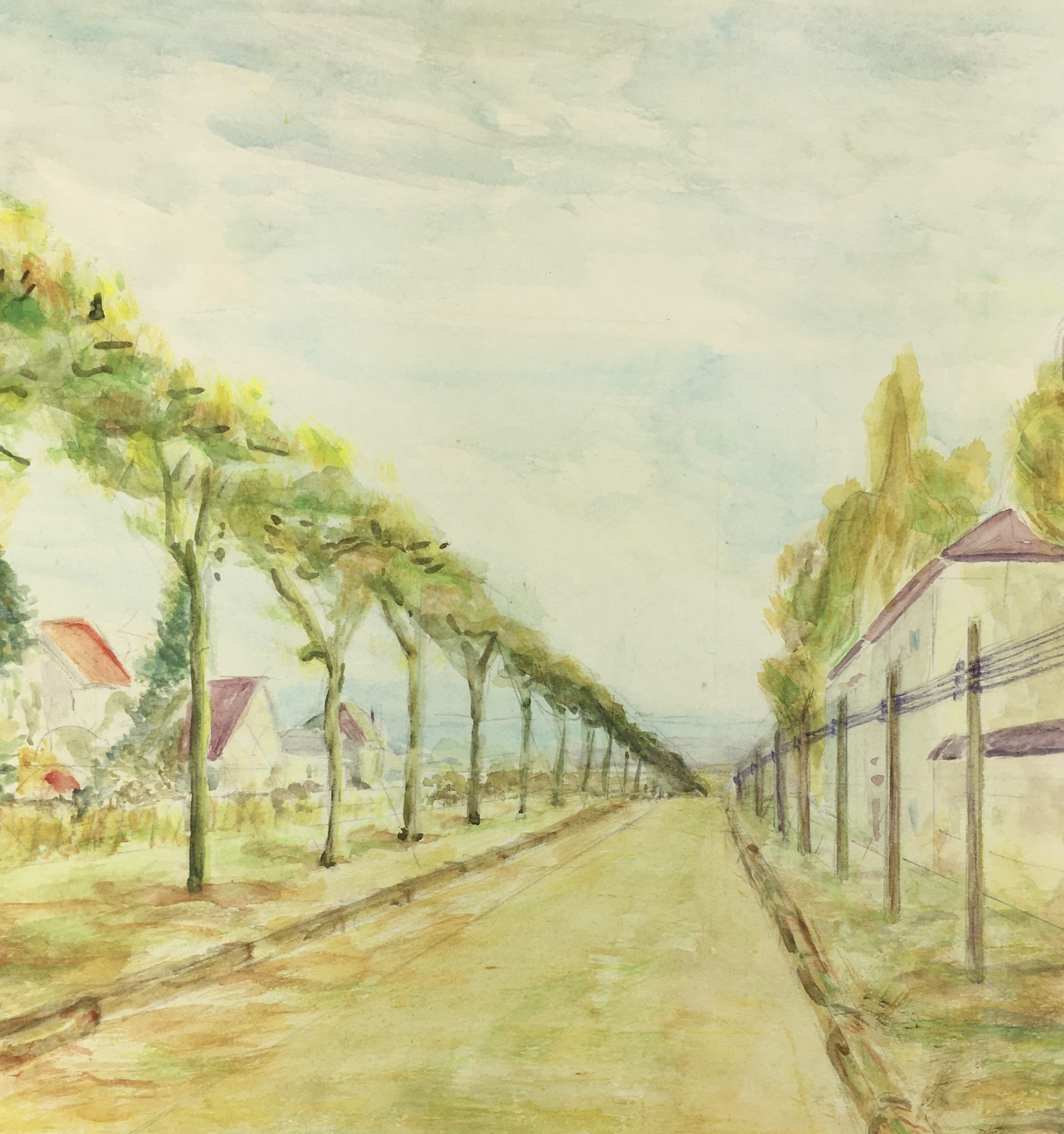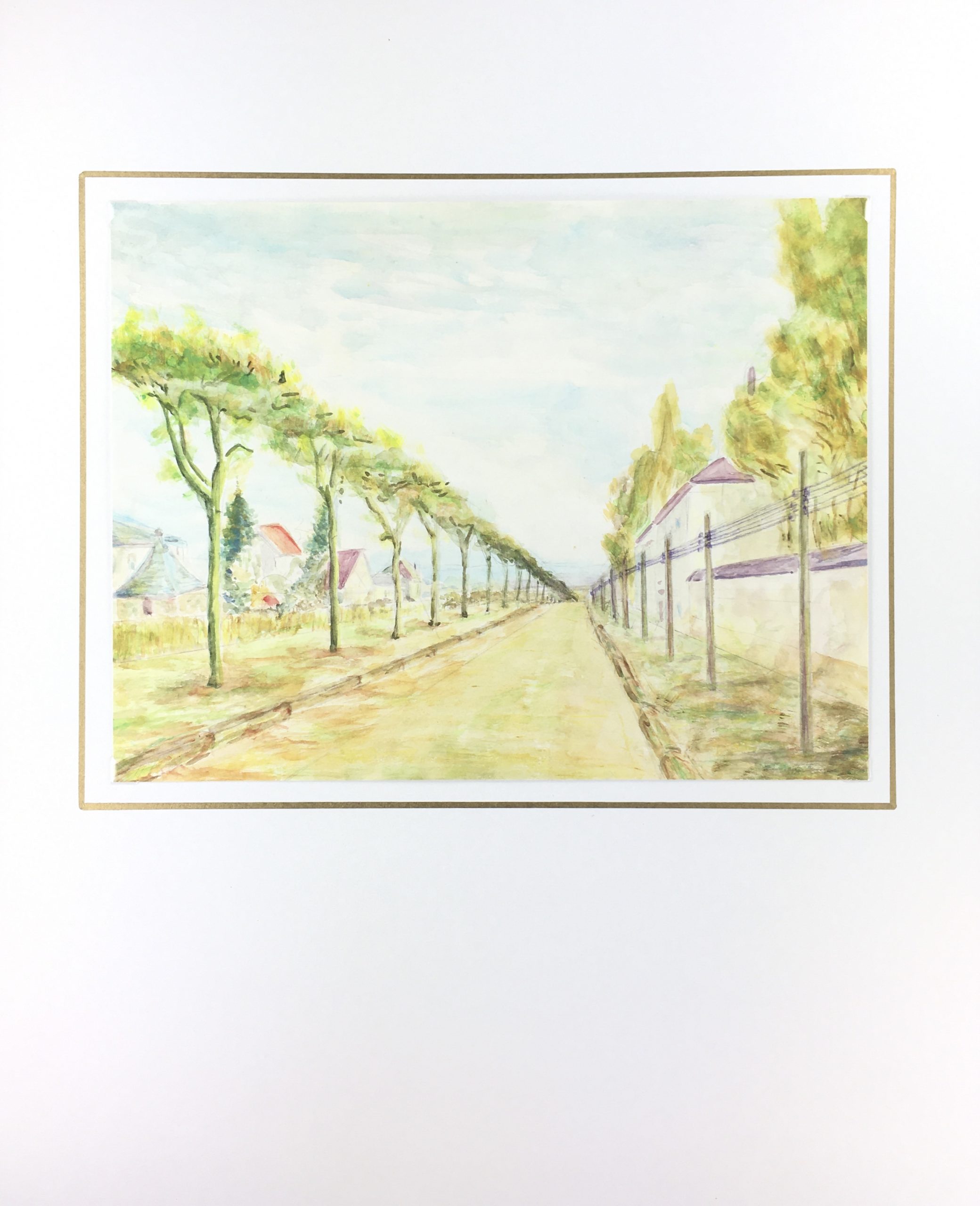 Original Art on paper displayed on a white mat with a gold border. Mat fits a standard-size frame. Archival plastic sleeve and Certificate of Authenticity included. Original Art, 12.25″W x 9.25″H; mat, 16″W x 20″H.