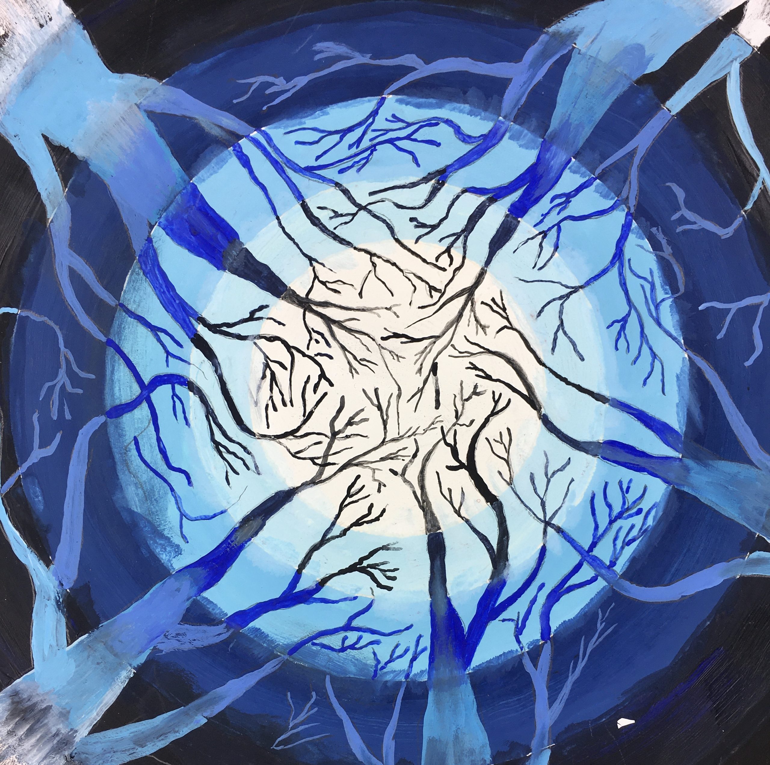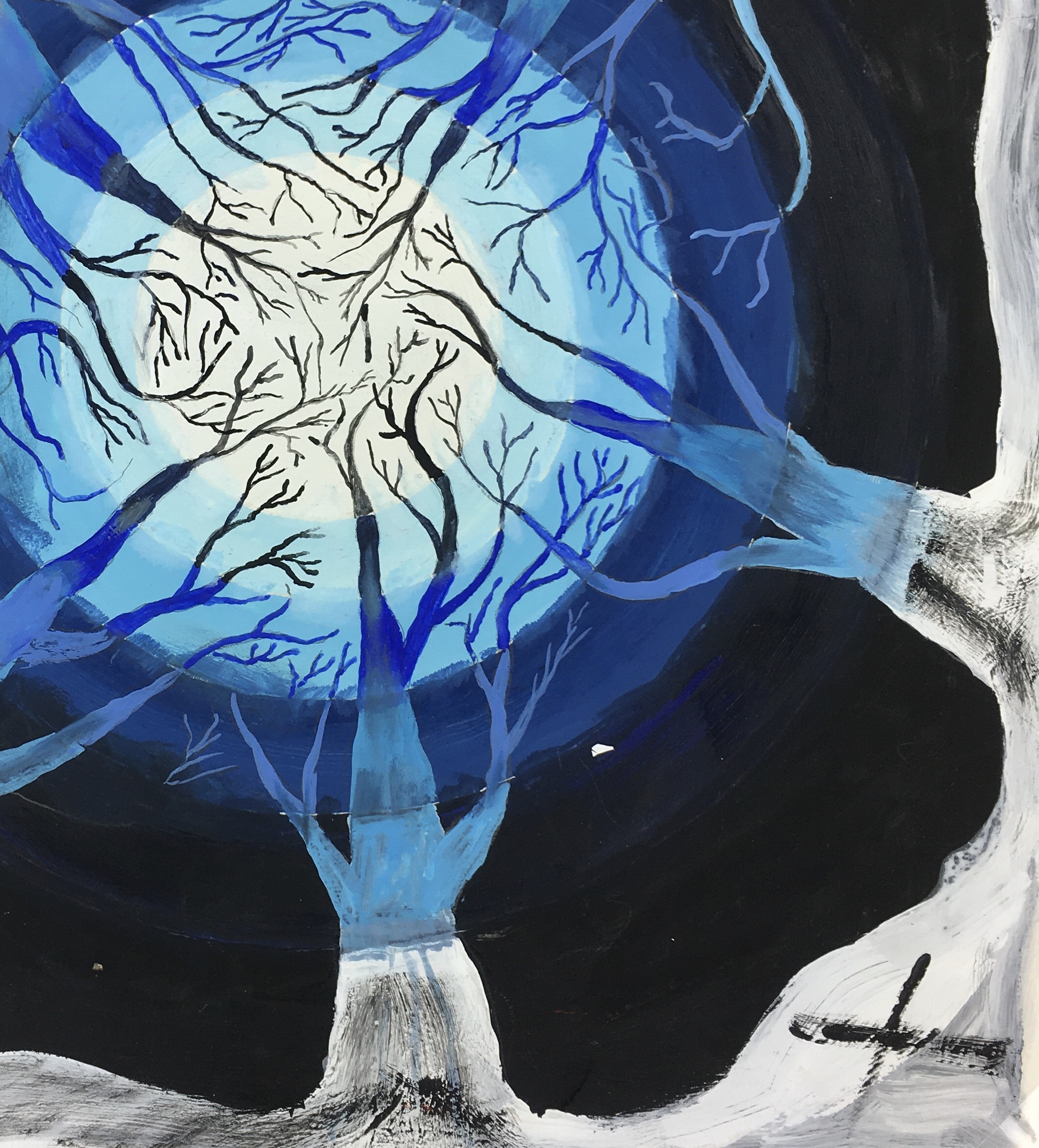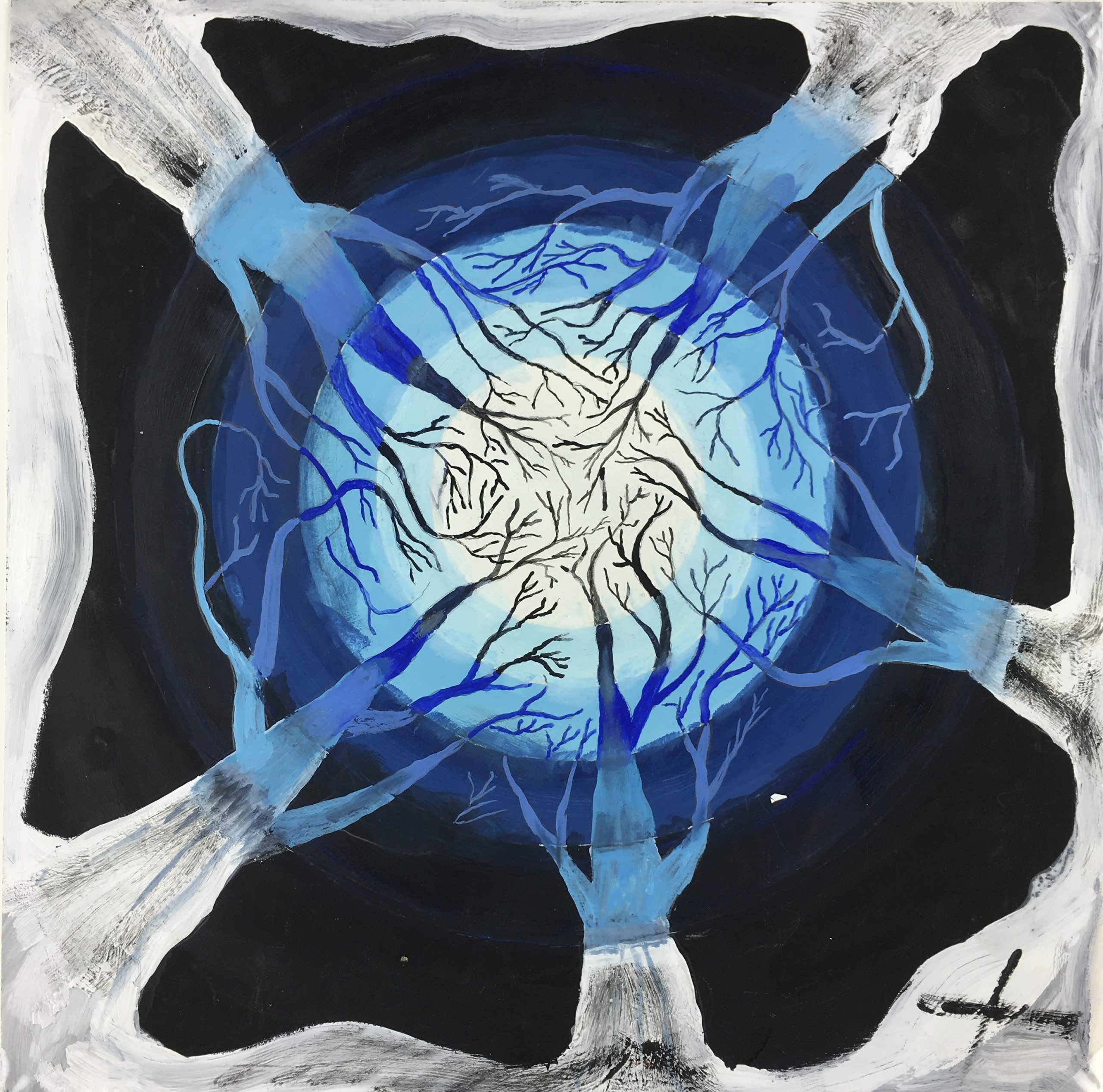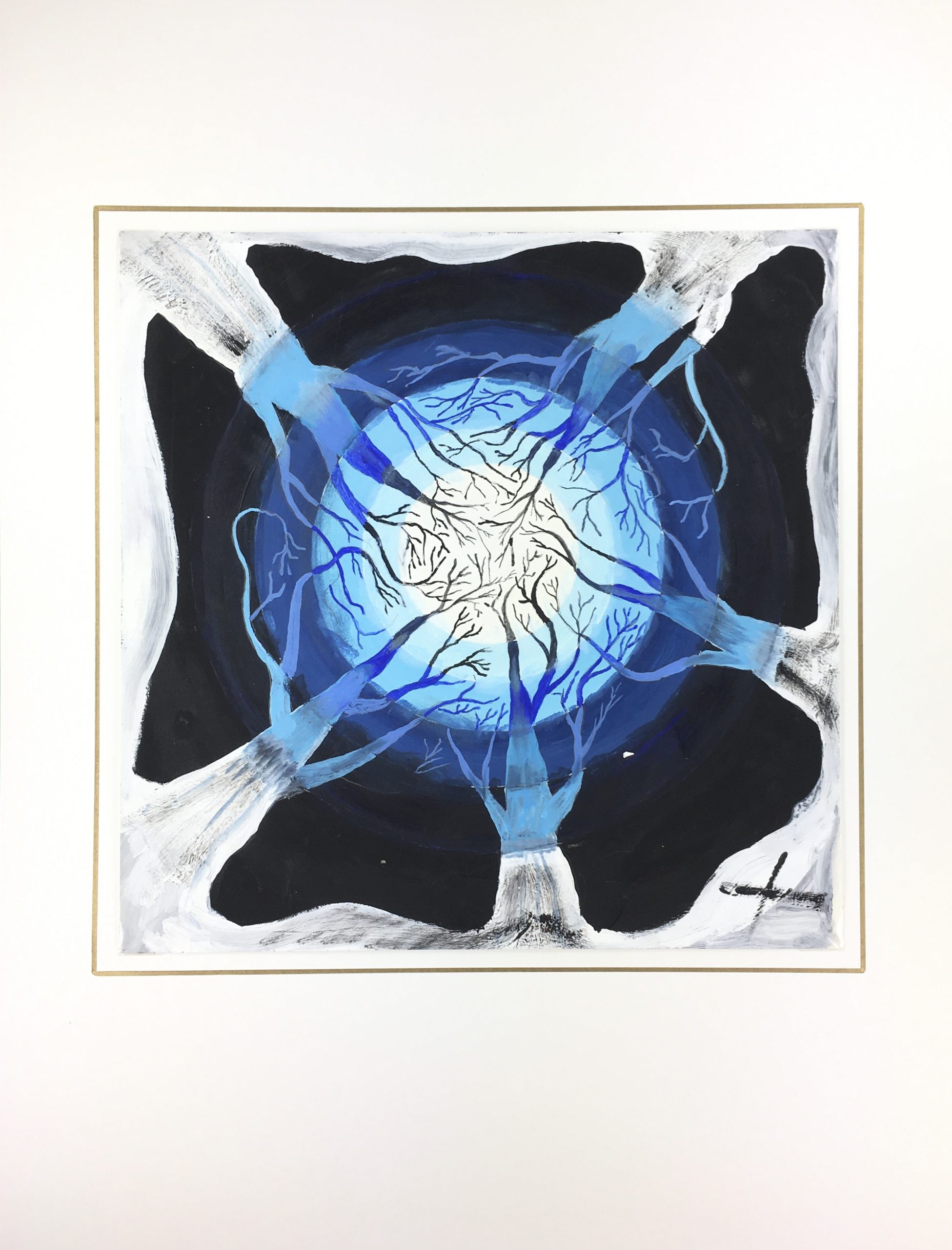 Original Art on paper displayed on a white mat with a gold border. Mat fits a standard-size frame. Archival plastic sleeve and Certificate of Authenticity included. Original Art, 13.5″W x 13.5″H; mat, 18″W x 24″H.