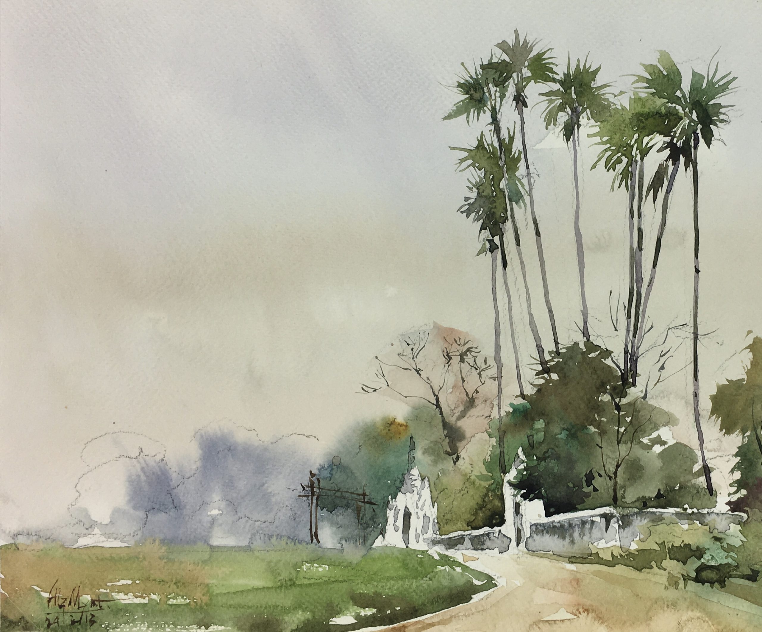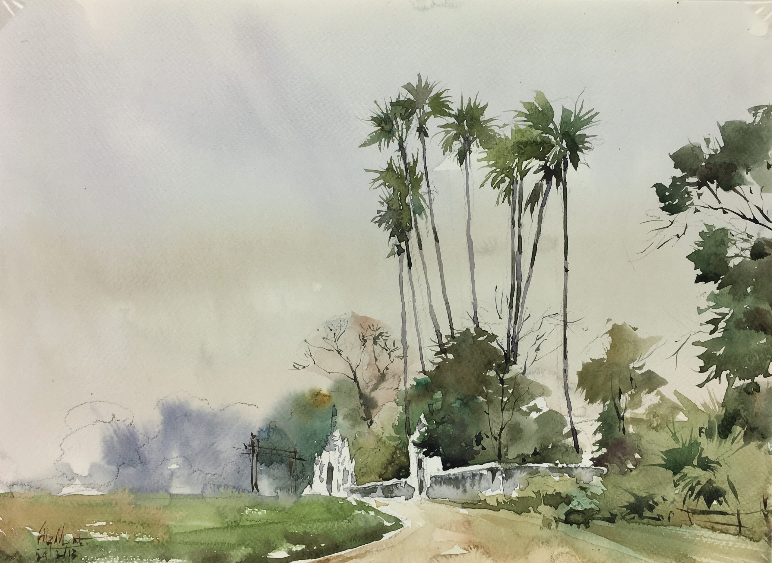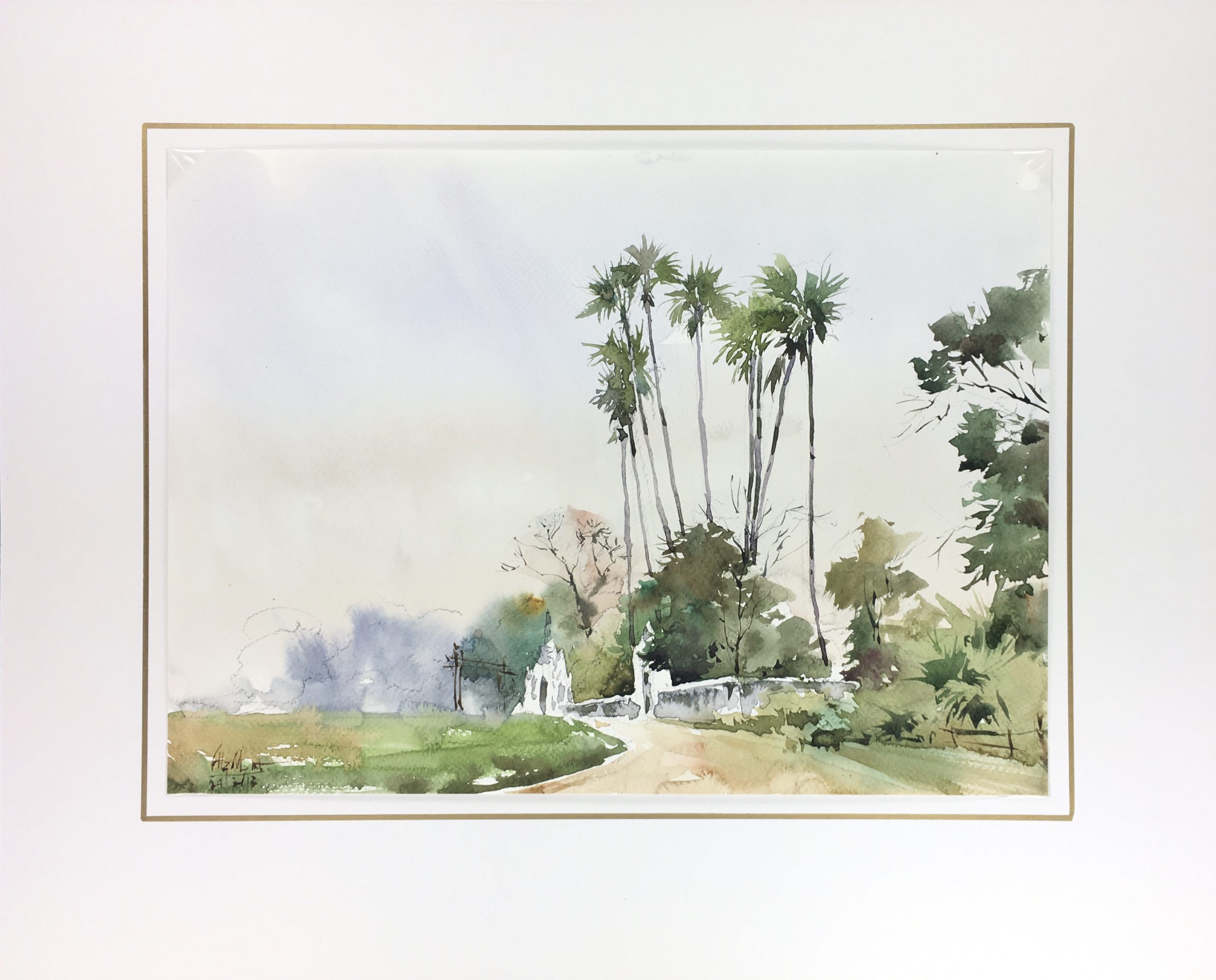 Original Art on paper displayed on a white mat with a gold border. Mat fits a standard-size frame. Archival plastic sleeve and Certificate of Authenticity included. Original Art, 14.25″W x 10.5″H; mat, 20″W x 16″H.
