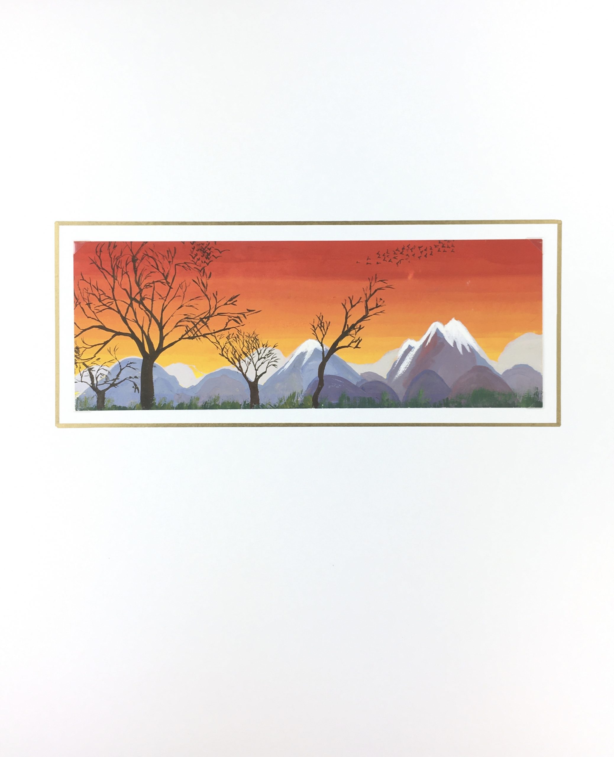 Original Art on paper displayed on a white mat with a gold border. Mat fits a standard-size frame. Archival plastic sleeve and Certificate of Authenticity included. Original Art, 12″W x 4.25″H; mat, 16″W x 20″H.
