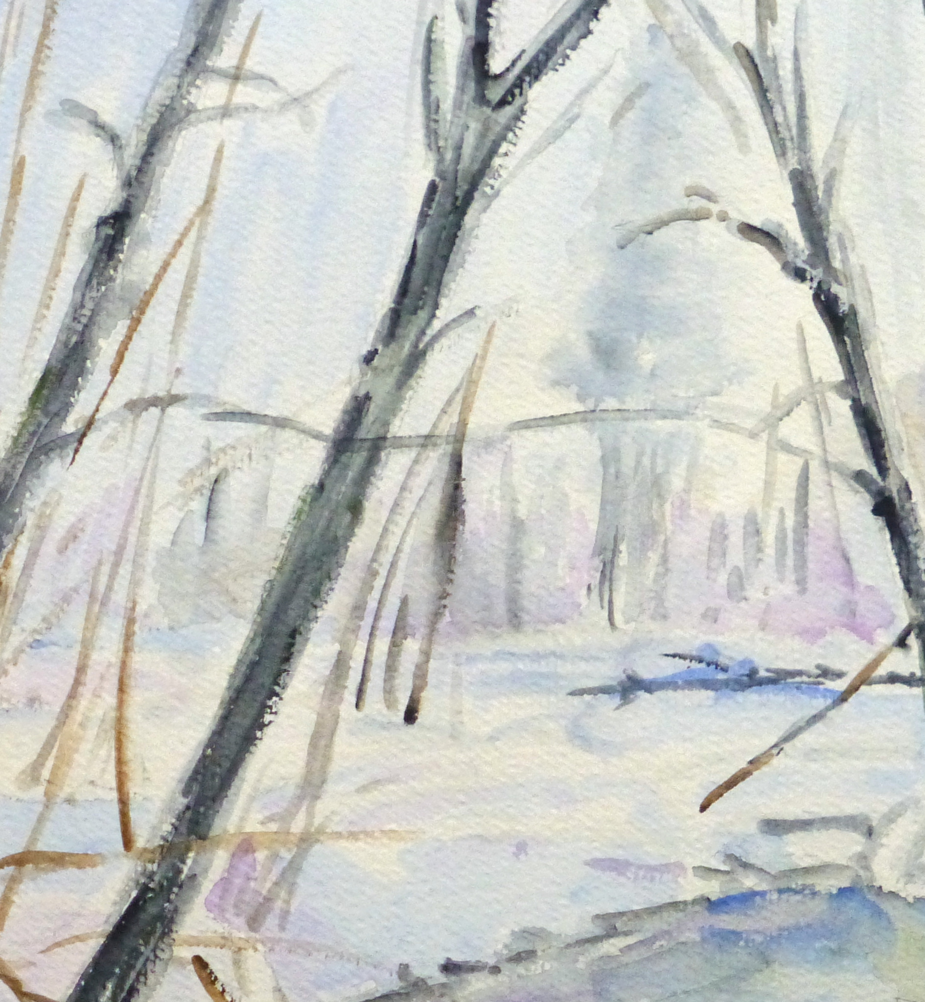 Watercolor Landscape- Winter Pond, 1990s