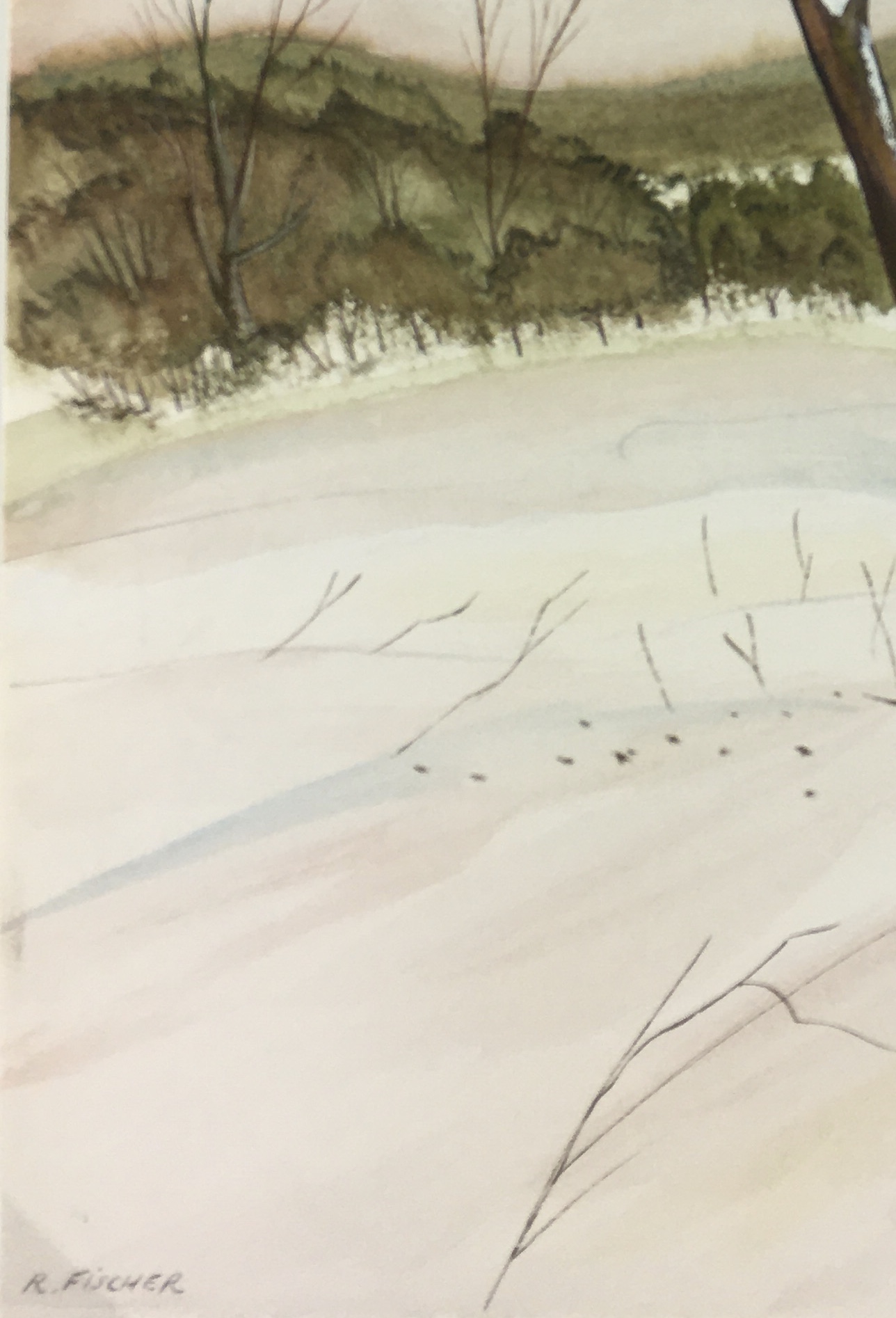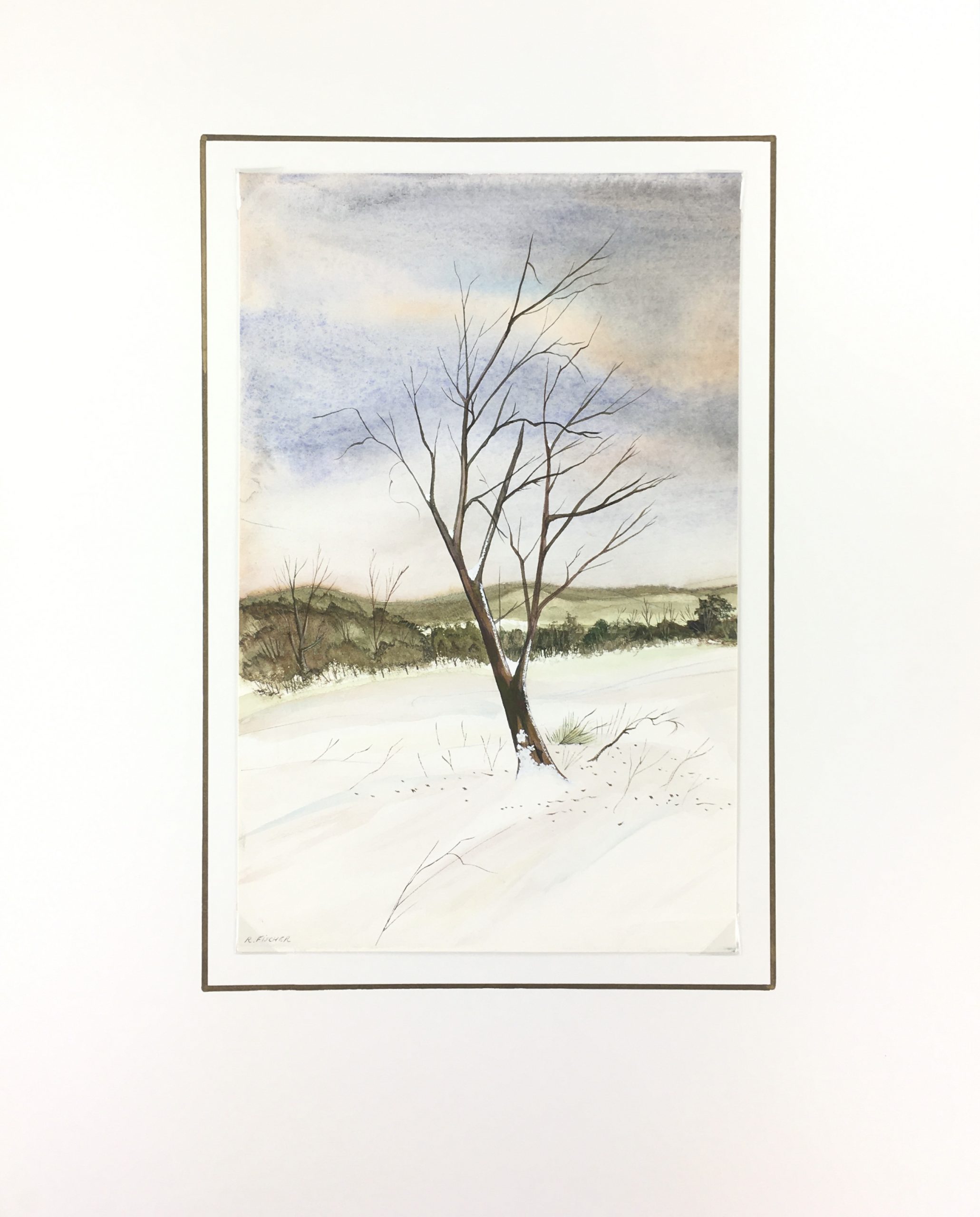 Original Art on paper displayed on a white mat with a gold border. Mat fits a standard-size frame. Archival plastic sleeve and Certificate of Authenticity included. Original Art, 8″W x 12.5″H; mat, 16″W x 20″H.