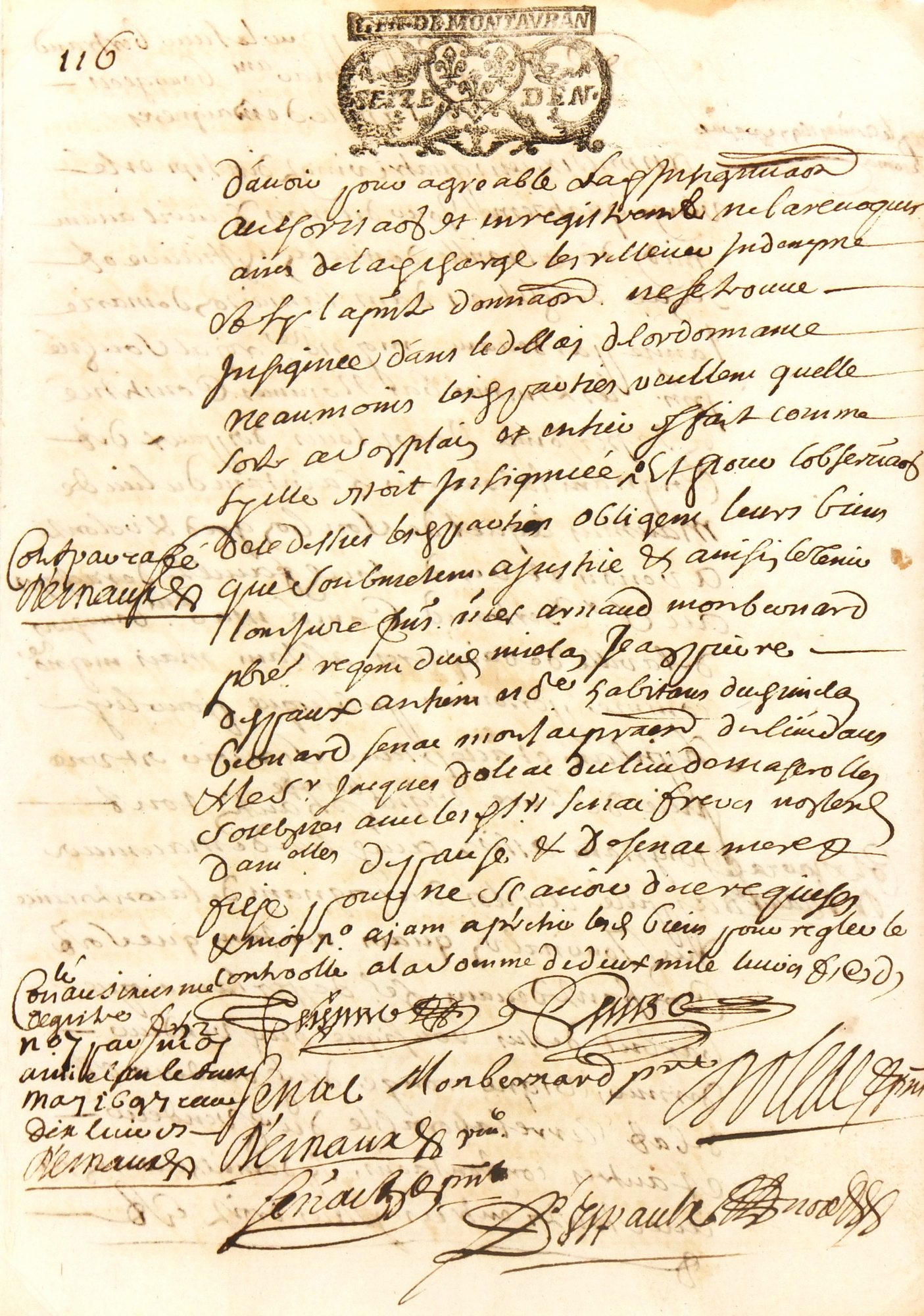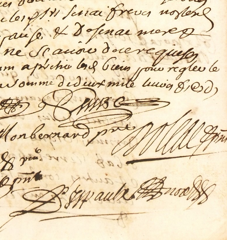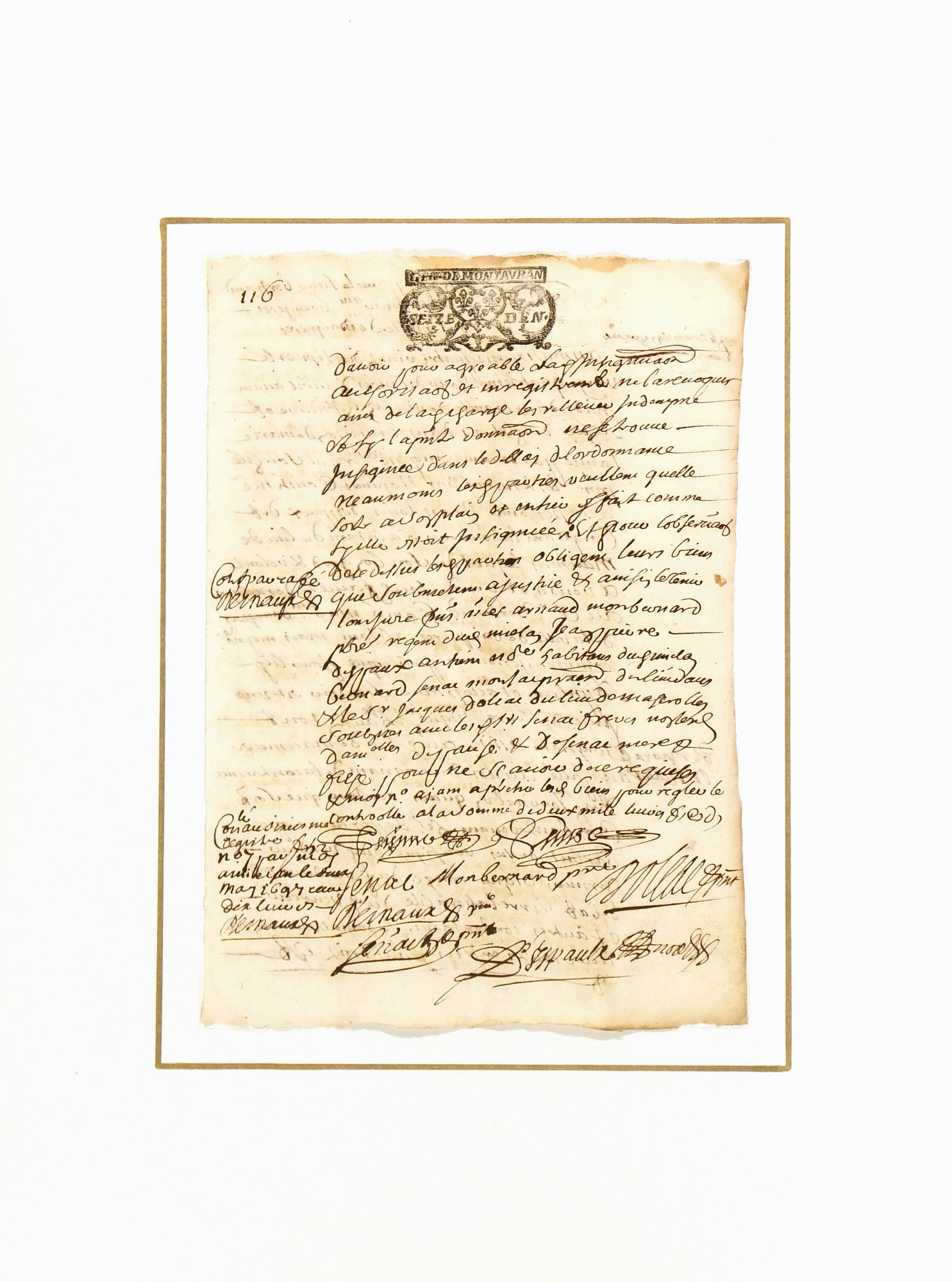 Late 17th century French manuscript of transactions among winemakers in southwestern France, 1697. Note the flourished signatures and intricate stamped seal.