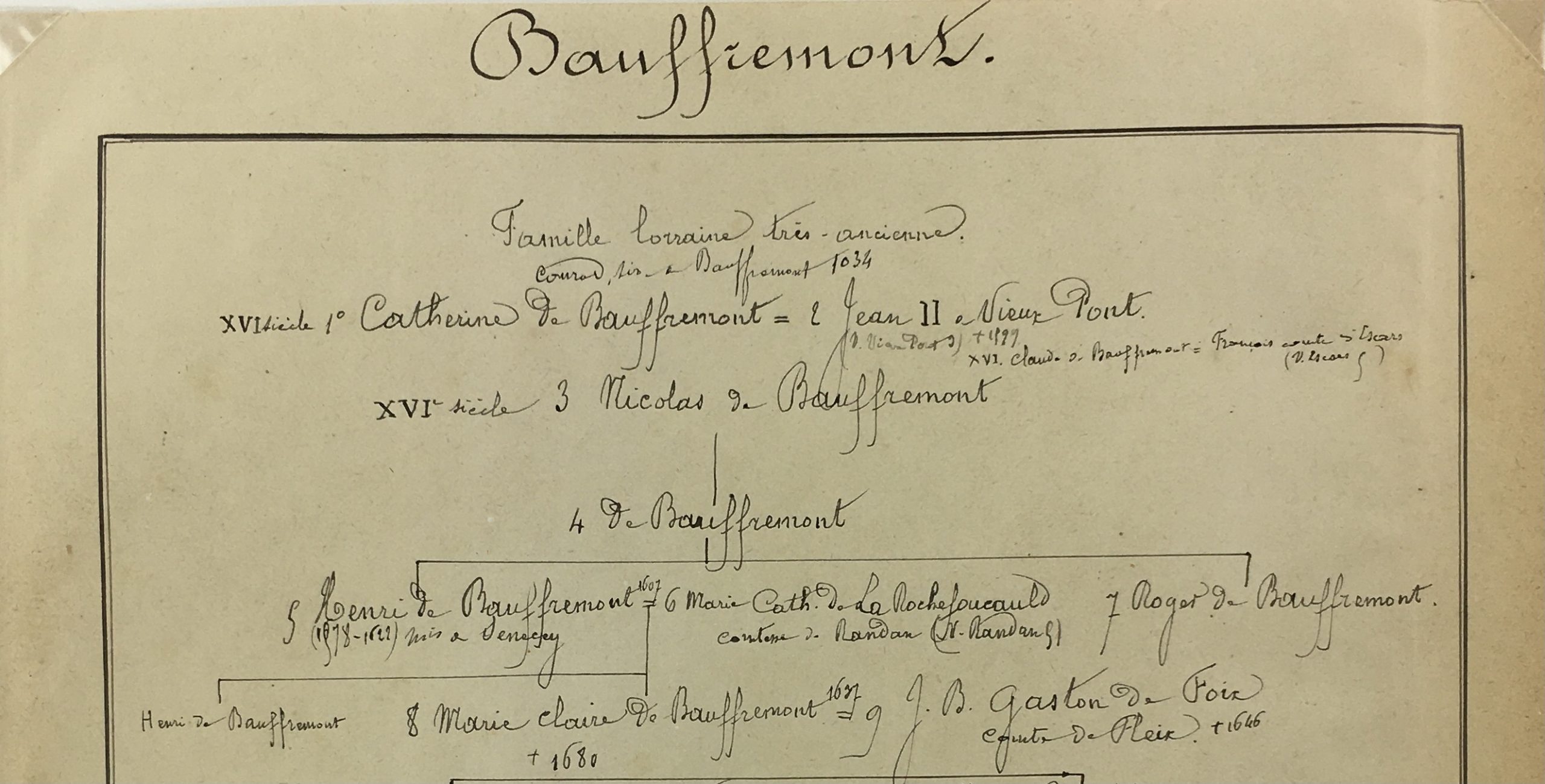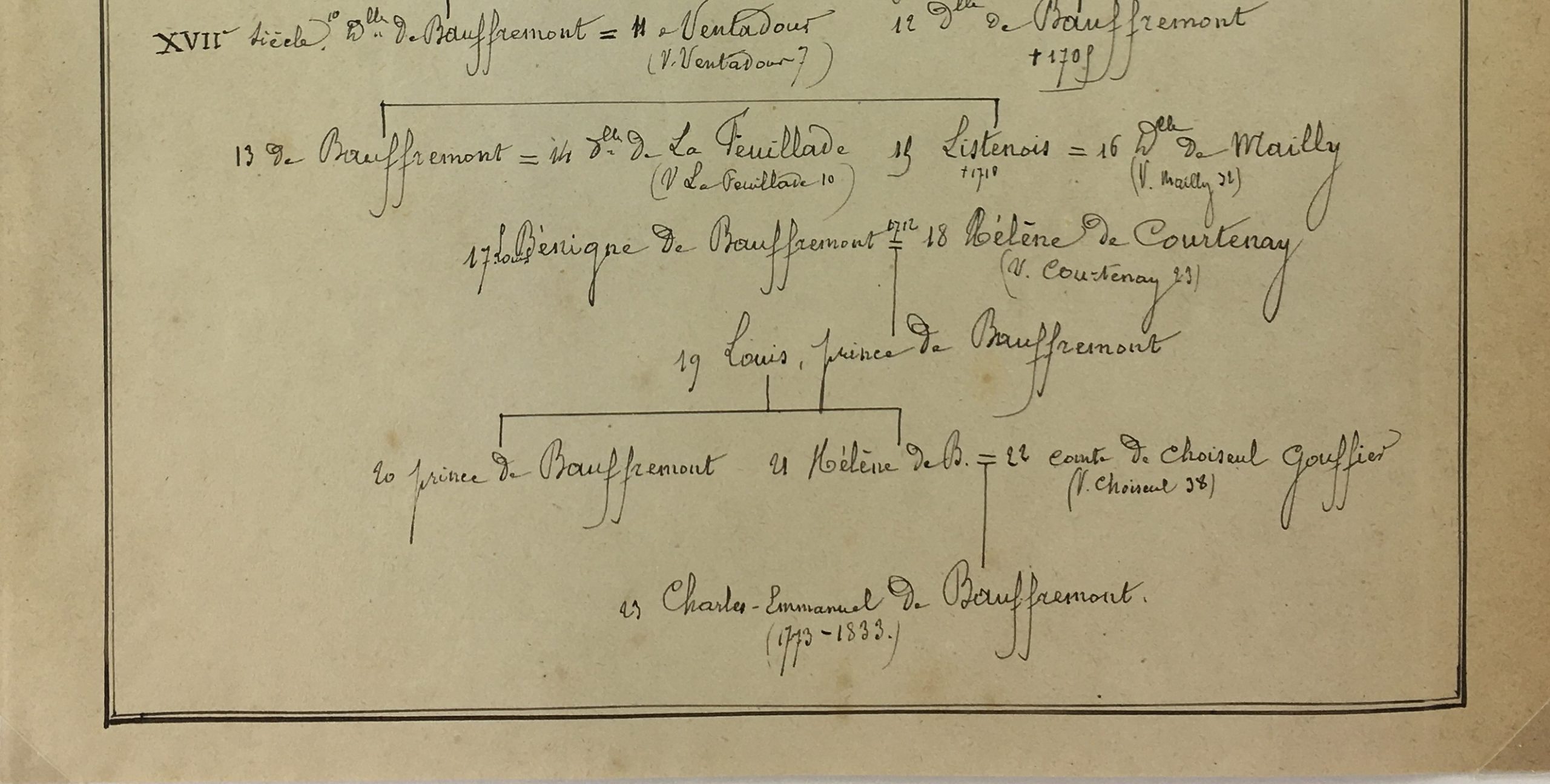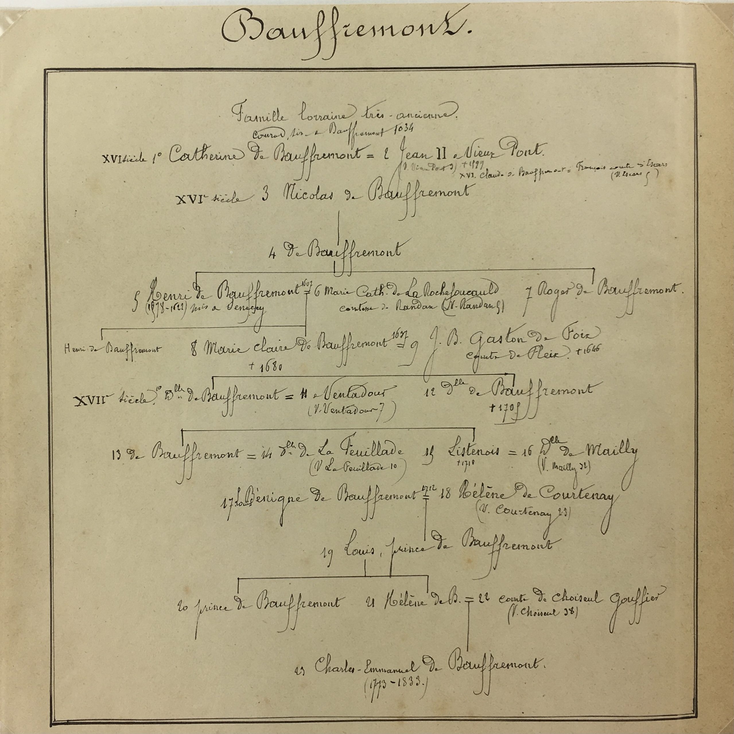 Manuscripts Original Art – Bouffremont, Paris Genealogy, C.1865