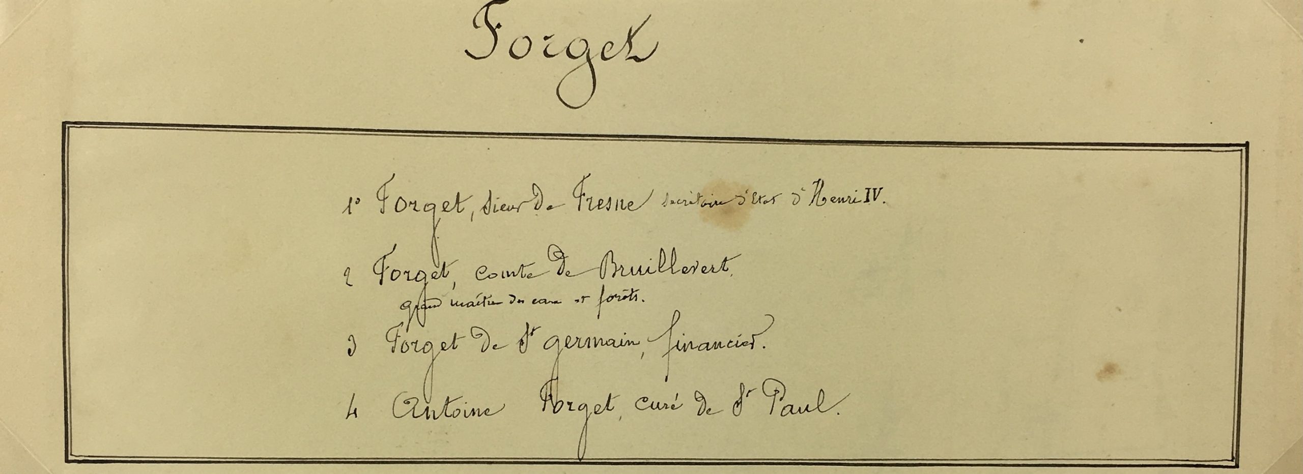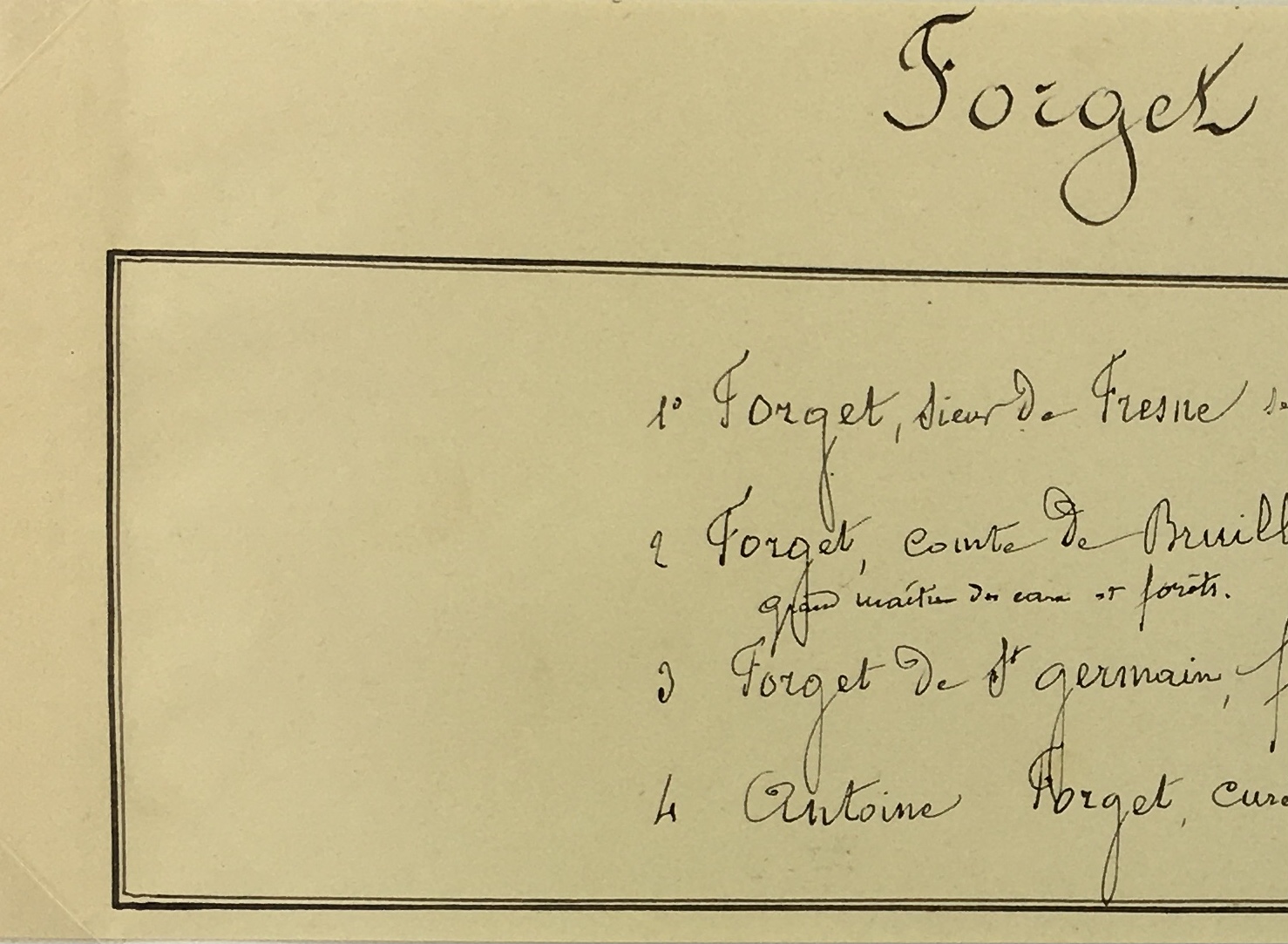 Manuscripts Original Art – Forget, Paris Genealogy, C.1865