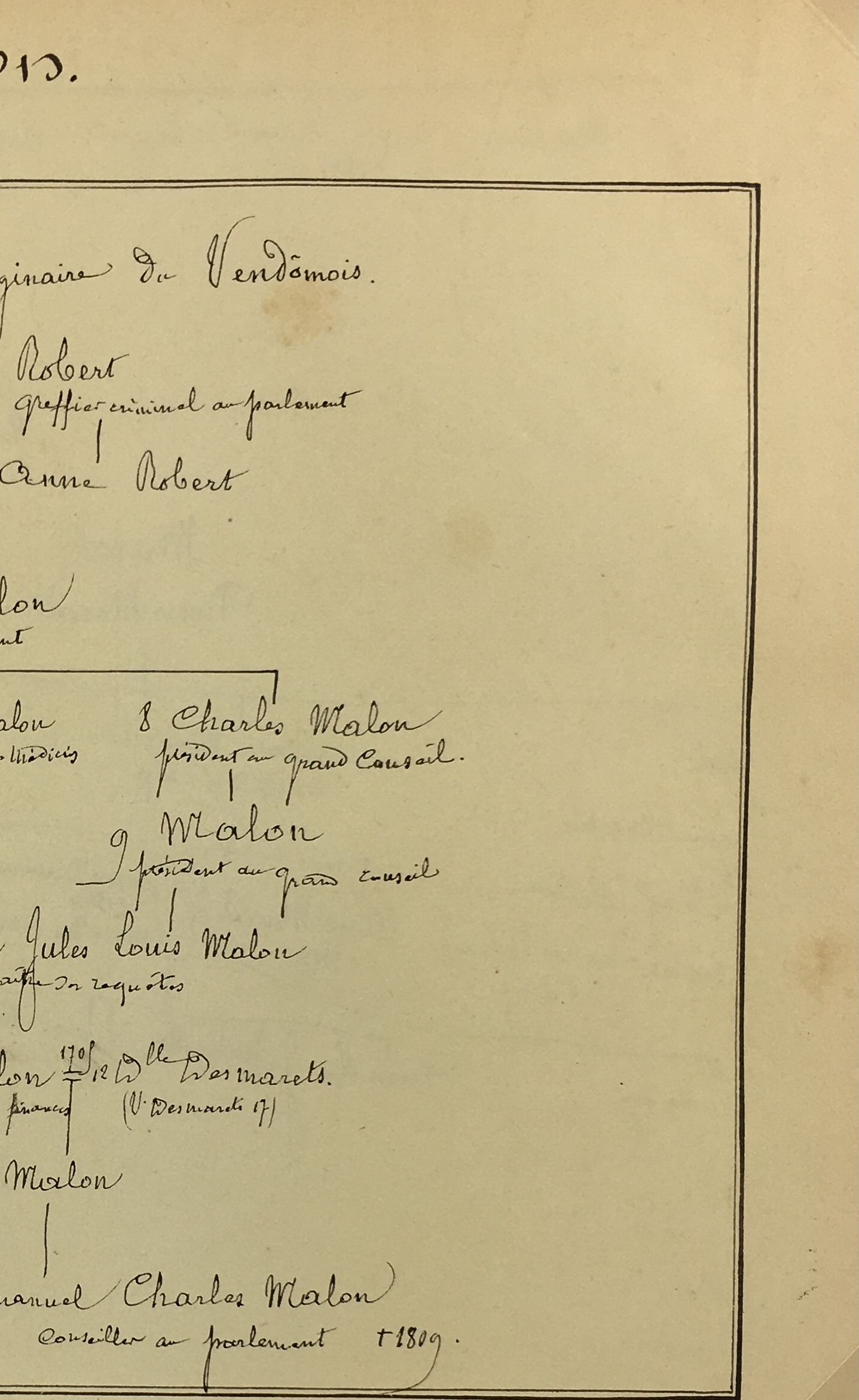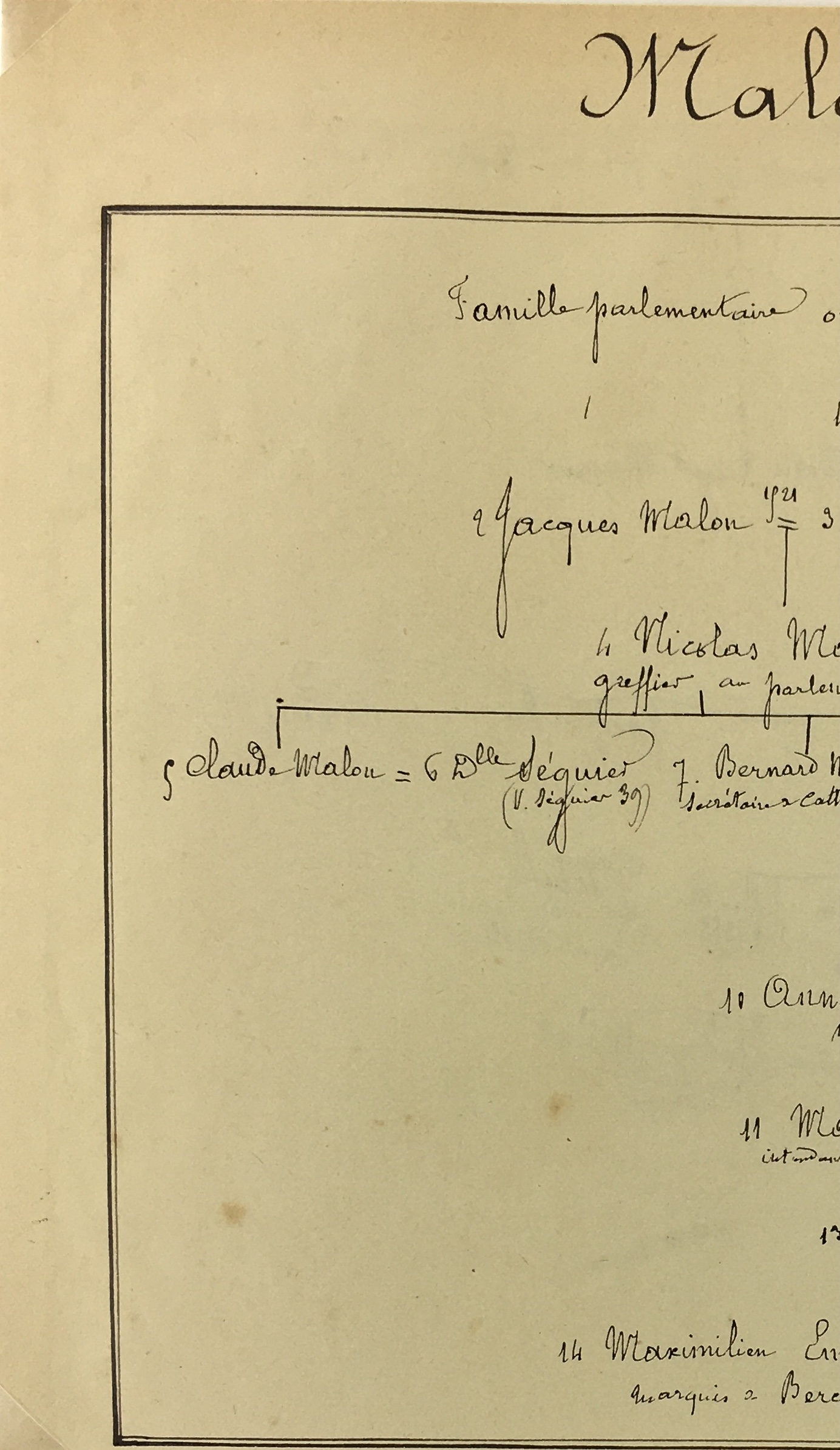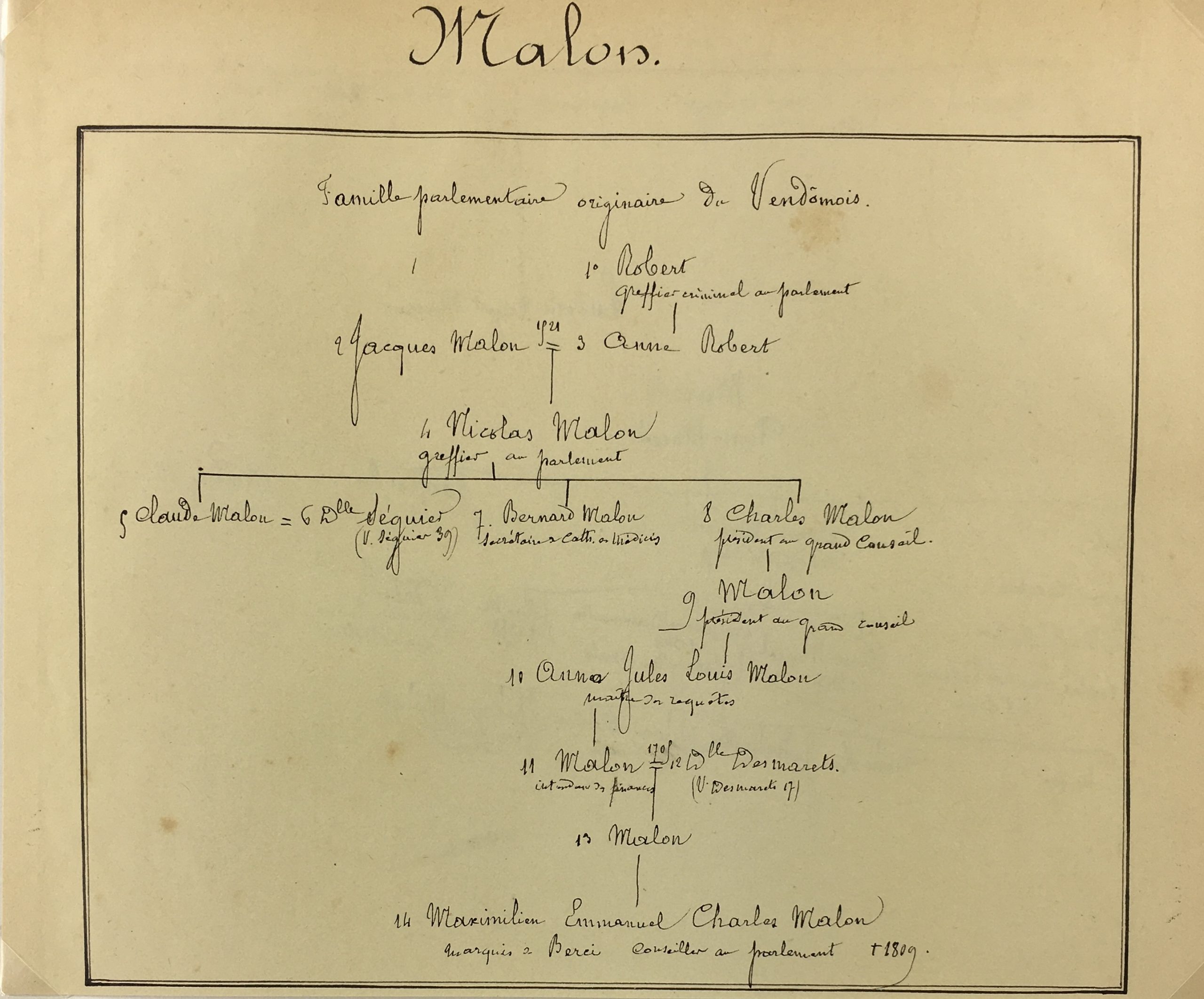 Manuscripts Original Art – Malon, Paris Genealogy, C.1865