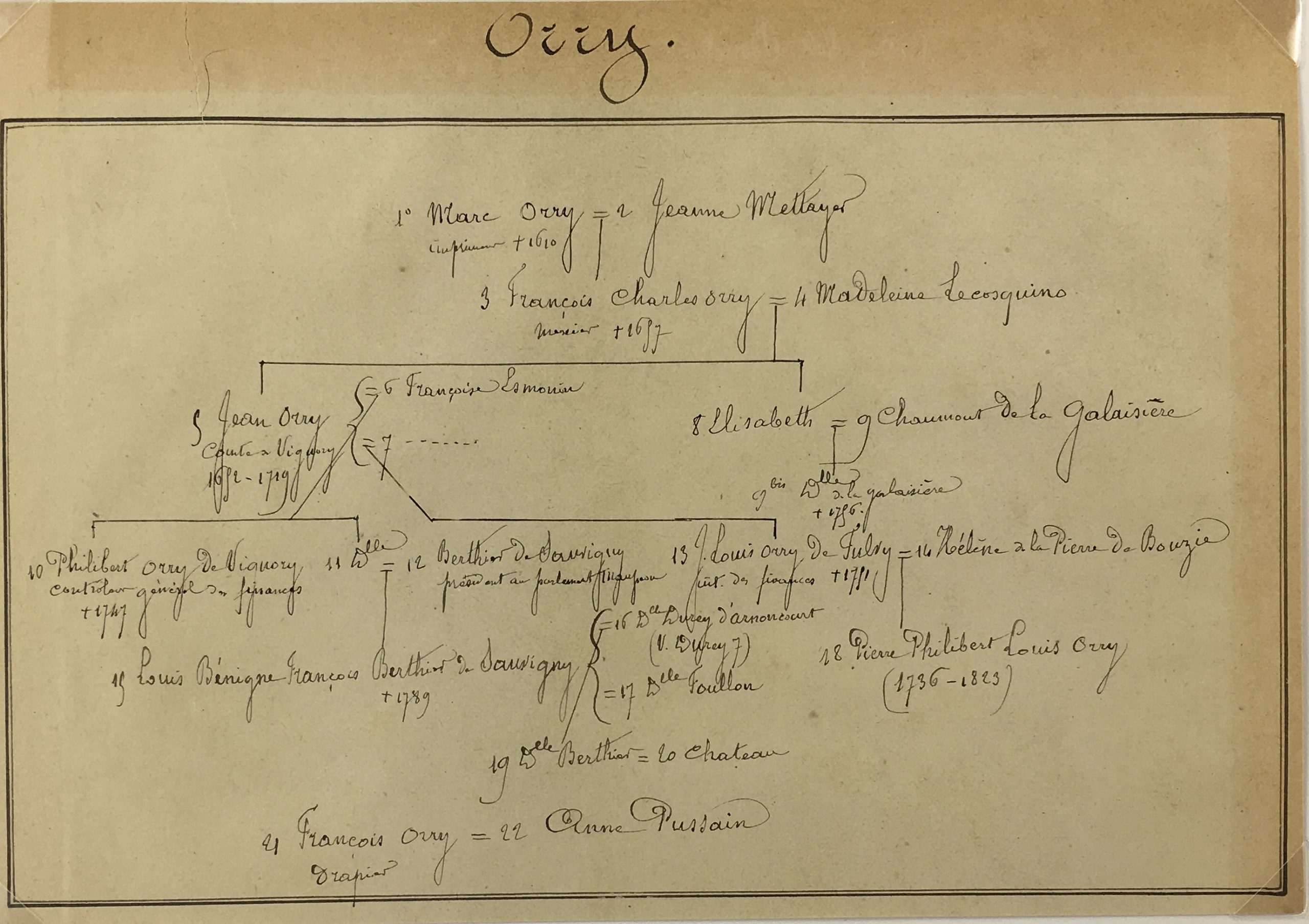 Manuscripts Original Art – Orry , Paris Genealogy, C.1865