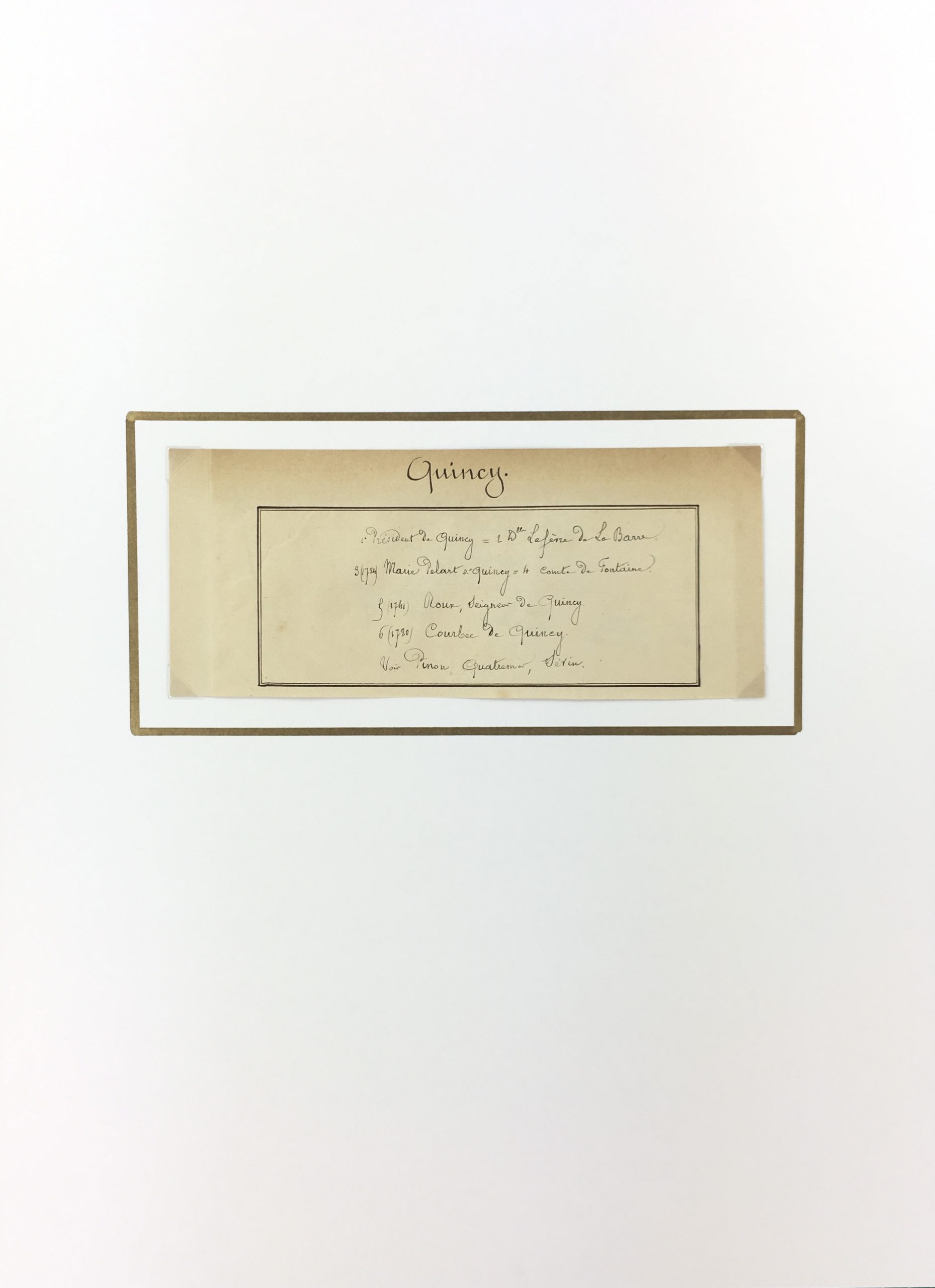 Manuscripts Original Art – Quincy, Paris Genealogy, C.1865