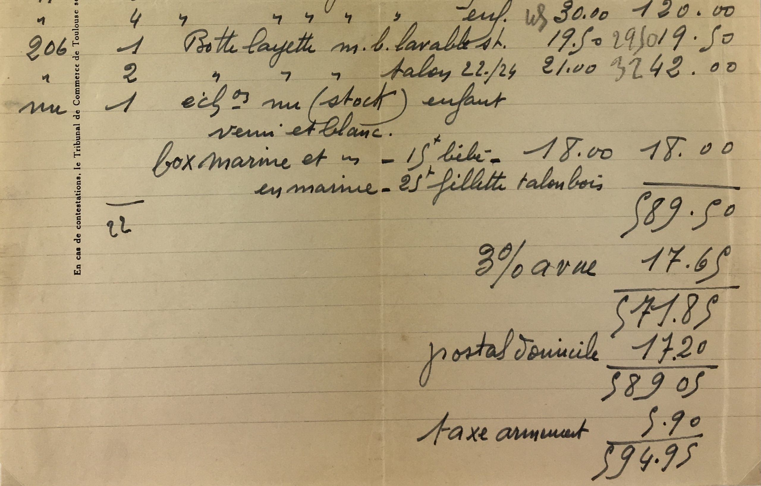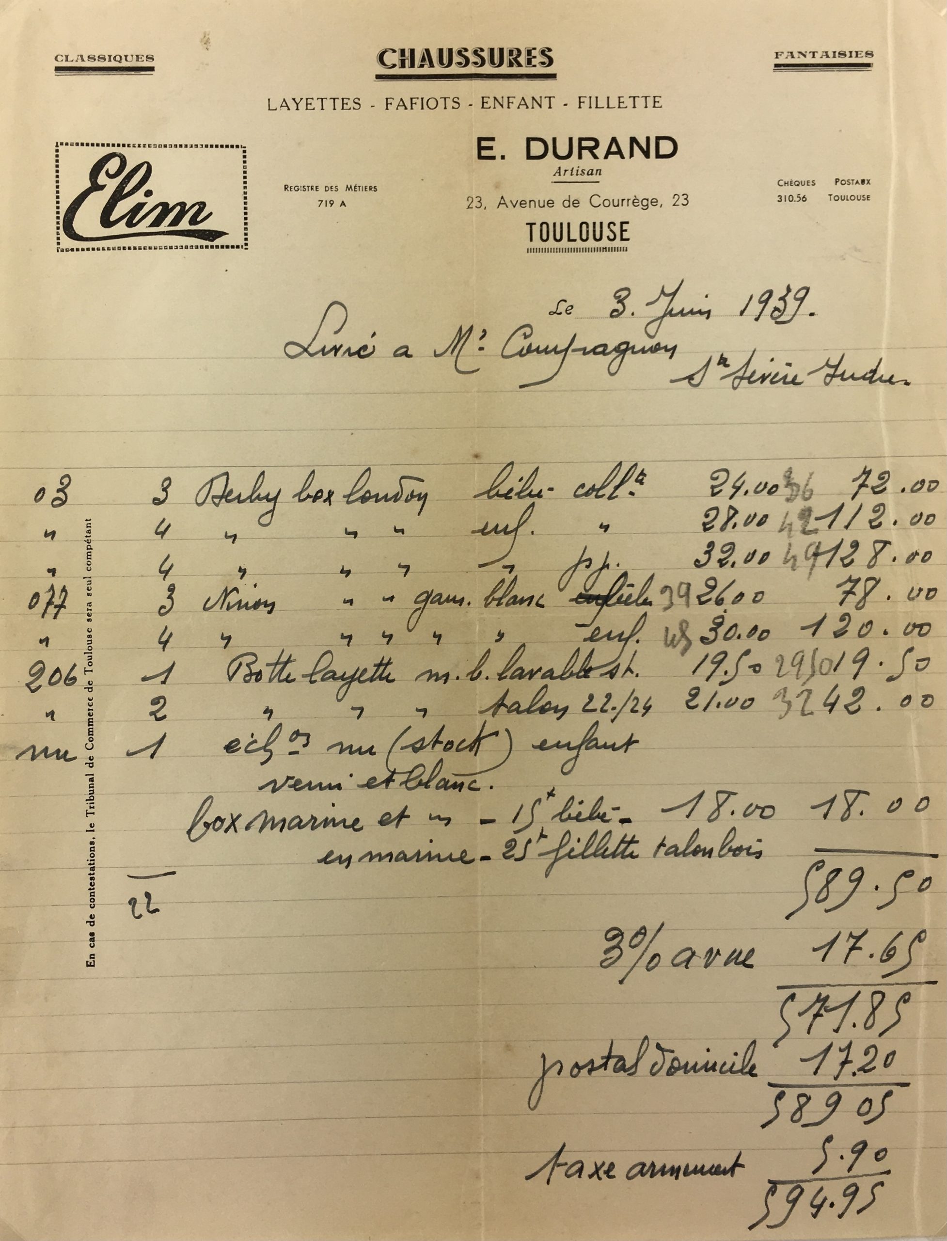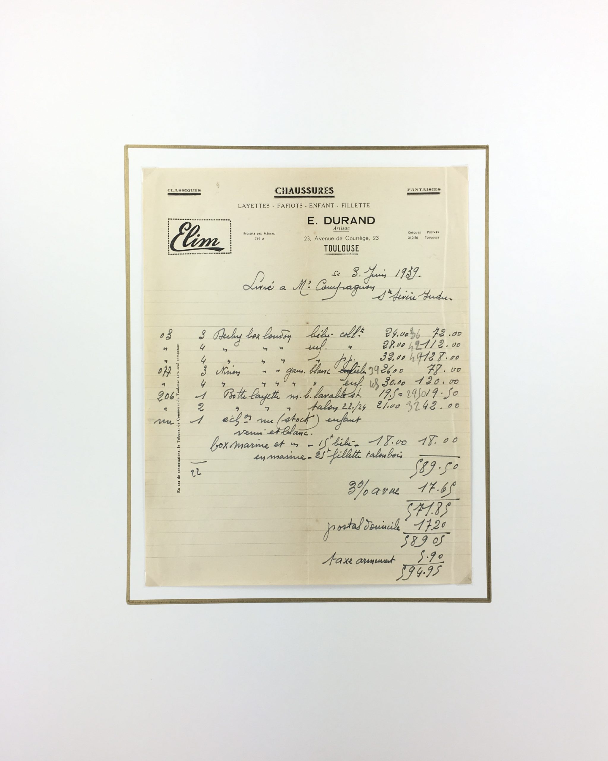 Manuscripts Original Art – Shoe Buying Receipt, M.F. Compagnon, 1939