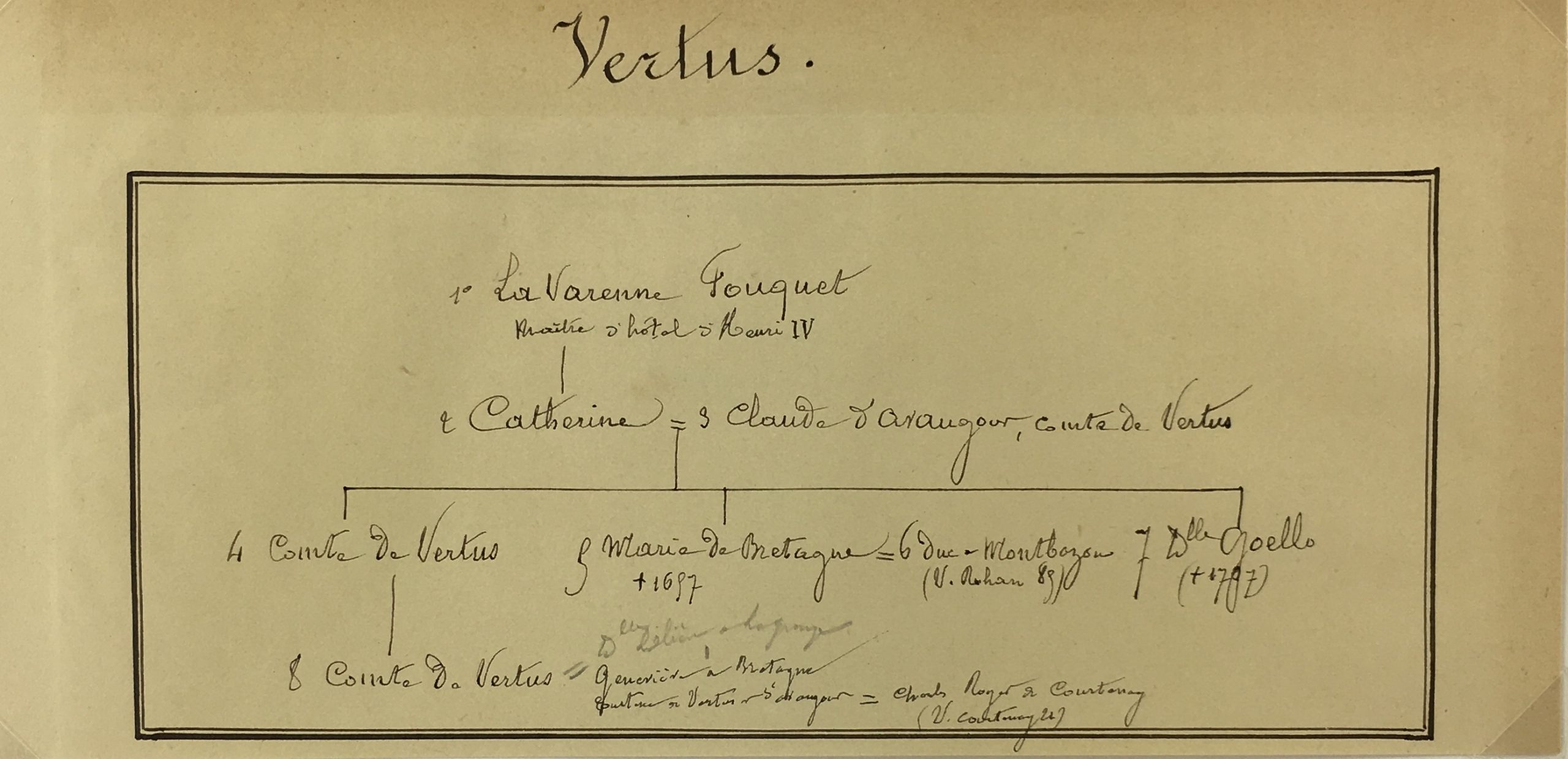 Manuscripts Original Art – Vertus , Paris Genealogy, C.1865